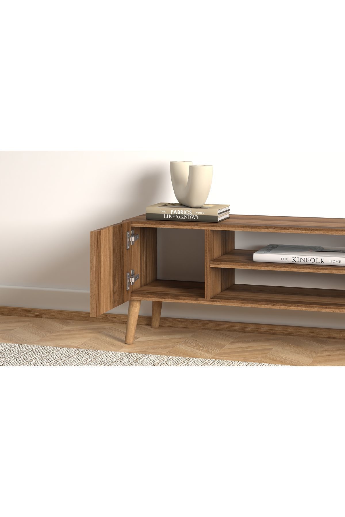 ابعاد مناسب و طراحی کارآمد این میز باعث میشود که به راحتی بتوانید تلویزیون و دستگاههای جانبی خود را بر روی آن قرار دهید. همچنین فضای کافی برای قرار دادن وسایلی چون دیویدی پلیر، کنسولهای بازی و دیگر تجهیزات صوتی و تصویری در نظر گرفته شده است. این ویژگیها، به شما این امکان را میدهد که فضای نشیمن خود را مرتب و منظم نگهدارید.