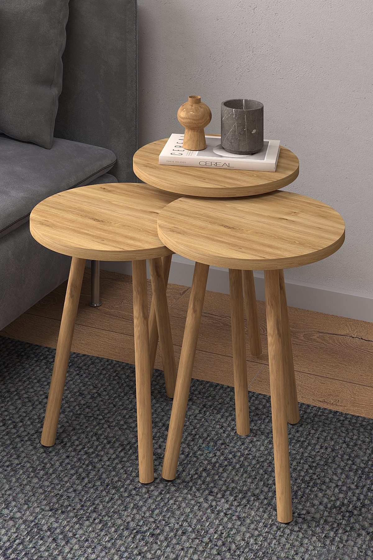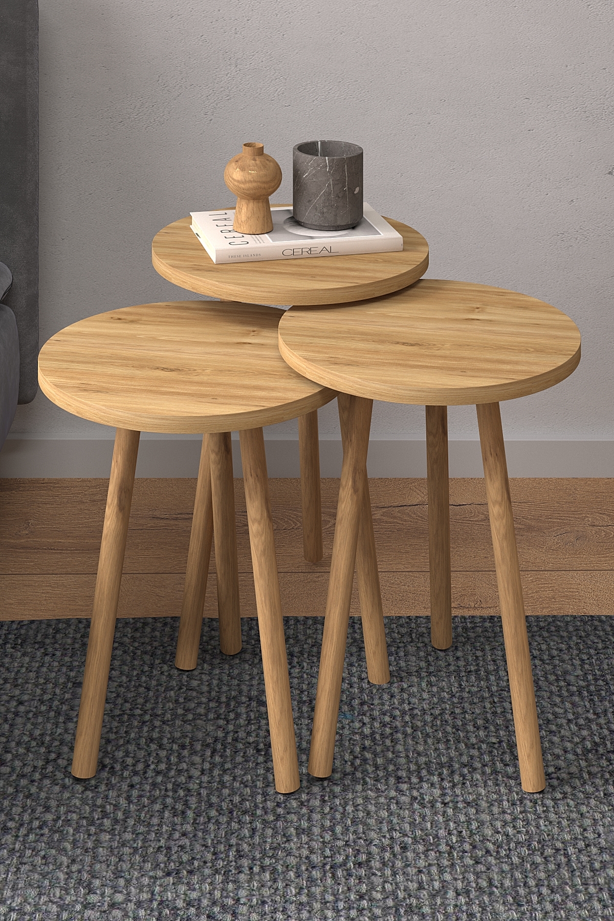 این مجموعه شامل سه میز با اندازههای مختلف است که میتوانند به صورت تکی یا به صورت گروهی در کنار یکدیگر قرار بگیرند. این ویژگی امکان انعطافپذیری در استفاده را فراهم میکند و به شما اجازه میدهد تا به سادگی با تغییر چینش، نمای جدیدی به محیط خود ببخشید. از این میزها میتوانید به عنوان میز قهوه، میز کنار مبل و حتی میز دکوری استفاده کنید.
