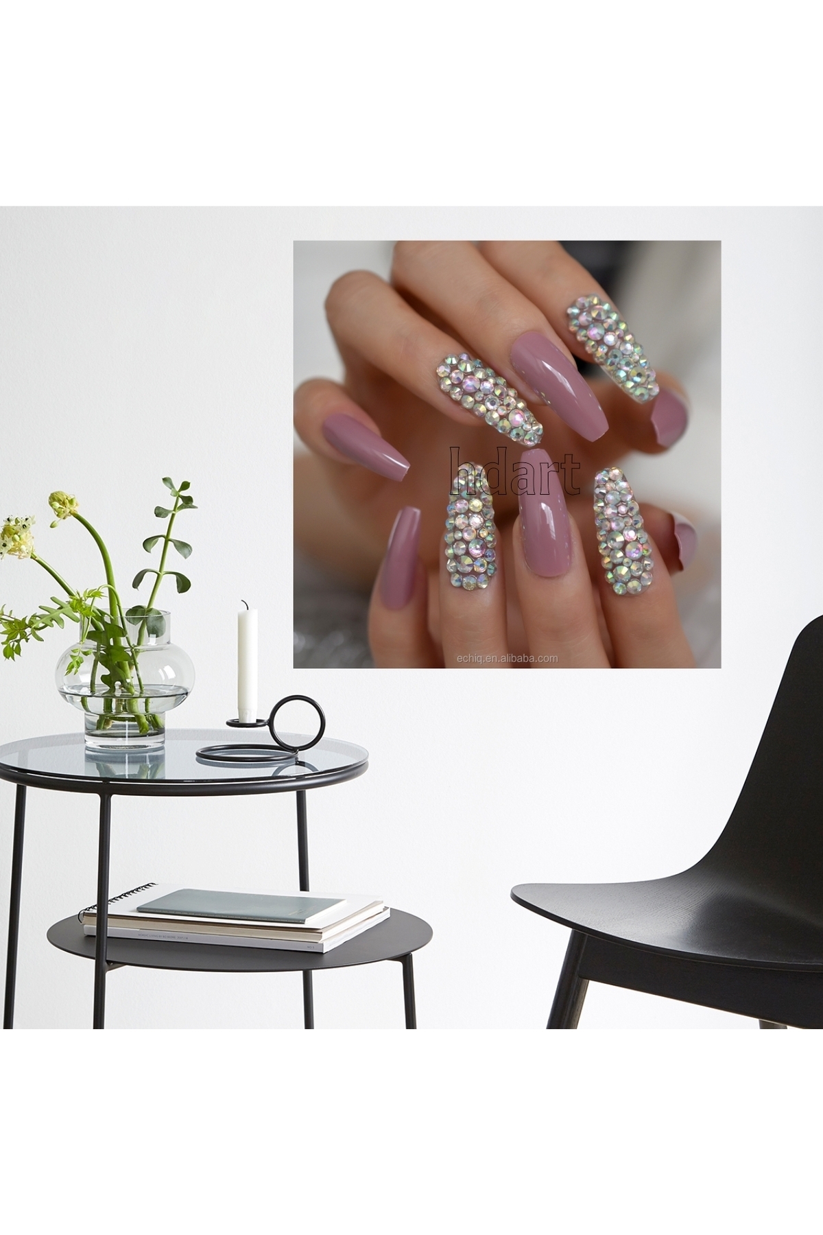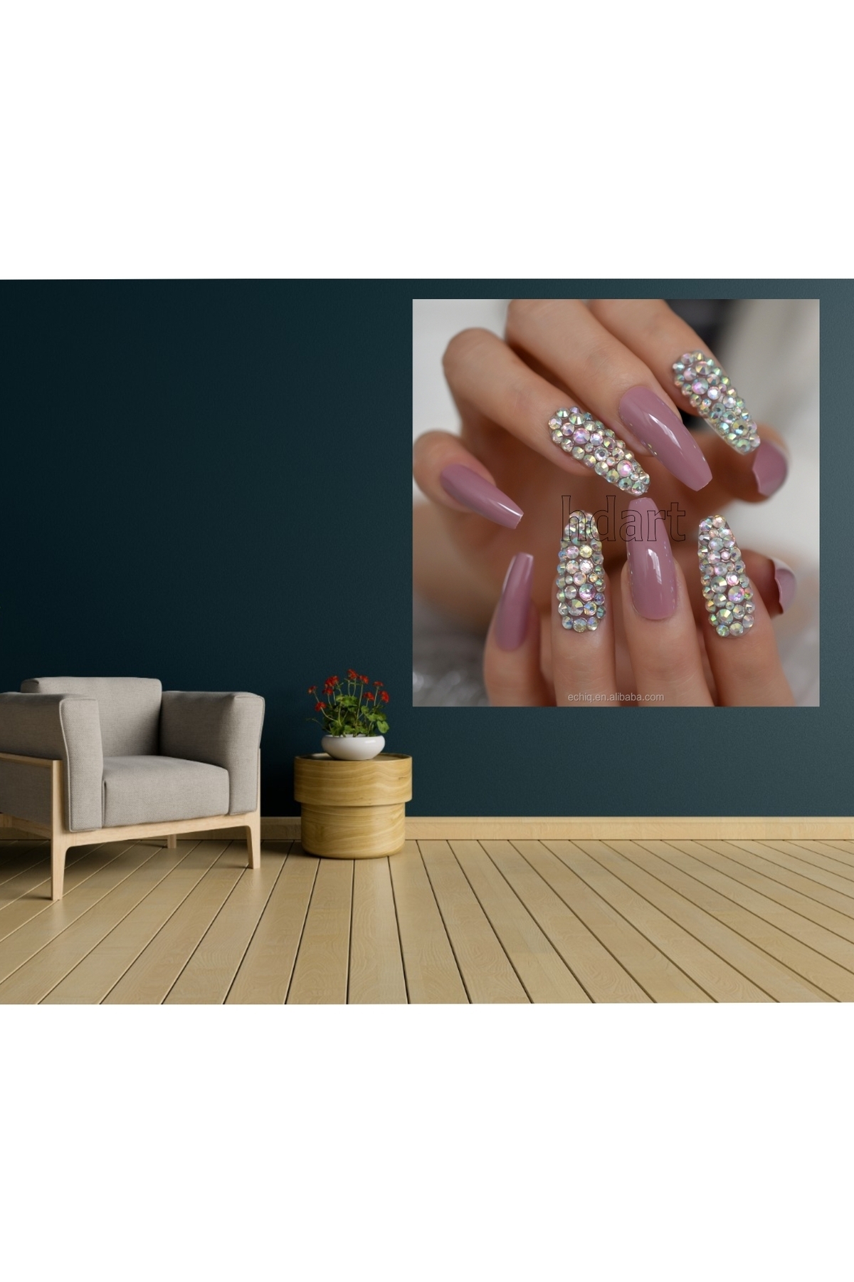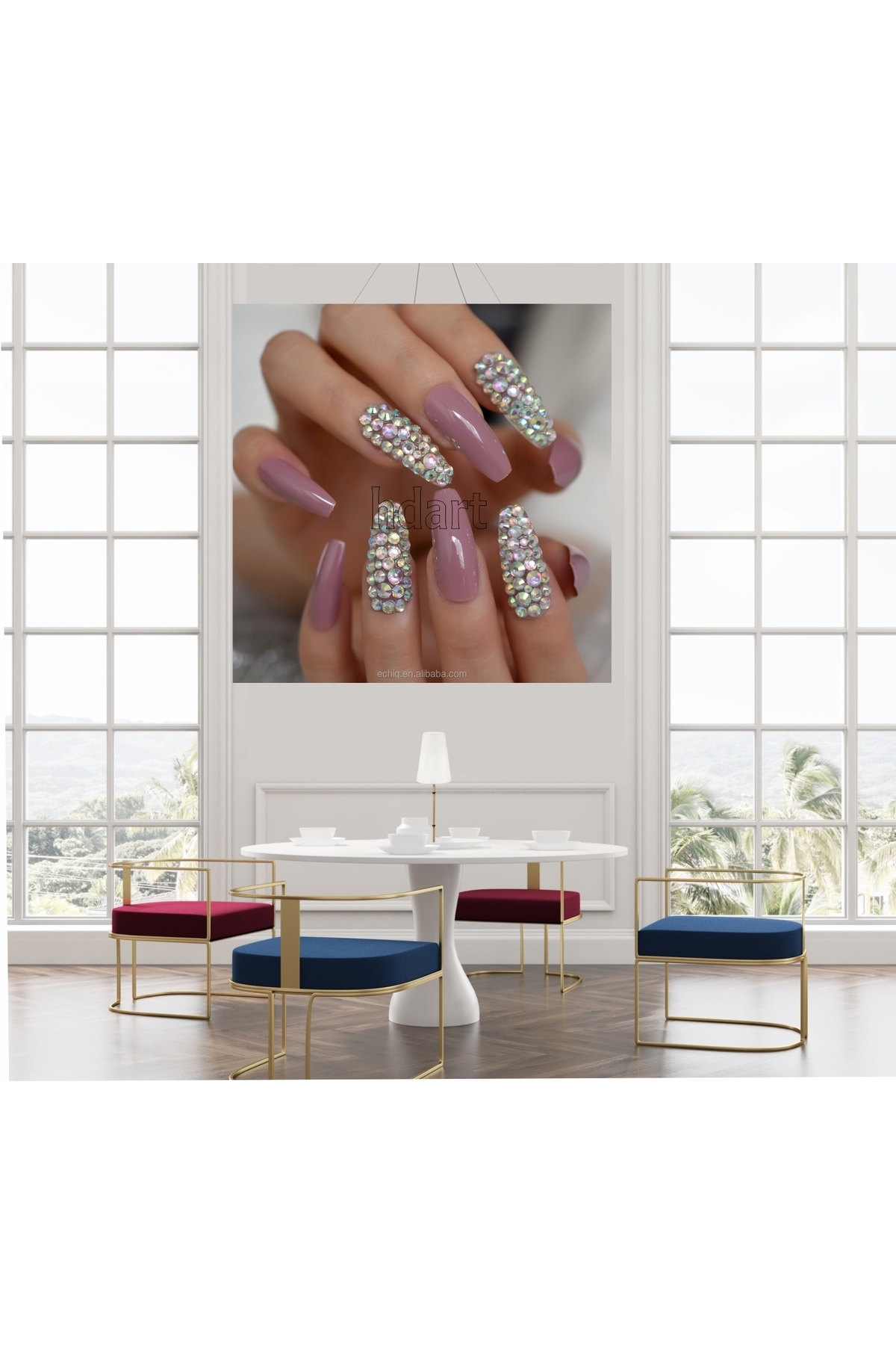 تابلوی زیبای میکاپ ناخن طلایی با الماس یک انتخاب مناسب برای سالنهای زیبایی است.