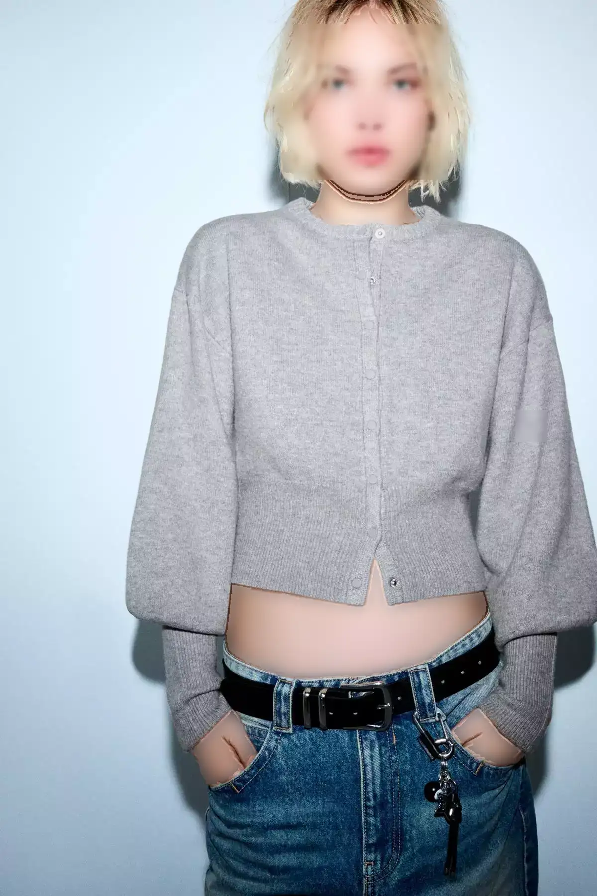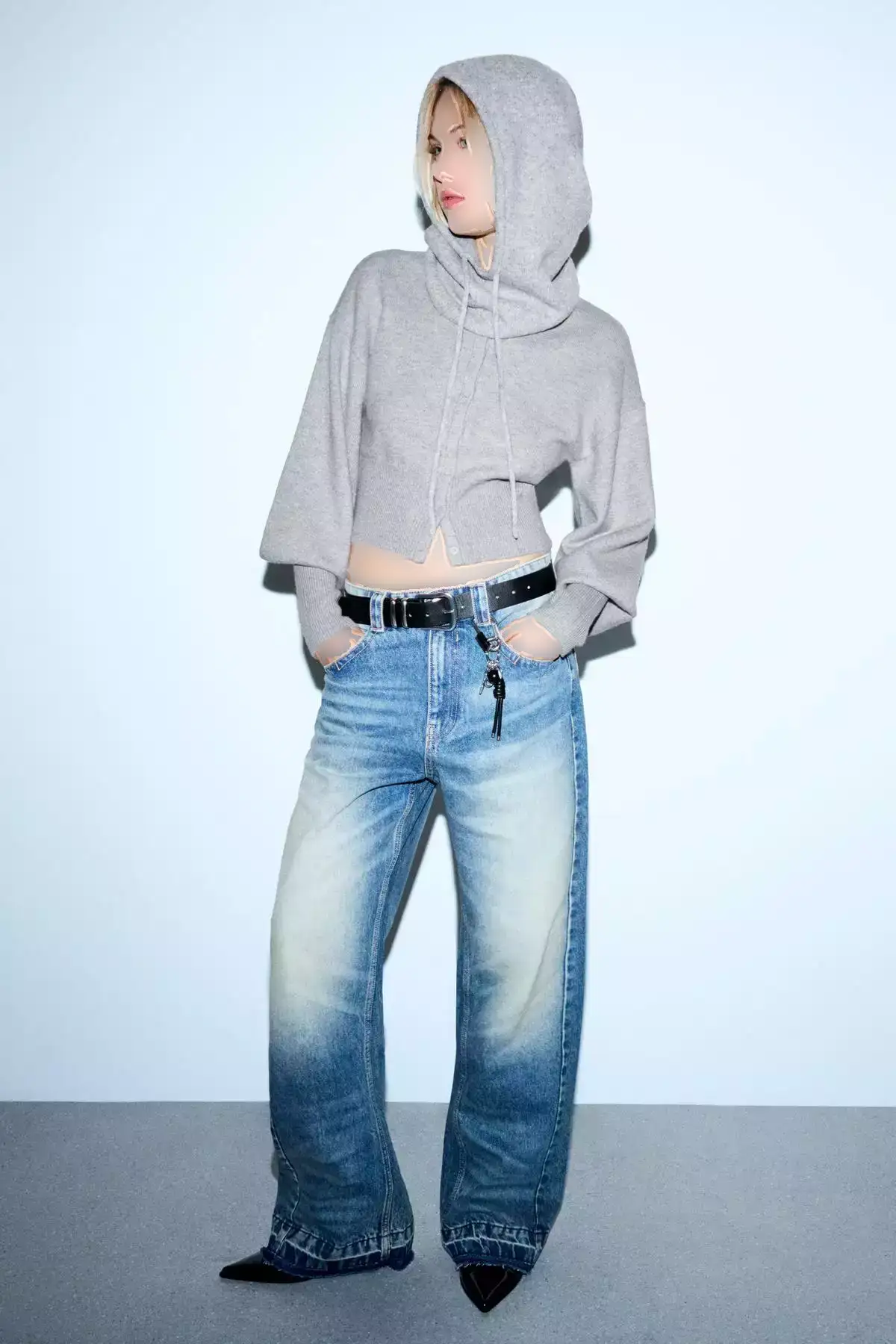 هفته بافتنی با جزئیات لبهدار، کاپشنی که به بدن چسبیده است برند Bershka