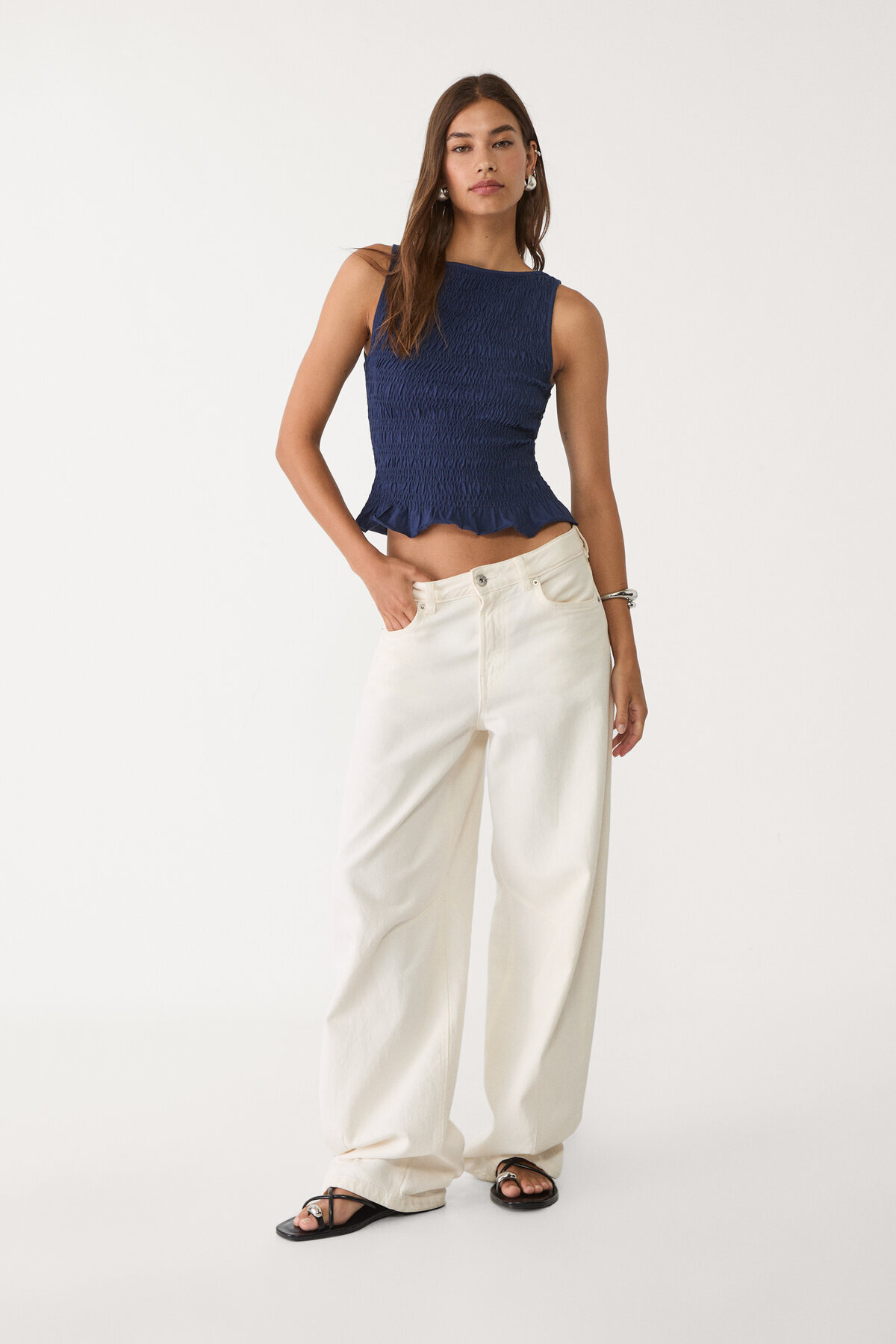 تیشرت این ست طراحی ساده و زیبایی دارد که میتواند به راحتی با انواع دامنها یا شلوارها ترکیب شود. پارچه نرم و تنفسپذیر این تیشرت، آن را به گزینهای ایدهآل برای فصول گرم سال تبدیل میکند. علاوه بر این، جزئیات دوخت و برشهای هوشمندانه این لباس، به آن فرم و ساختاری خاص میبخشد که میتواند زیبایی اندام شما را به خوبی نمایش دهد.