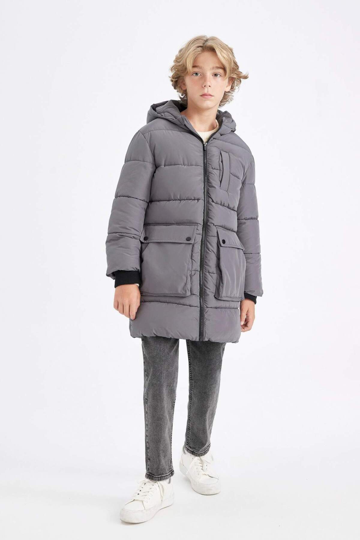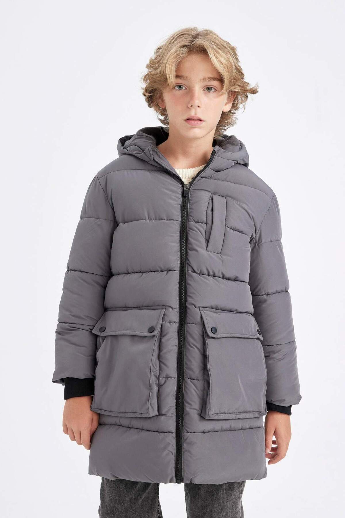پارس کلاهدار ضدآب با زیپ و جیب برای پسران با آستر پشمی C8801A824CW برند Defacto