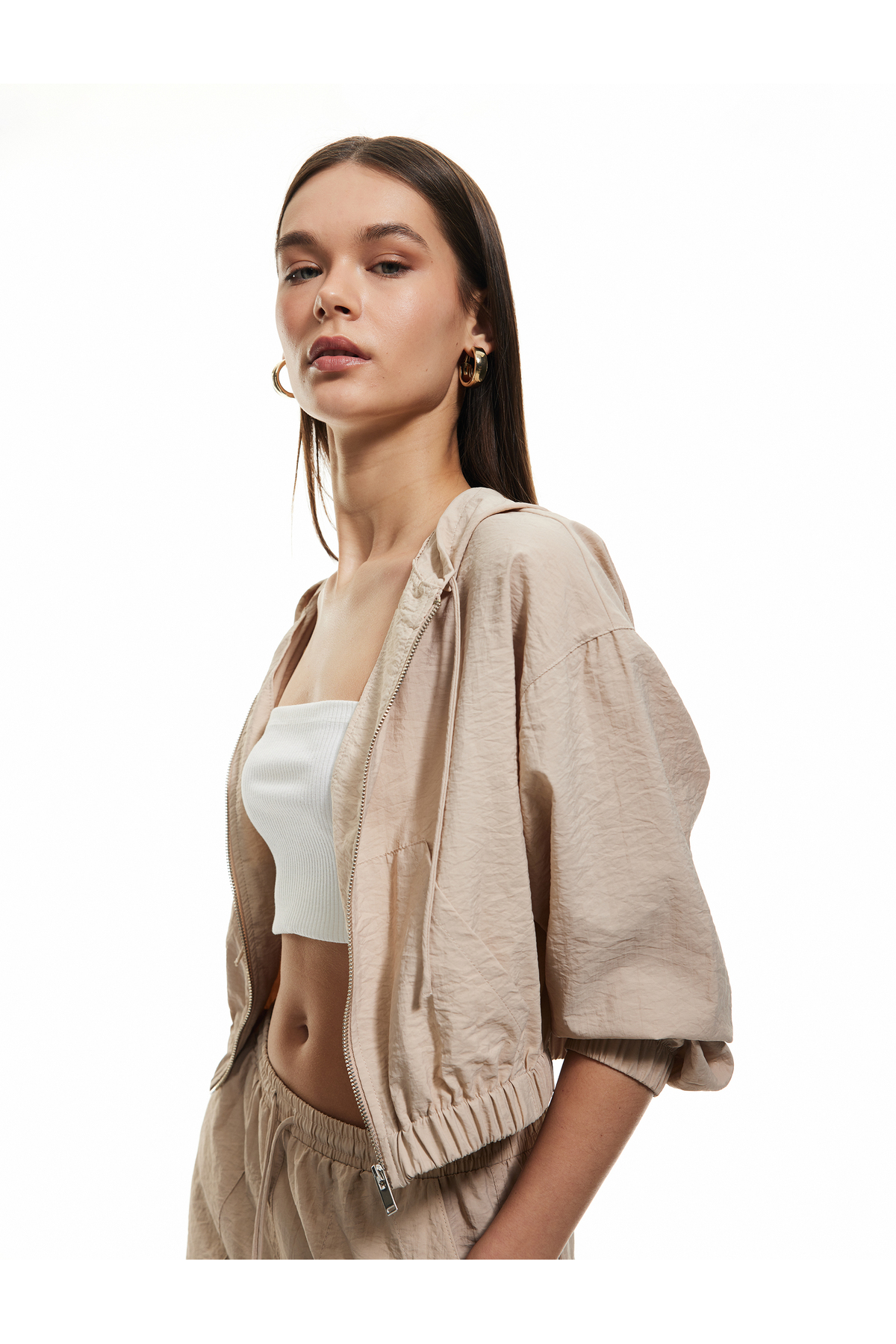پارچه چتر براق در تاریکی با جیب و زیپدار و کلاهدار، مدل بمبافکن و بادگیر برند Koton