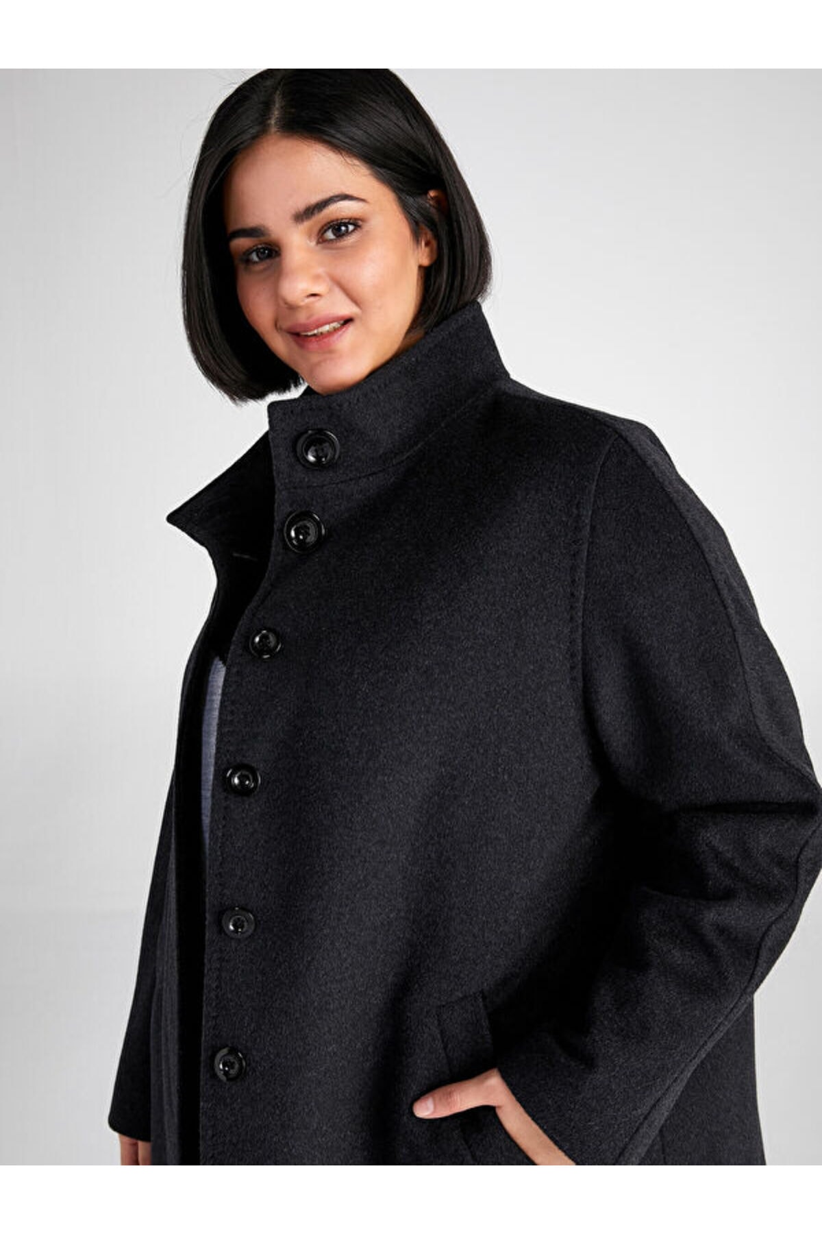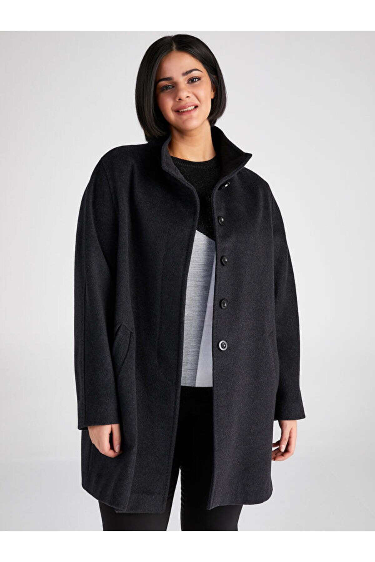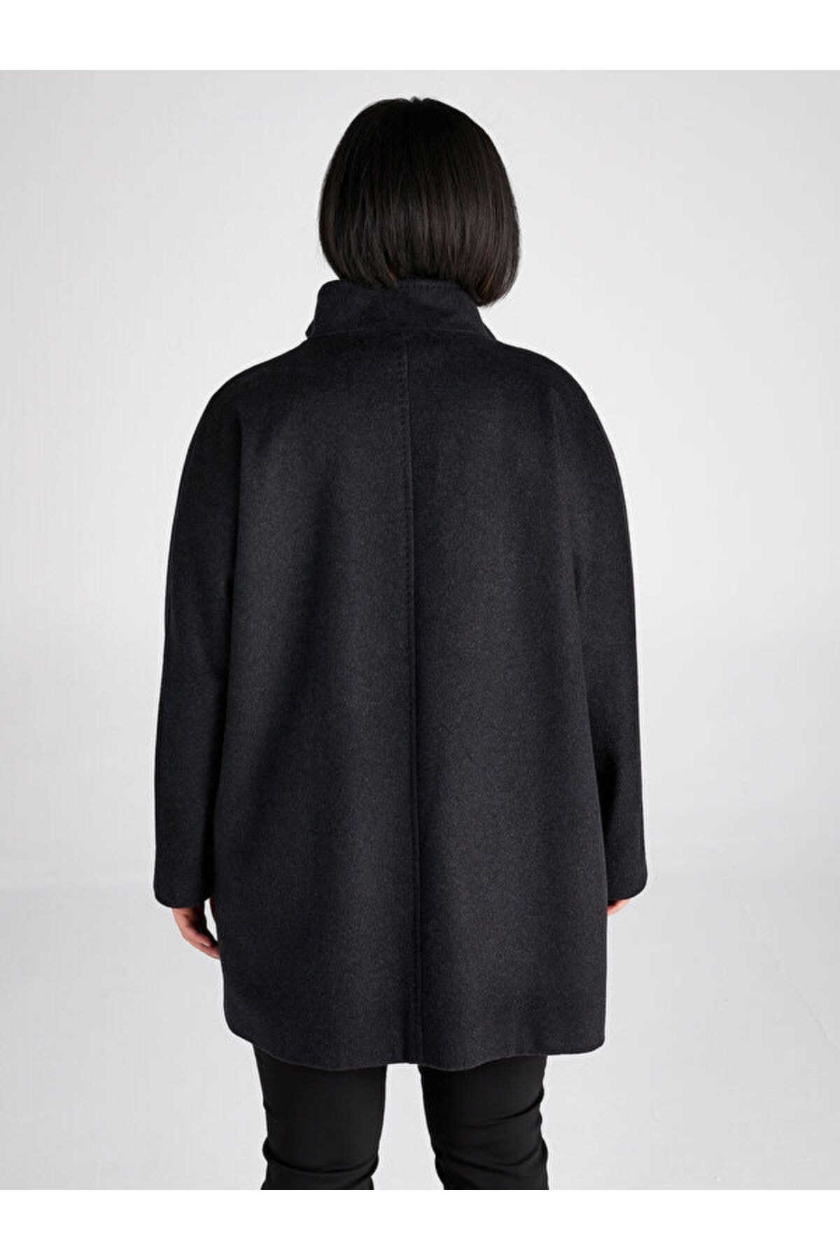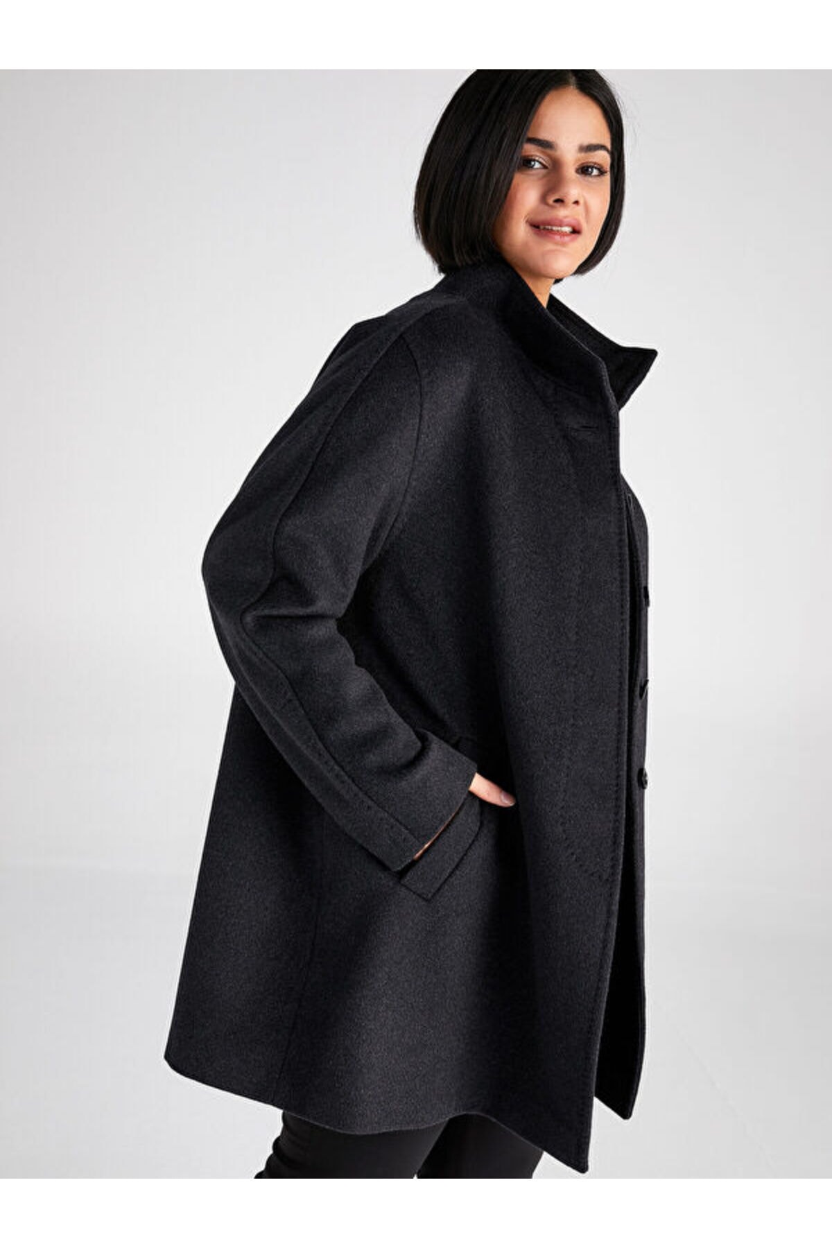 پالتوی کشمیری زنانه با یقه ایستاده رنگ آنتراسیت 00039 برند Faik Sönmez