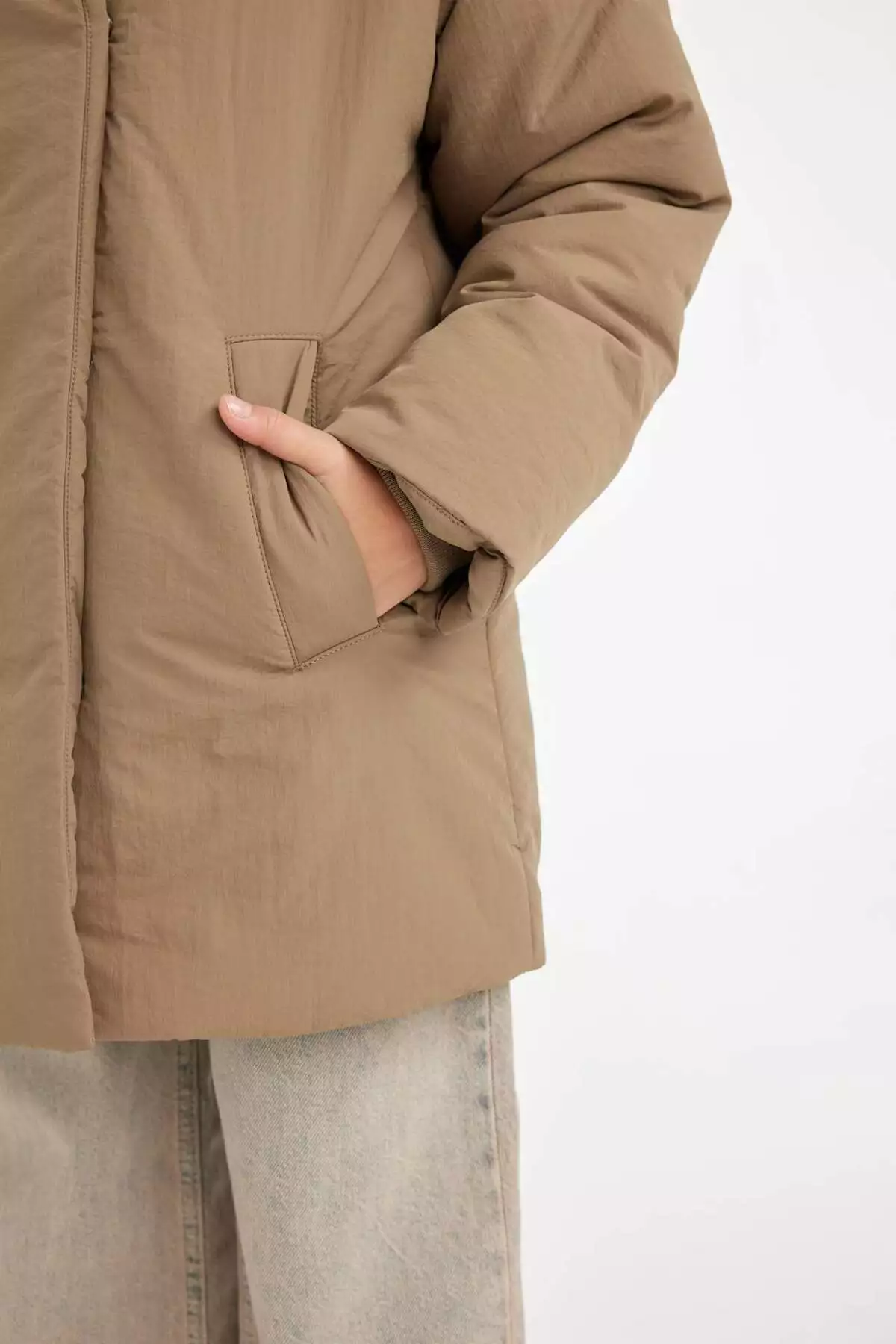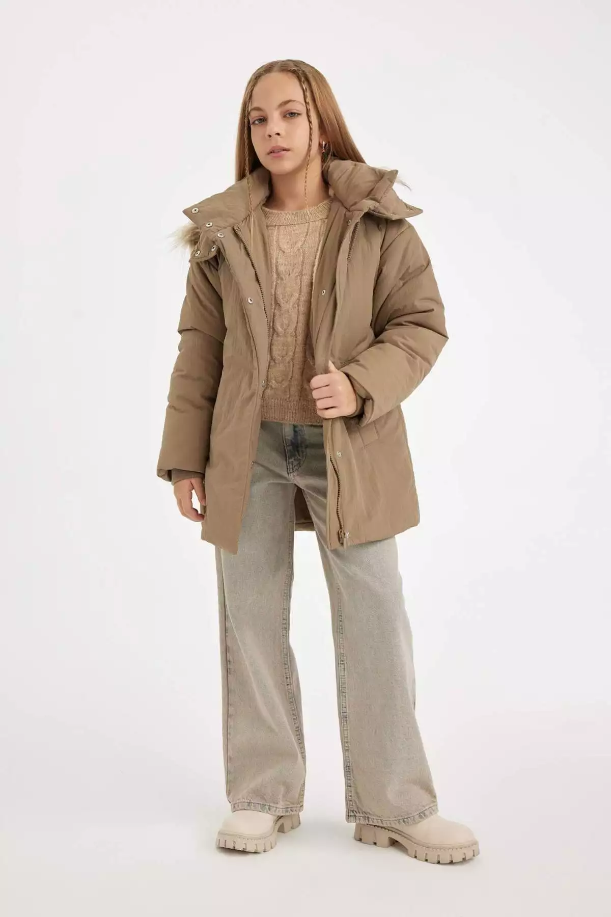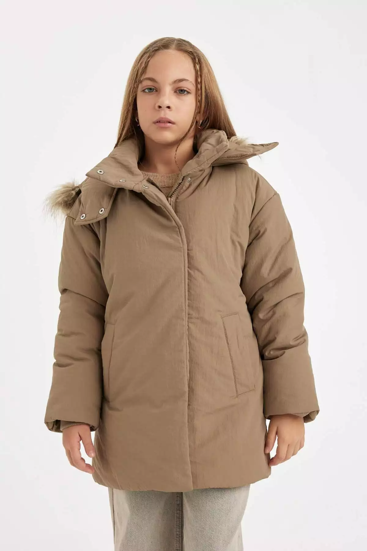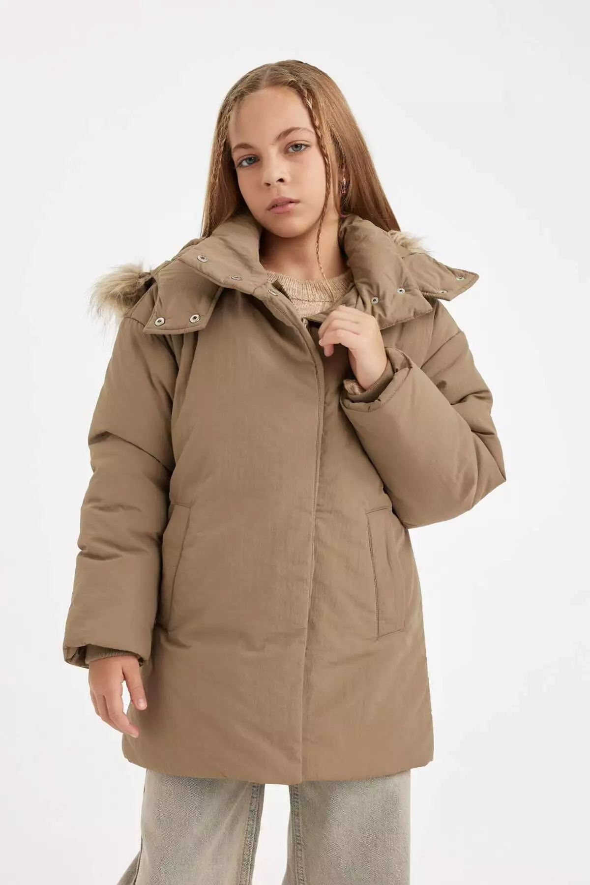 پالتوی کلاهدار با یقه خز مصنوعی قابل جدا شدن برای دختران برند Defacto – 879221363