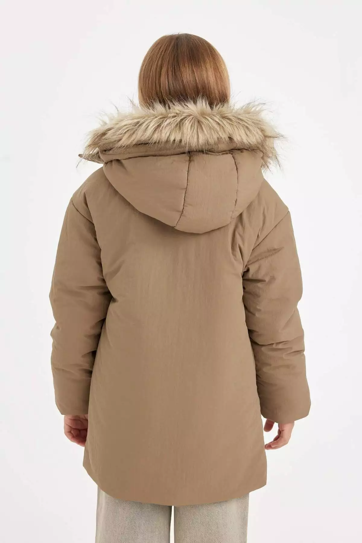 پالتوی کلاهدار با یقه خز مصنوعی قابل جدا شدن برای دختران برند Defacto - 879221363