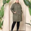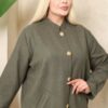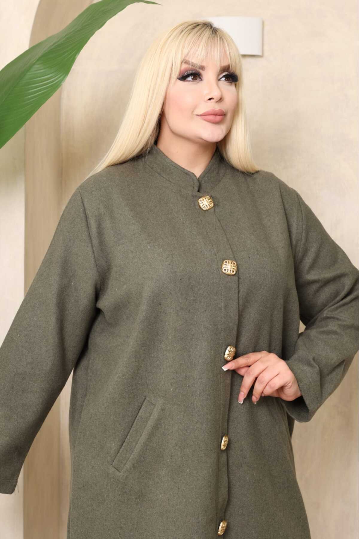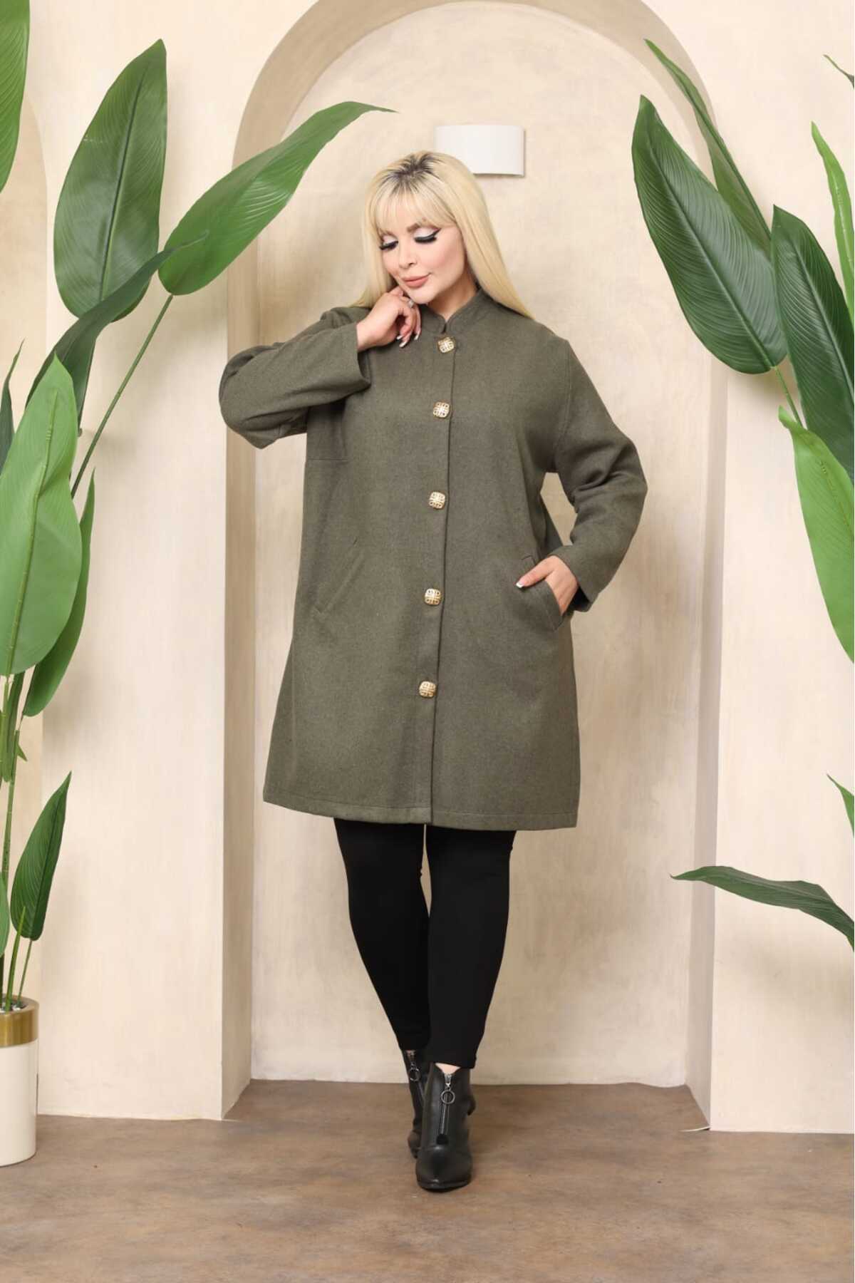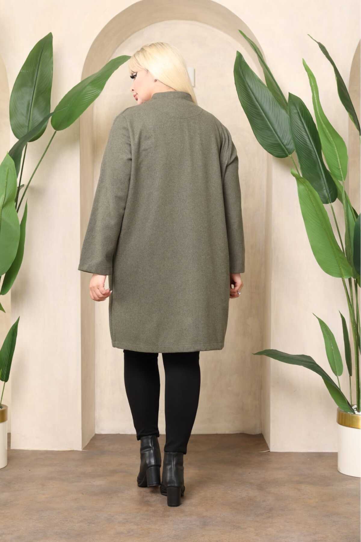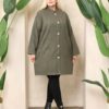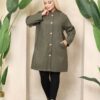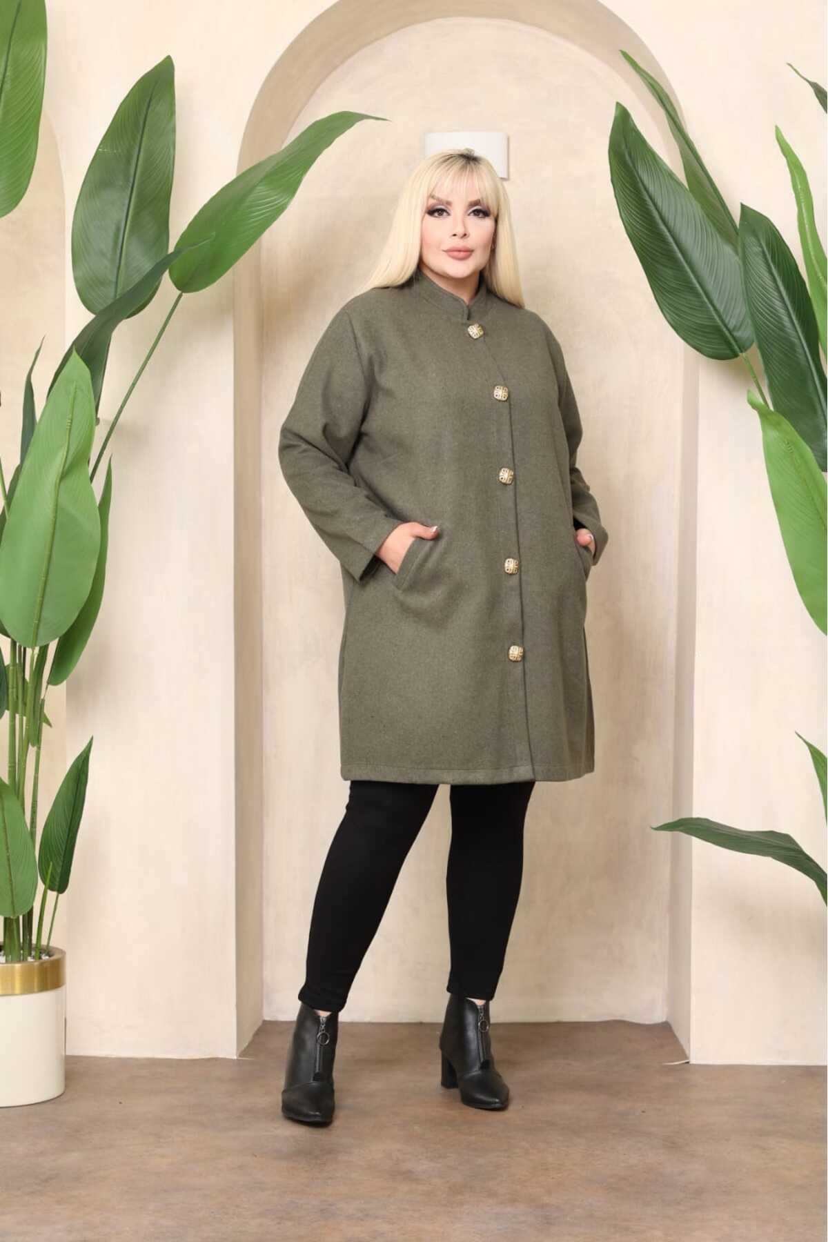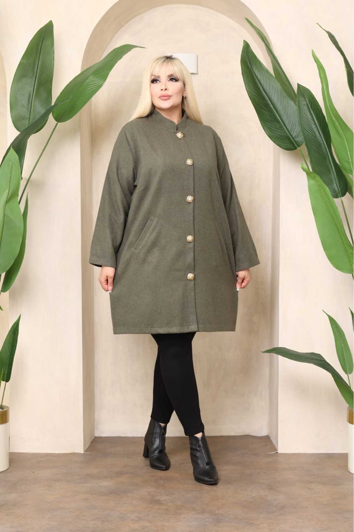 پالتو زنانه بزرگ سایز با رنگ خاکی و جیبدار، بدون آستر، مدل کاشه 65N38346 برند Şans