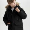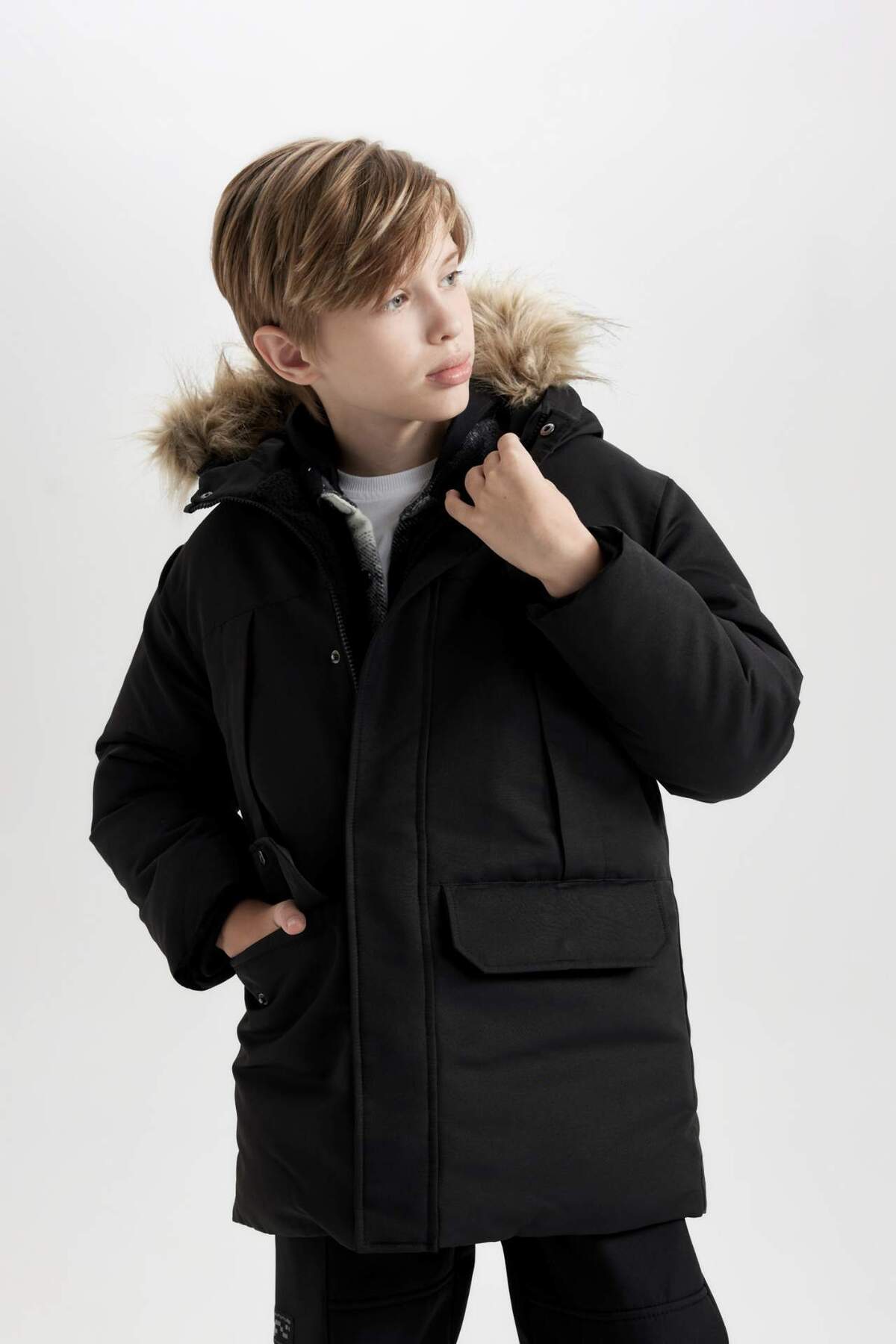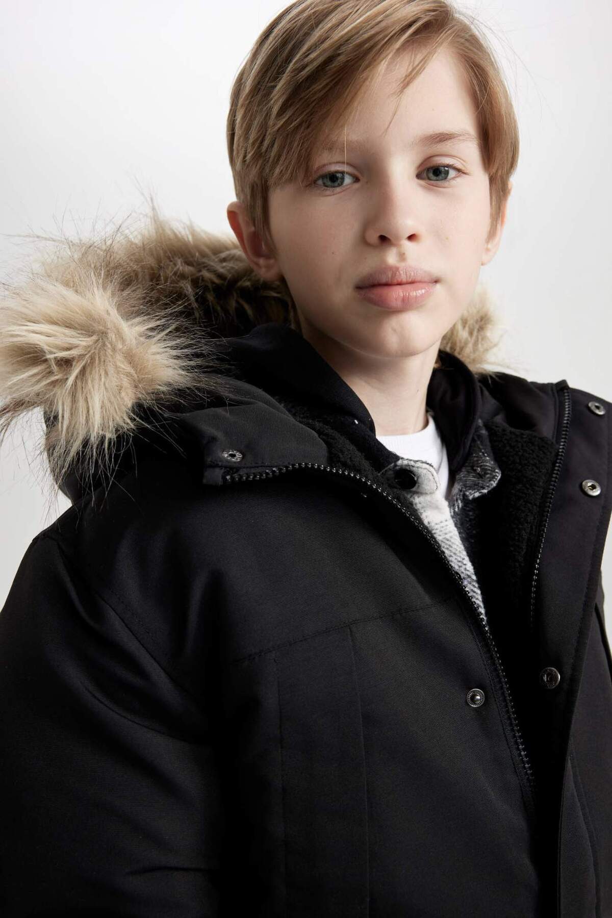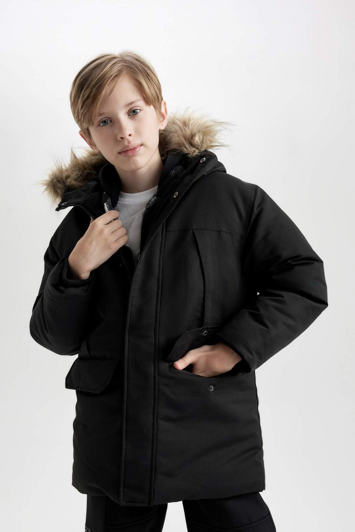 پالتو پسرانه با یقه خز مصنوعی و کلاهی قابل جدا شدن، با آستری پِلِوش C8783A824WN برند Defacto