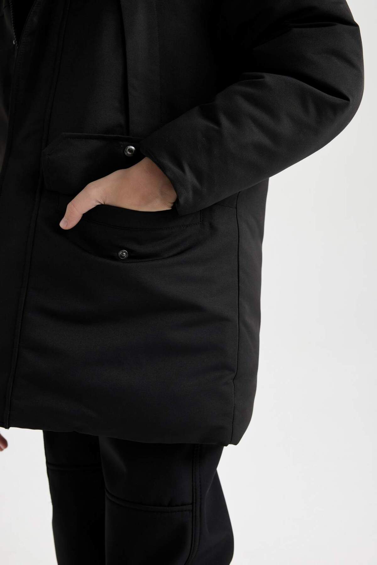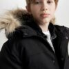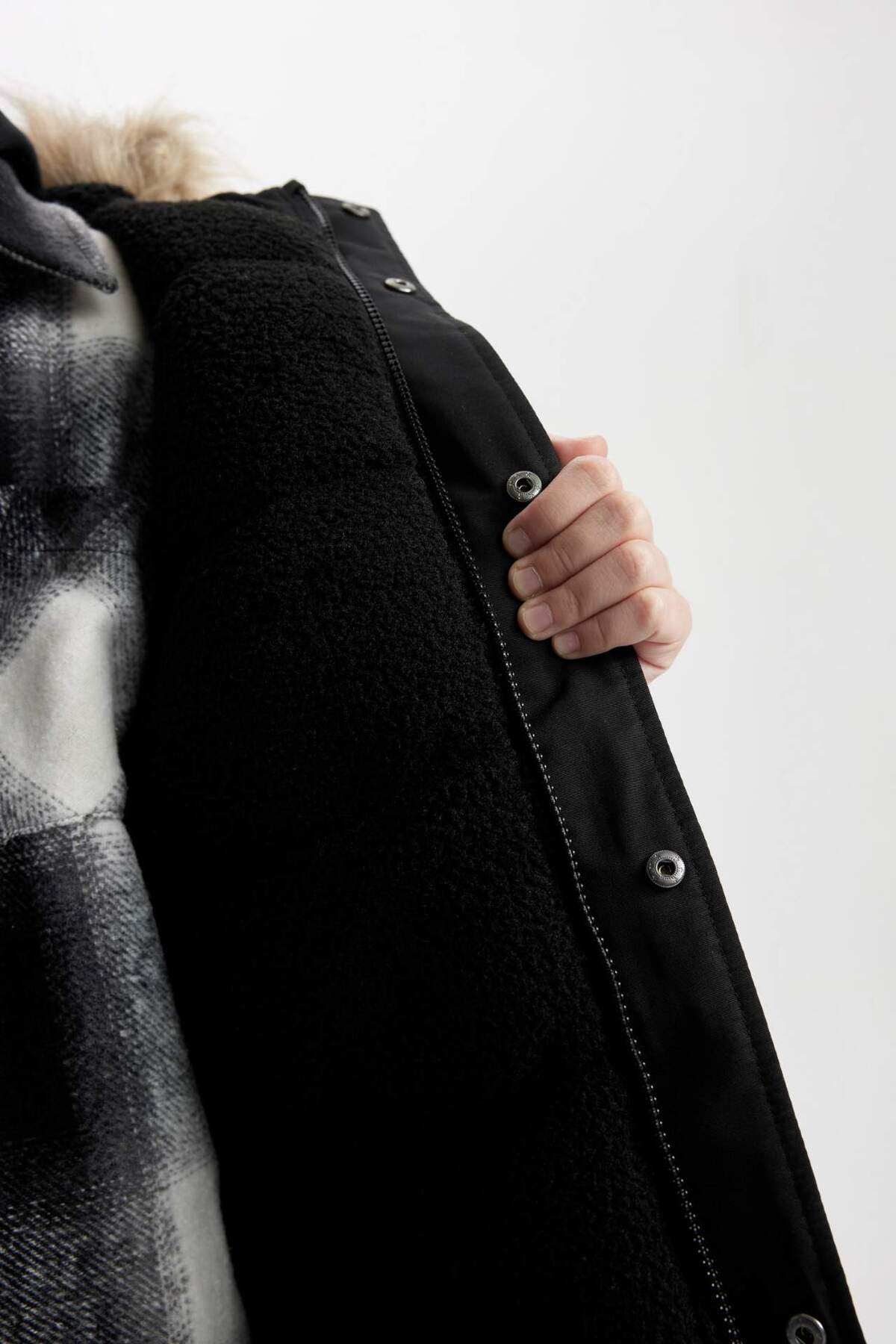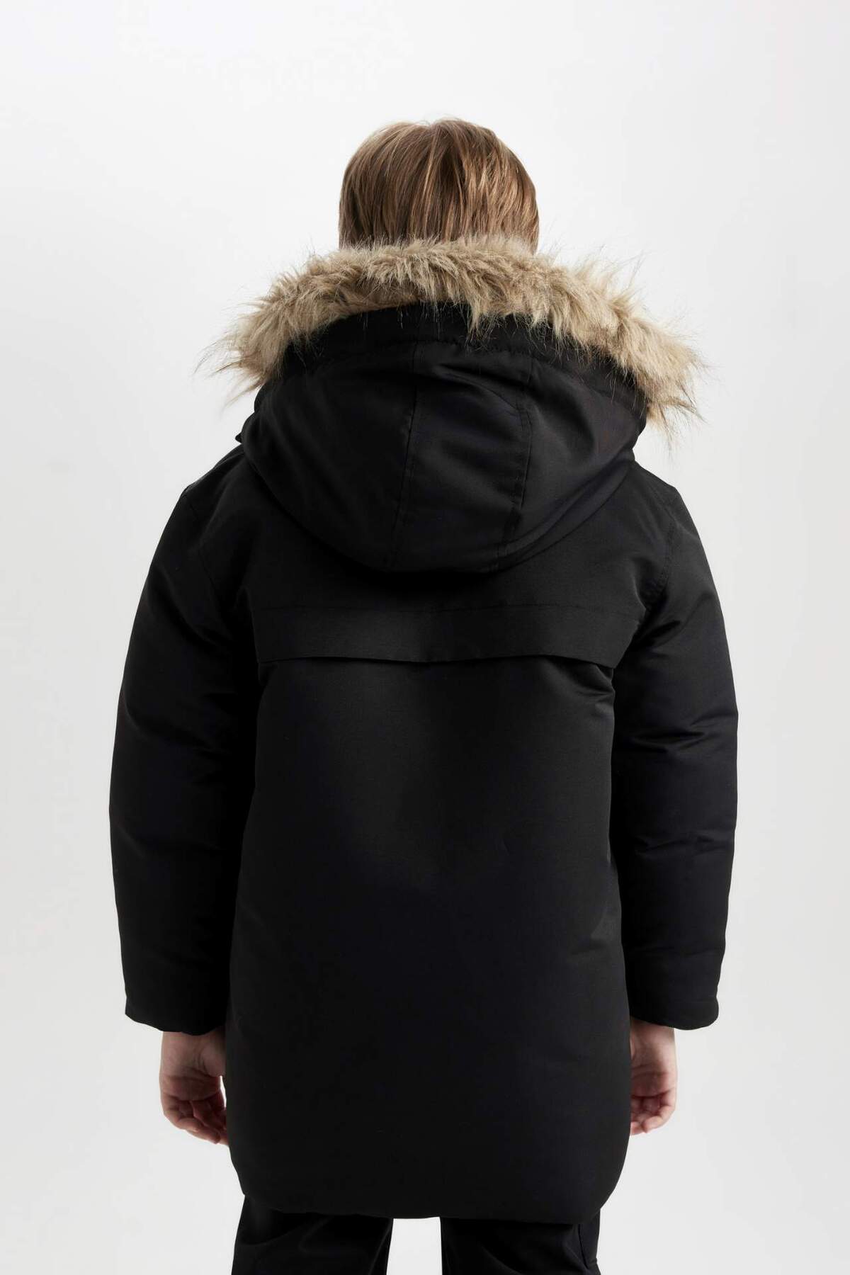 پالتو پسرانه با یقه خز مصنوعی و کلاهی قابل جدا شدن، با آستری پِلِوش C8783A824WN برند Defacto