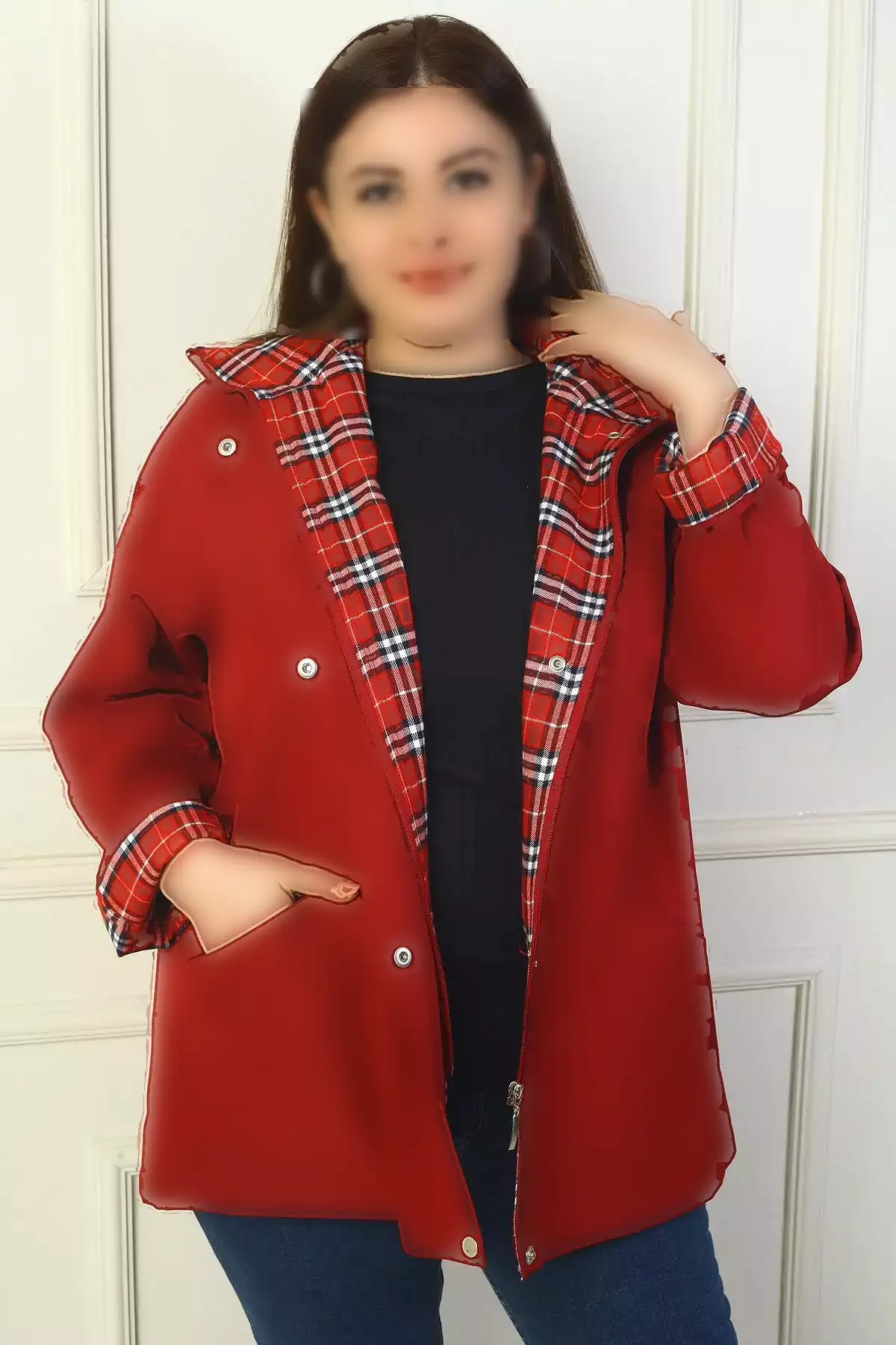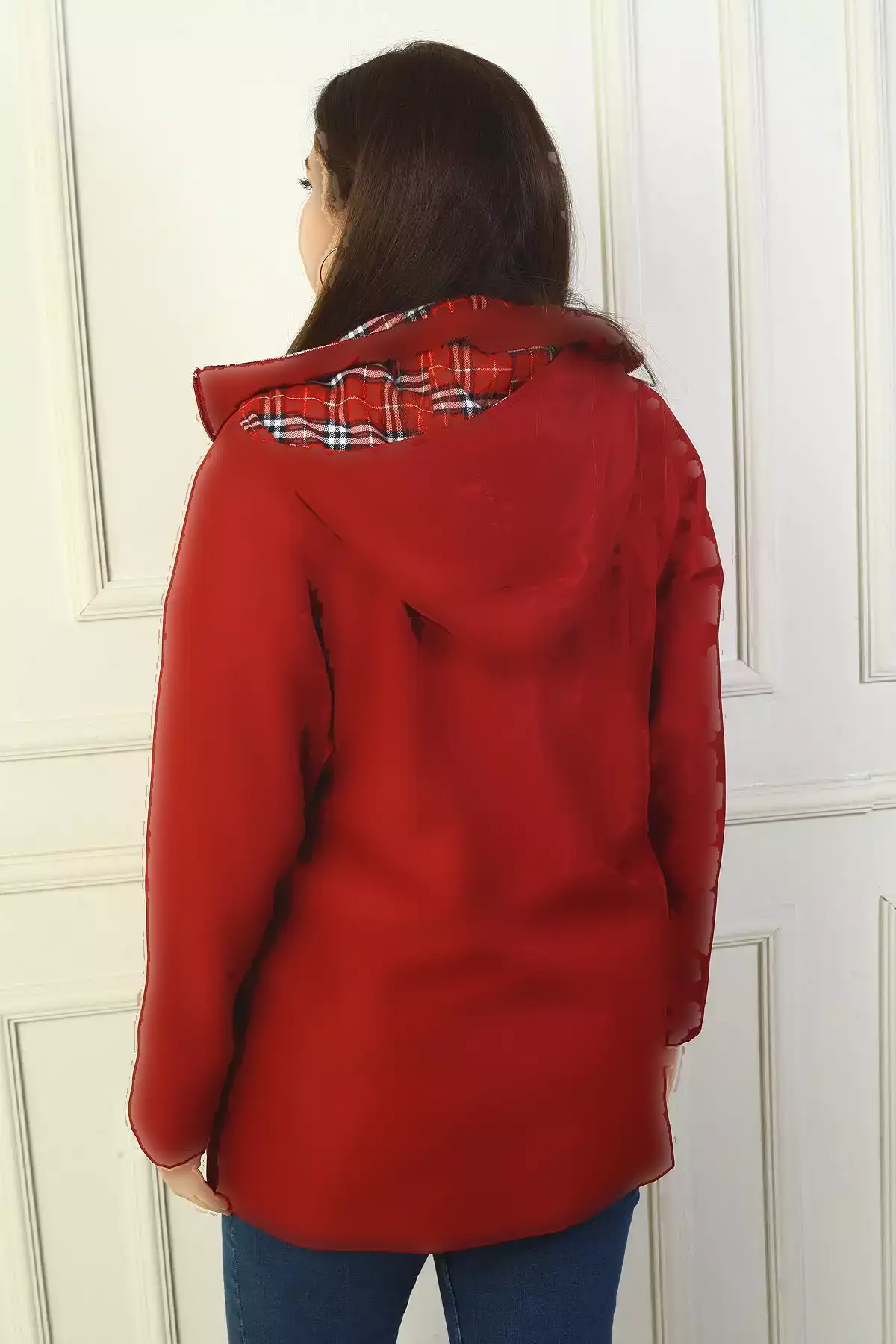 پالتو کلاهدار زیپ دار با دکمه جلو مخصوص سایز بزرگ برای خانمها برند By Saygı