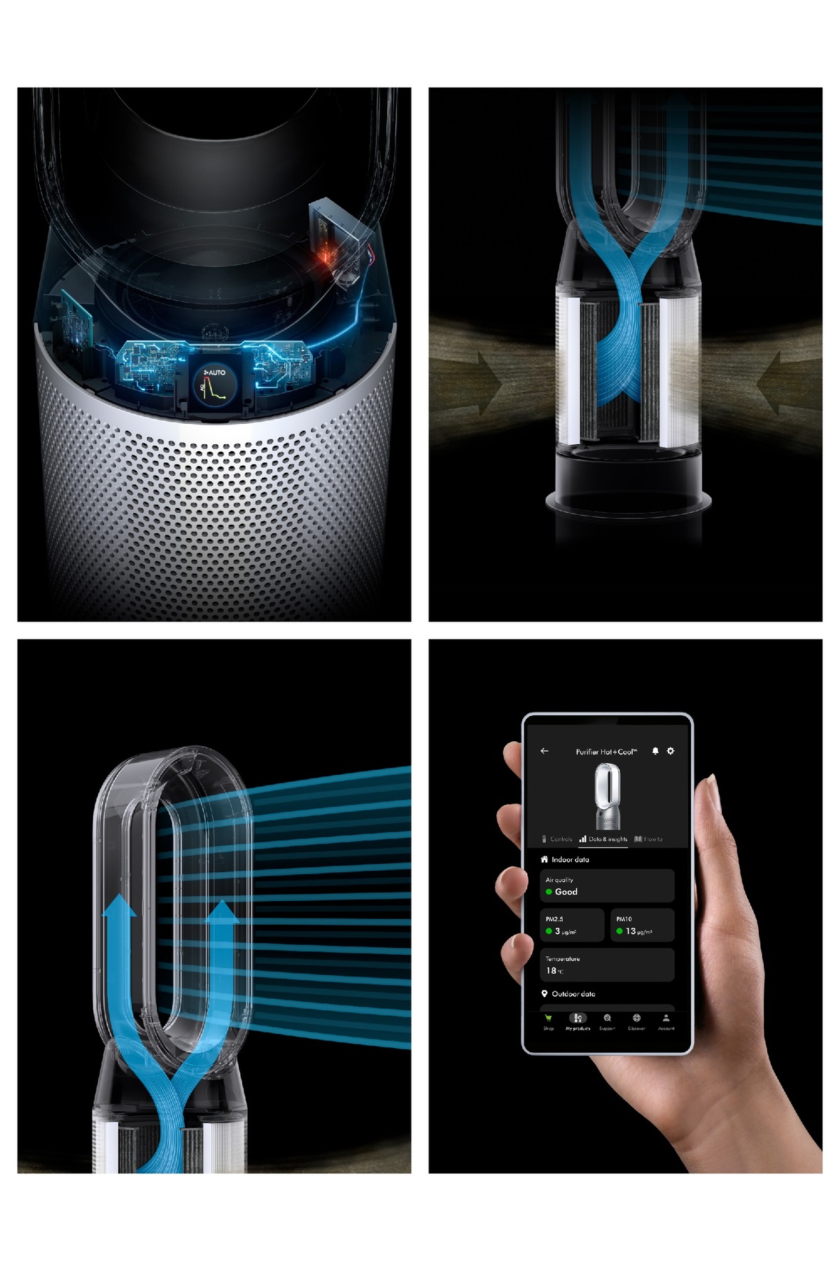 مدل HP1 با قابلیت اتصال به سیستم هوشمند و کنترل از راه دور، تجربهای راحت و مدرن را برای کاربر فراهم میکند. شما میتوانید به راحتی و با استفاده از یک اپلیکیشن بر روی گوشی هوشمند خود، وضعیت دستگاه را بررسی کرده و آن را کنترل کنید. همچنین، این دستگاه دارای حسگرهای هوشمند است که کیفیت هوا را در زمان واقعی بررسی کرده و به طور خودکار تنظیمات لازم را انجام میدهد.