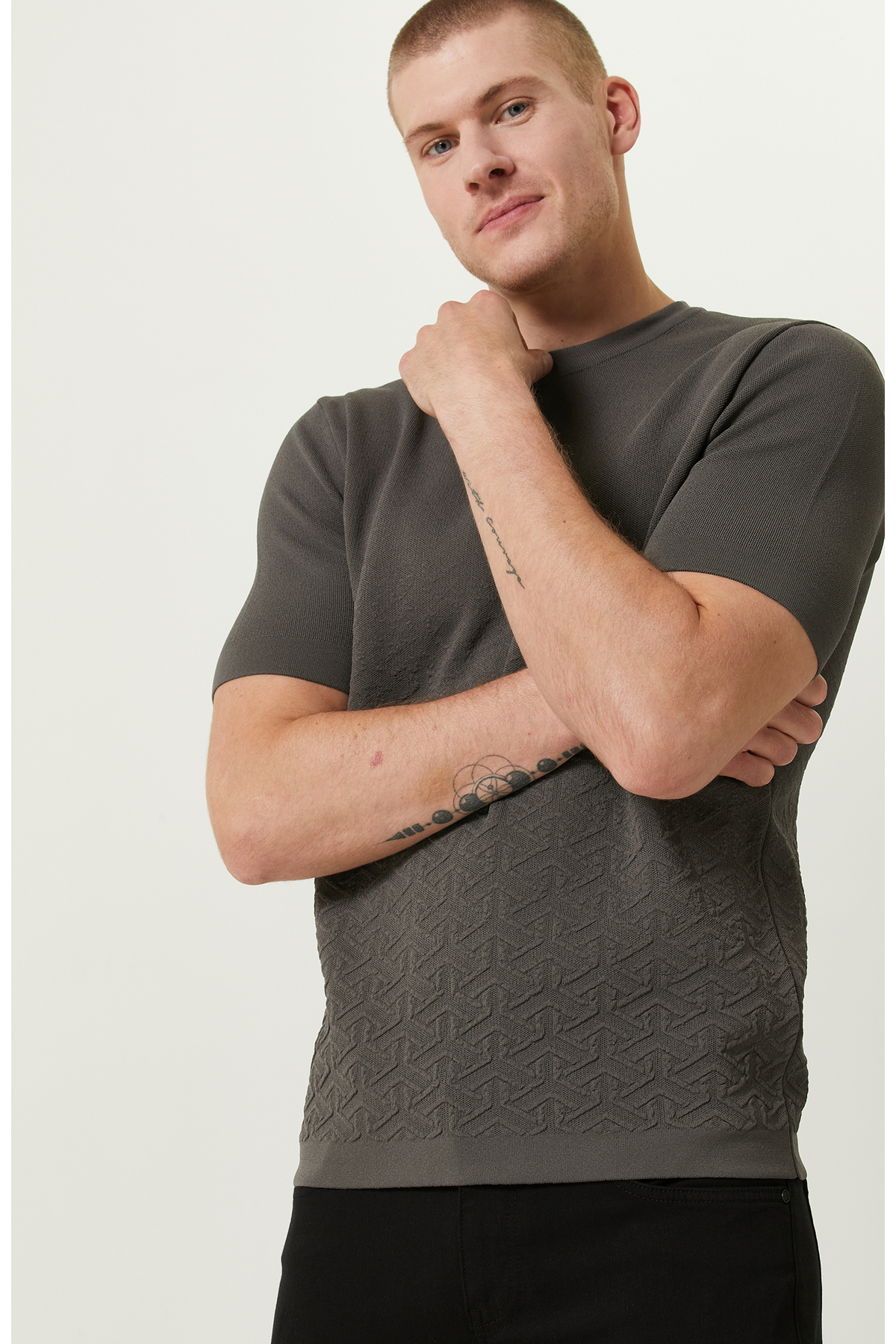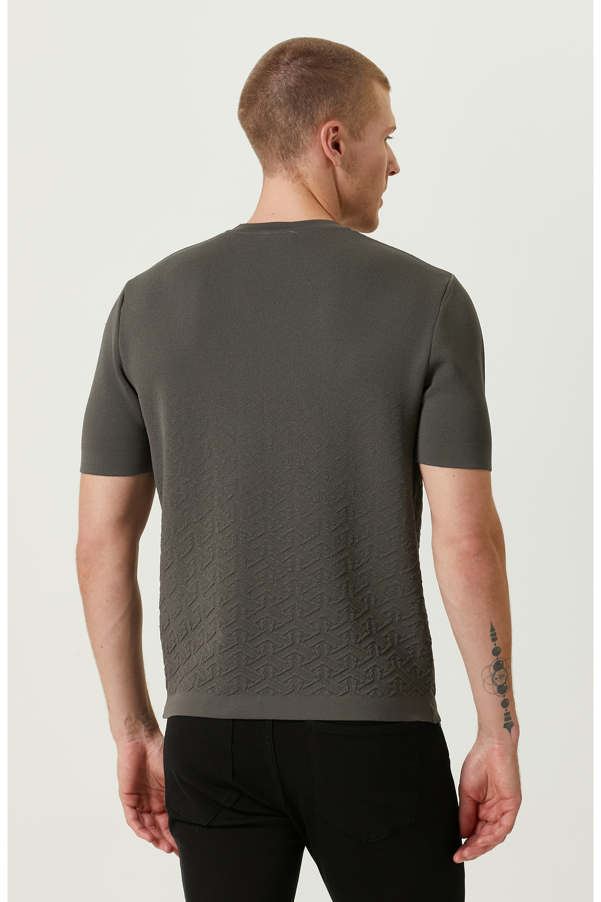 پلیور بافتنی جاکاردار آستین کوتاه قهوه ای سموری برند Network کد 1720771865