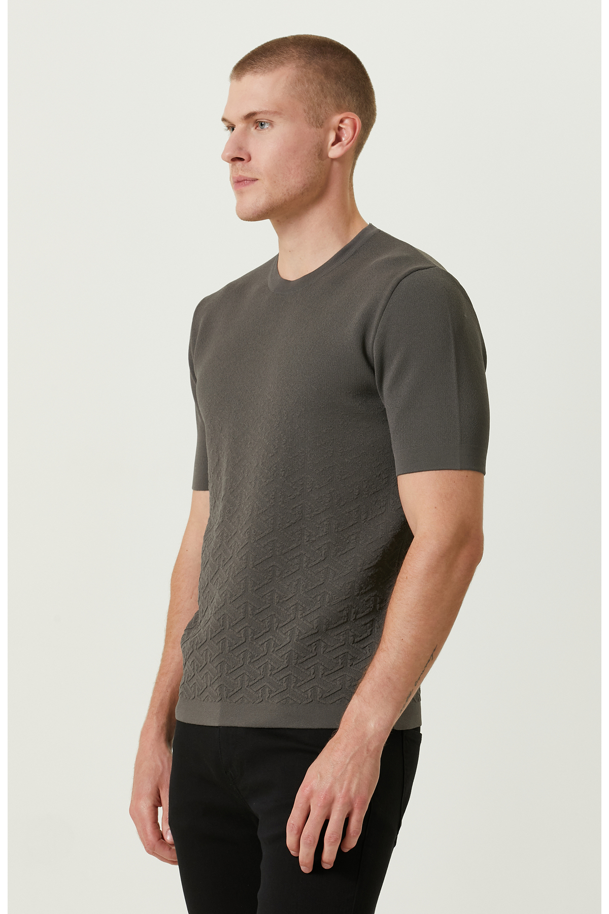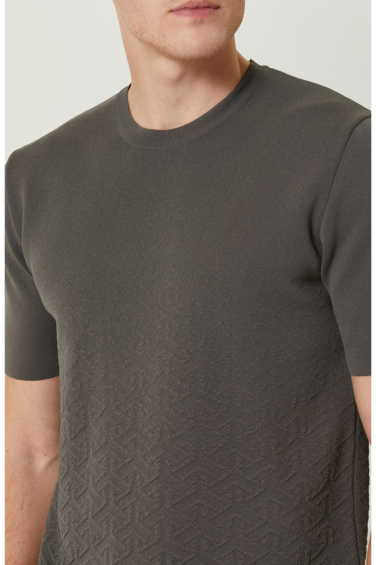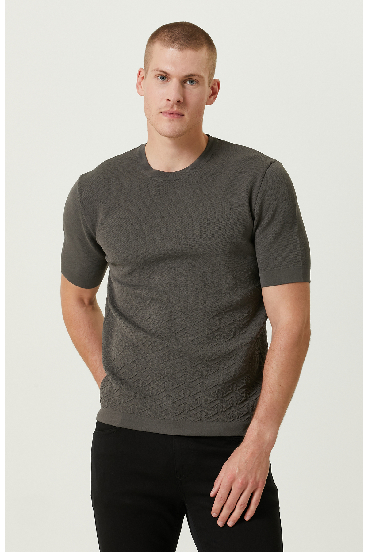 پلیور بافتنی جاکاردار آستین کوتاه قهوه ای سموری برند Network کد 1720773064
