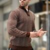 پلیور بافتنی زیپ دار یقه طرح‎دار آستین بلند قهوه‎ای برند Madmext کد 1735366201