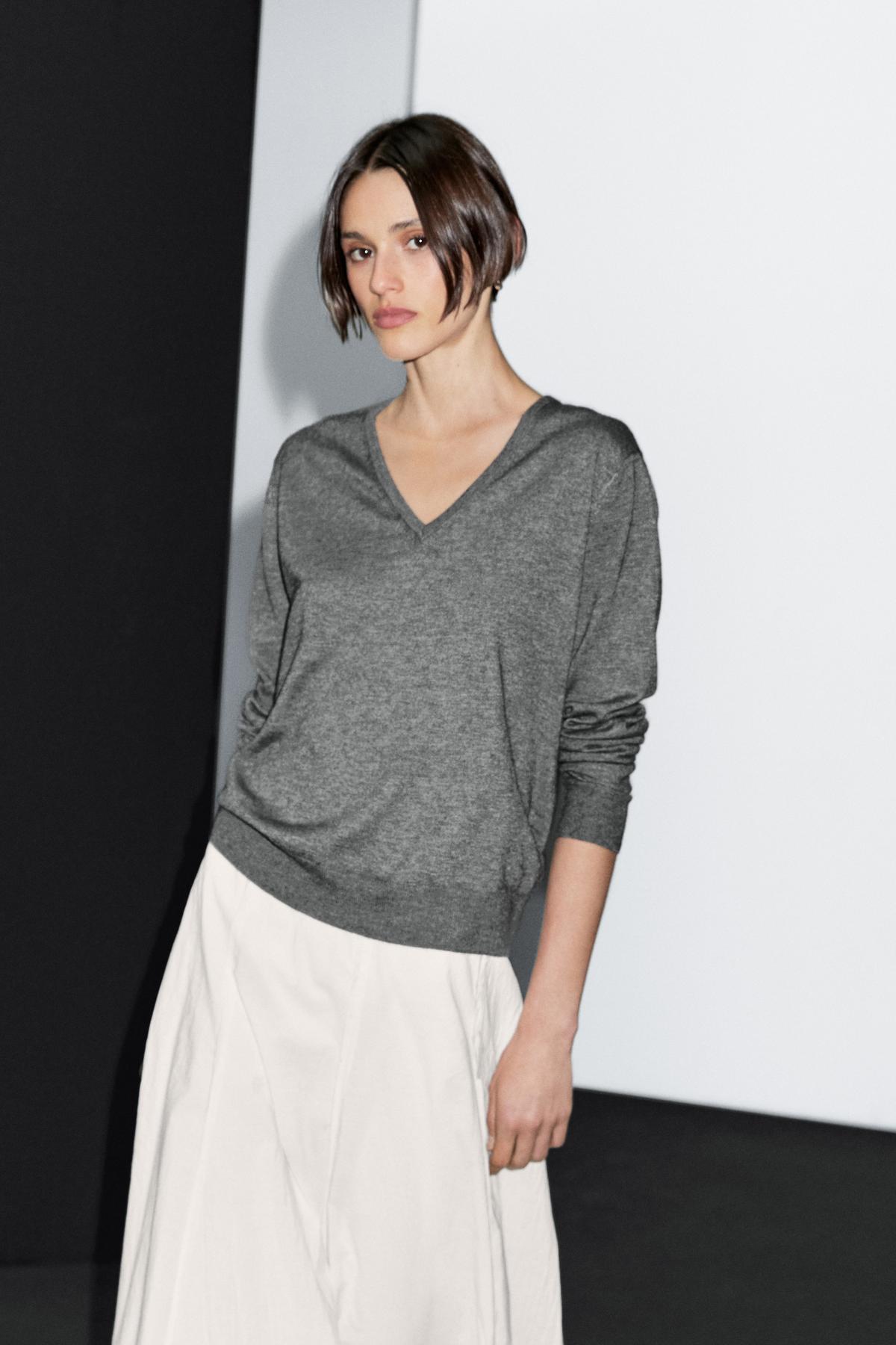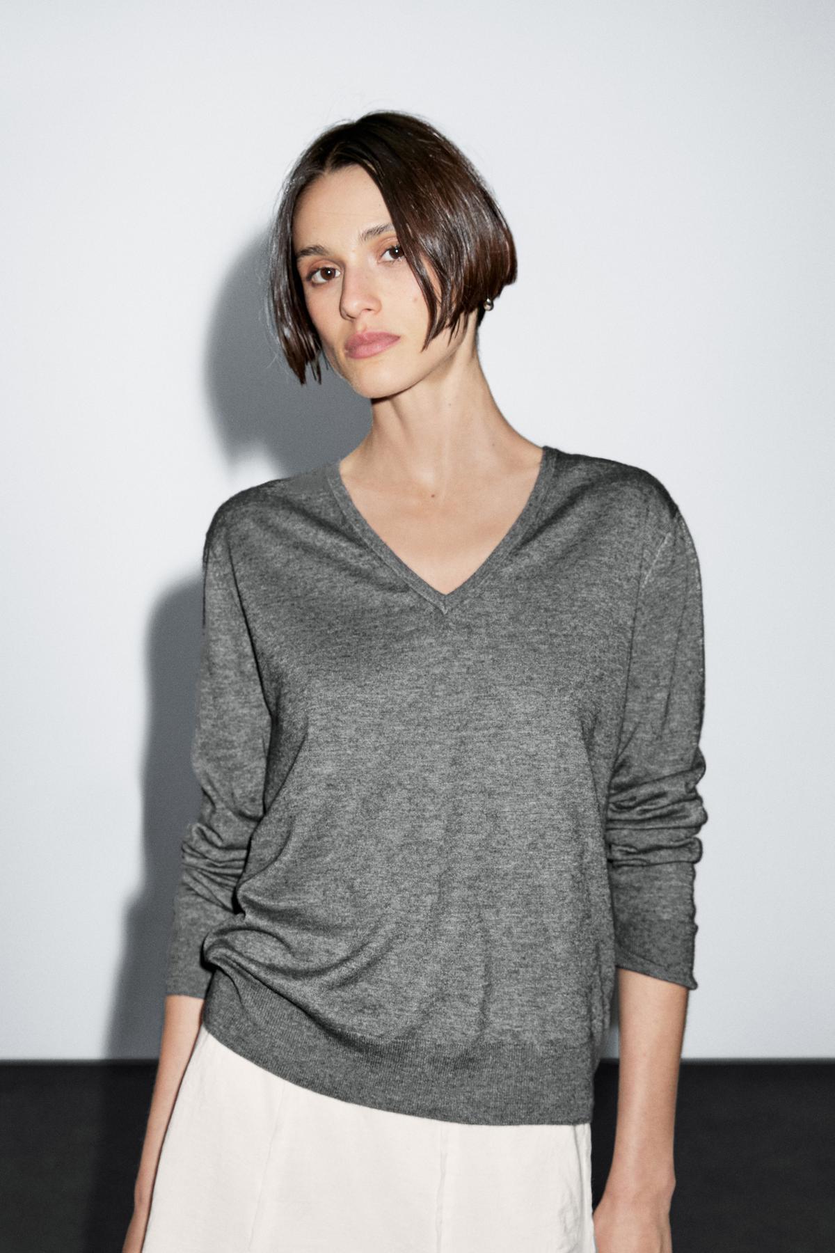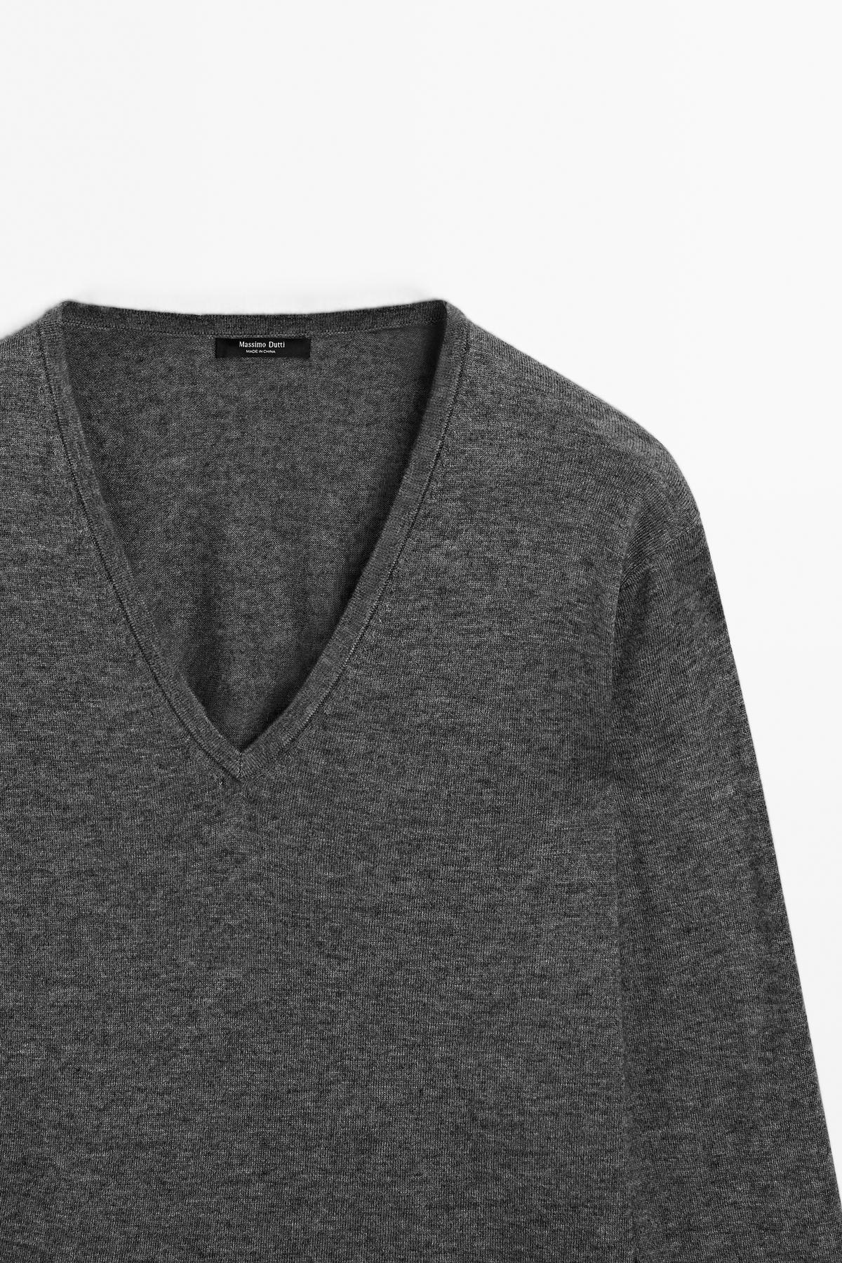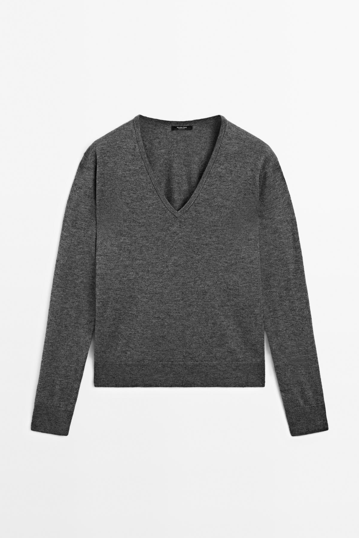 پلیور و یقه V کشبافی پشمی برند Massimo Dutti