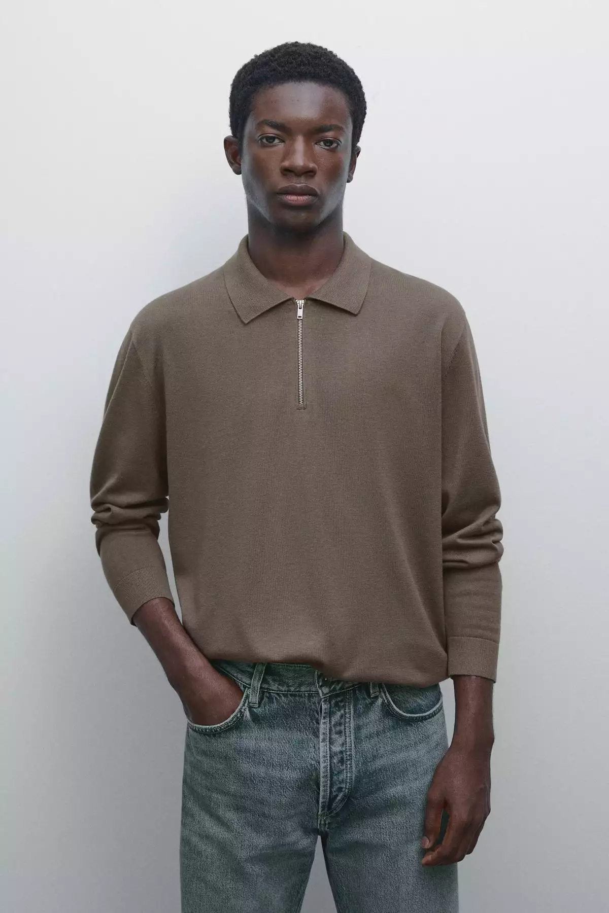 پولوشرت با یقه گرد با زیپ دار بافتنی برند Massimo Dutti
