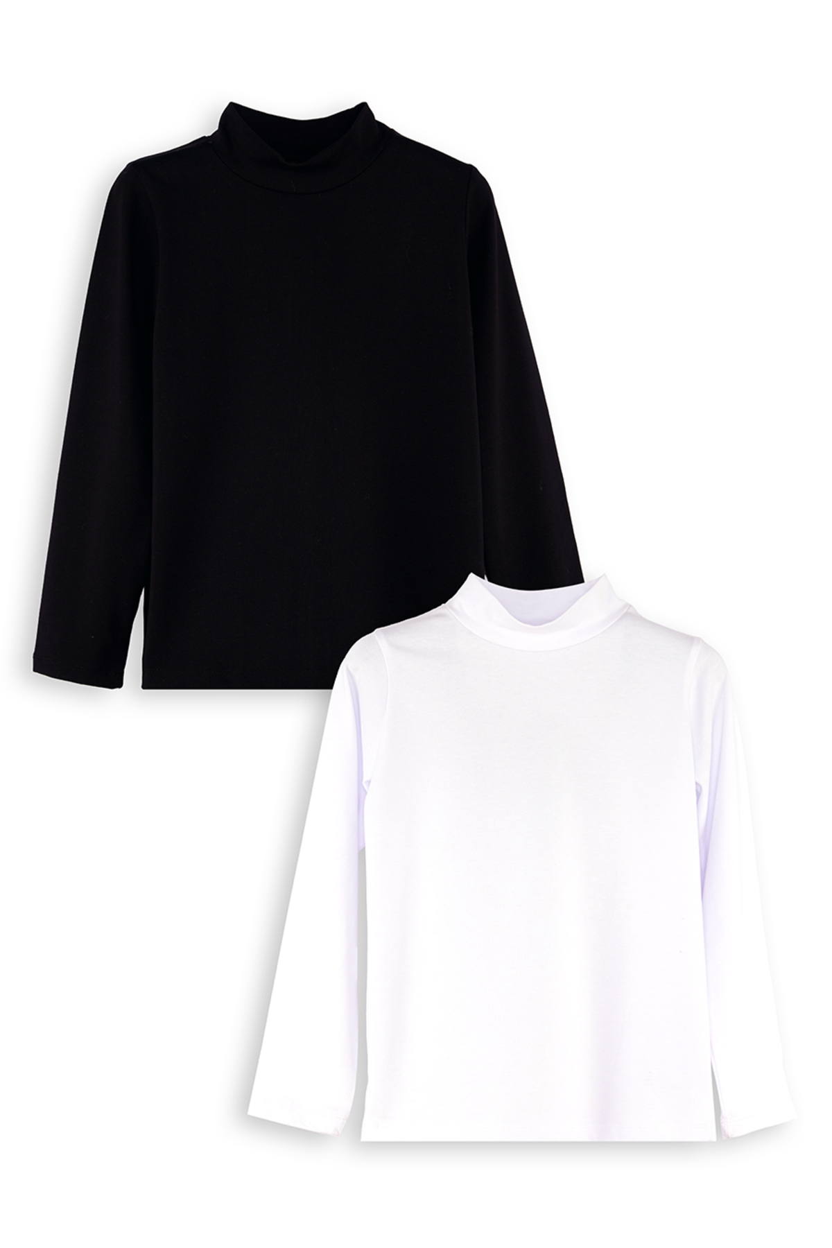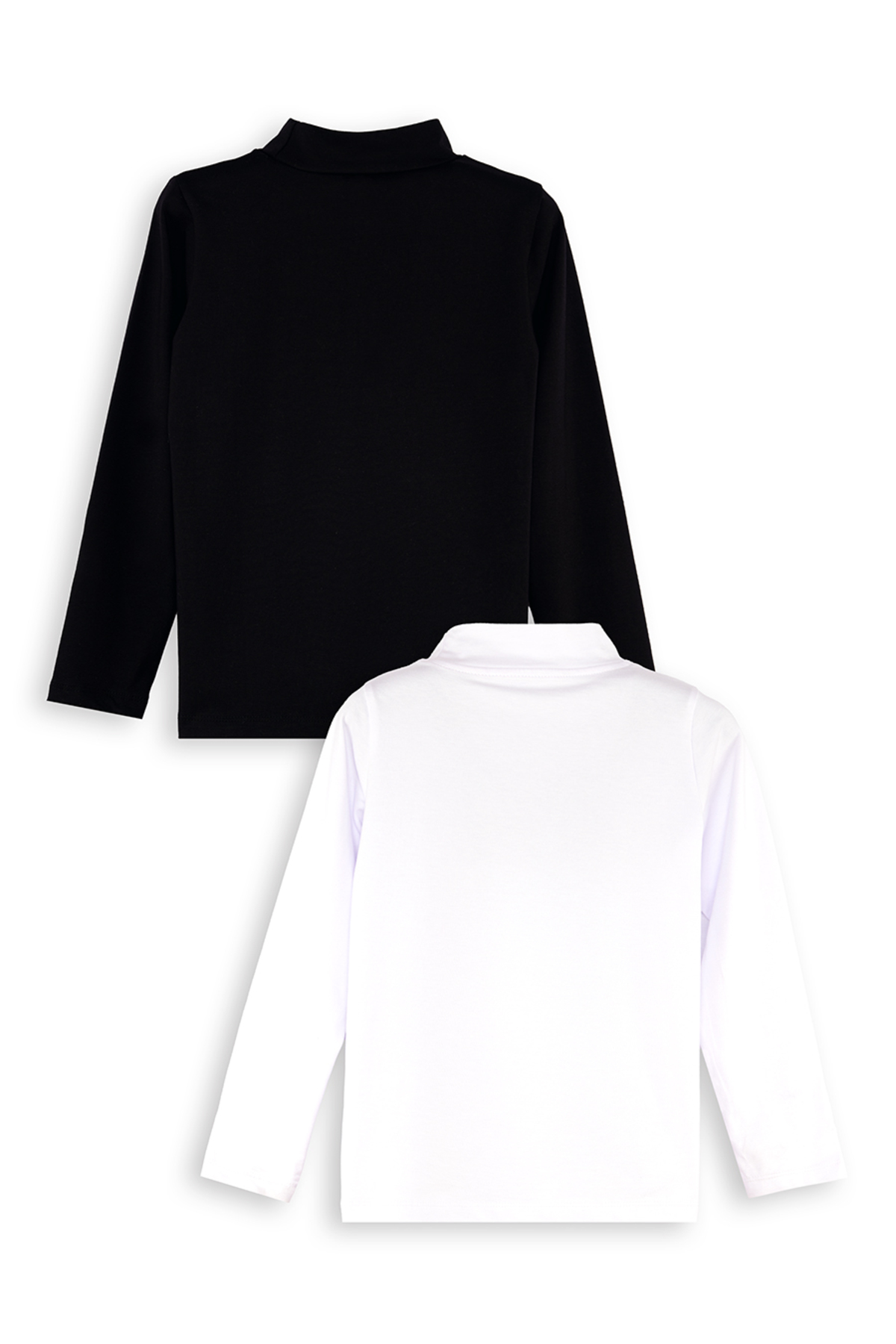 پک ۲ تایی تیشرت یقهدار بچهگانه سیاه و سفید برند Denokids