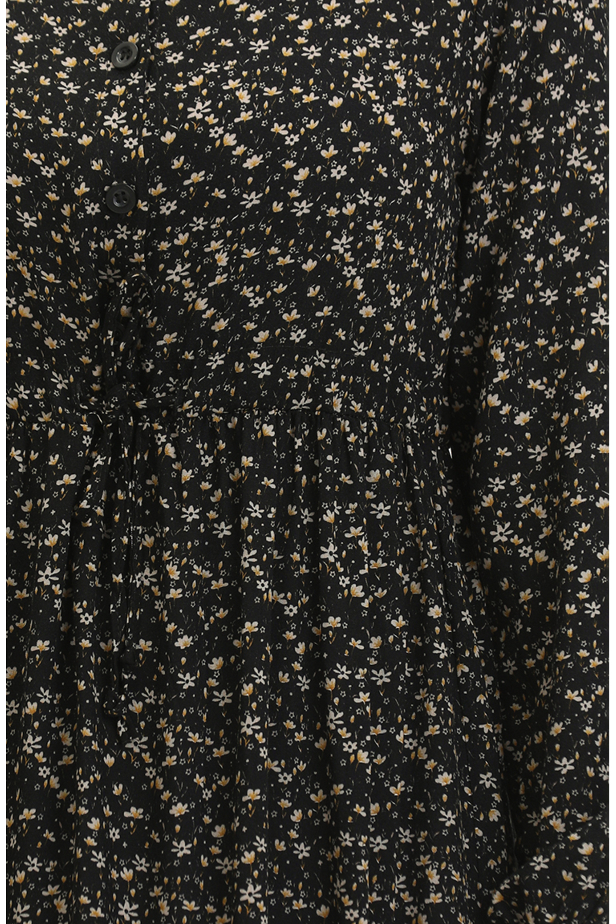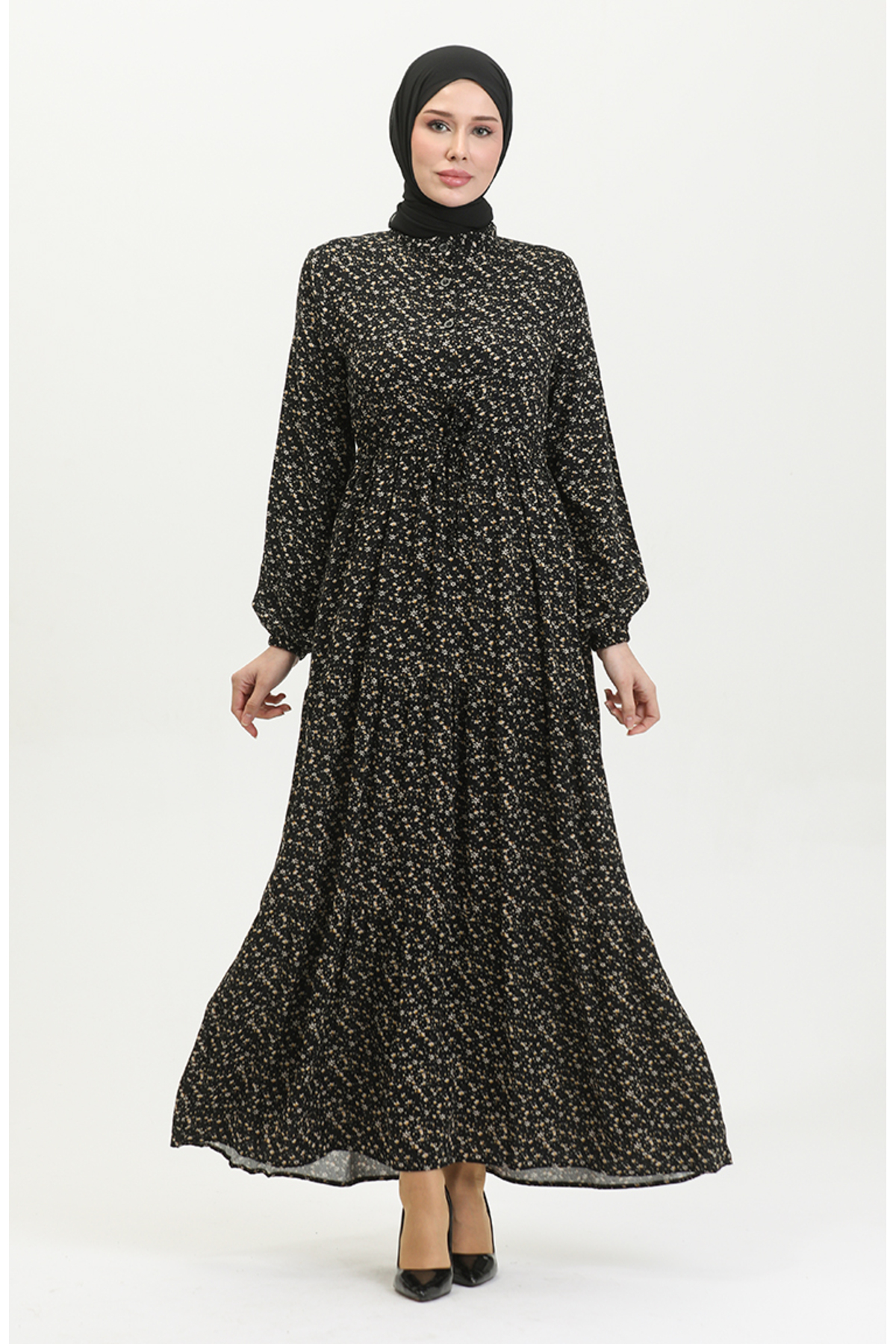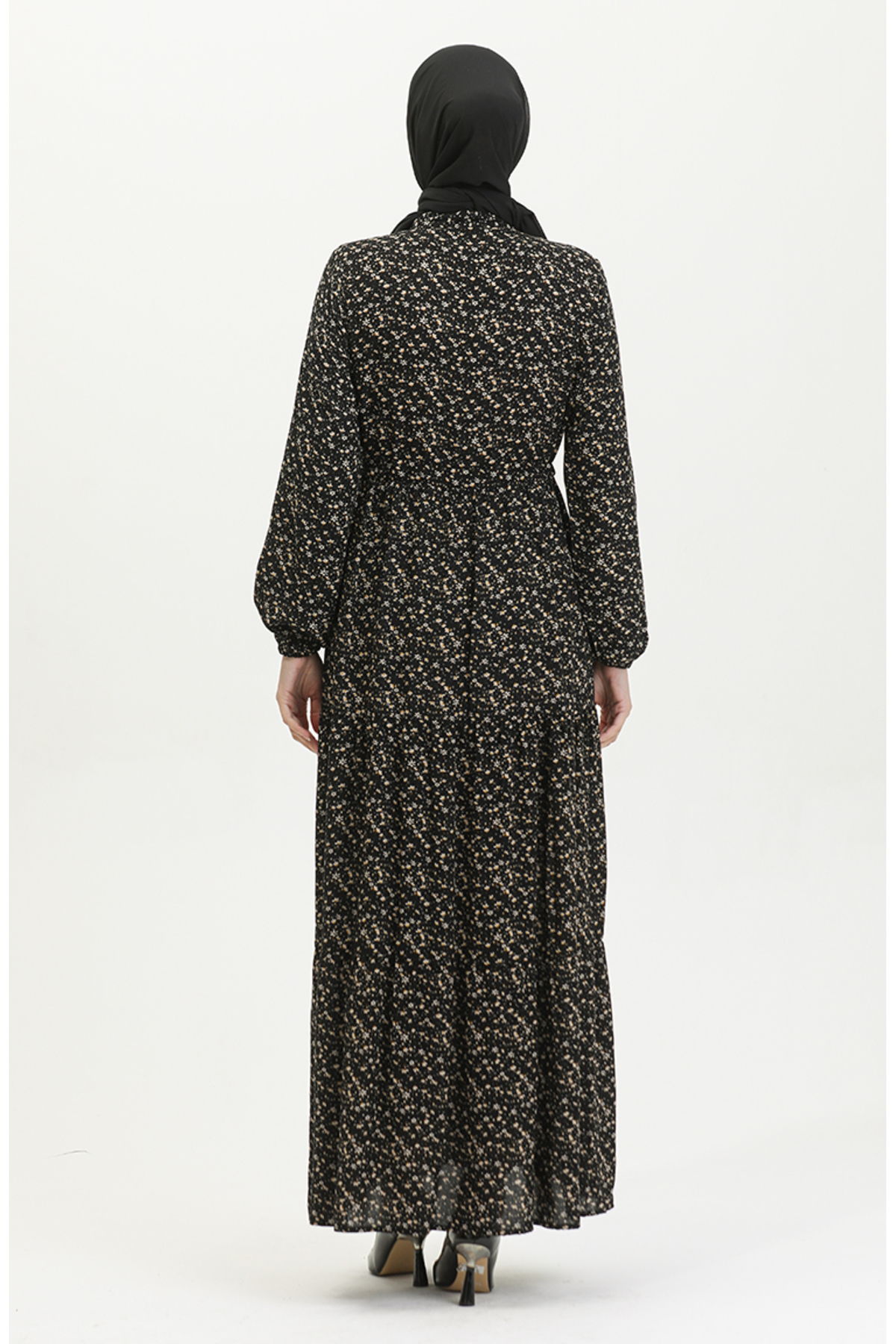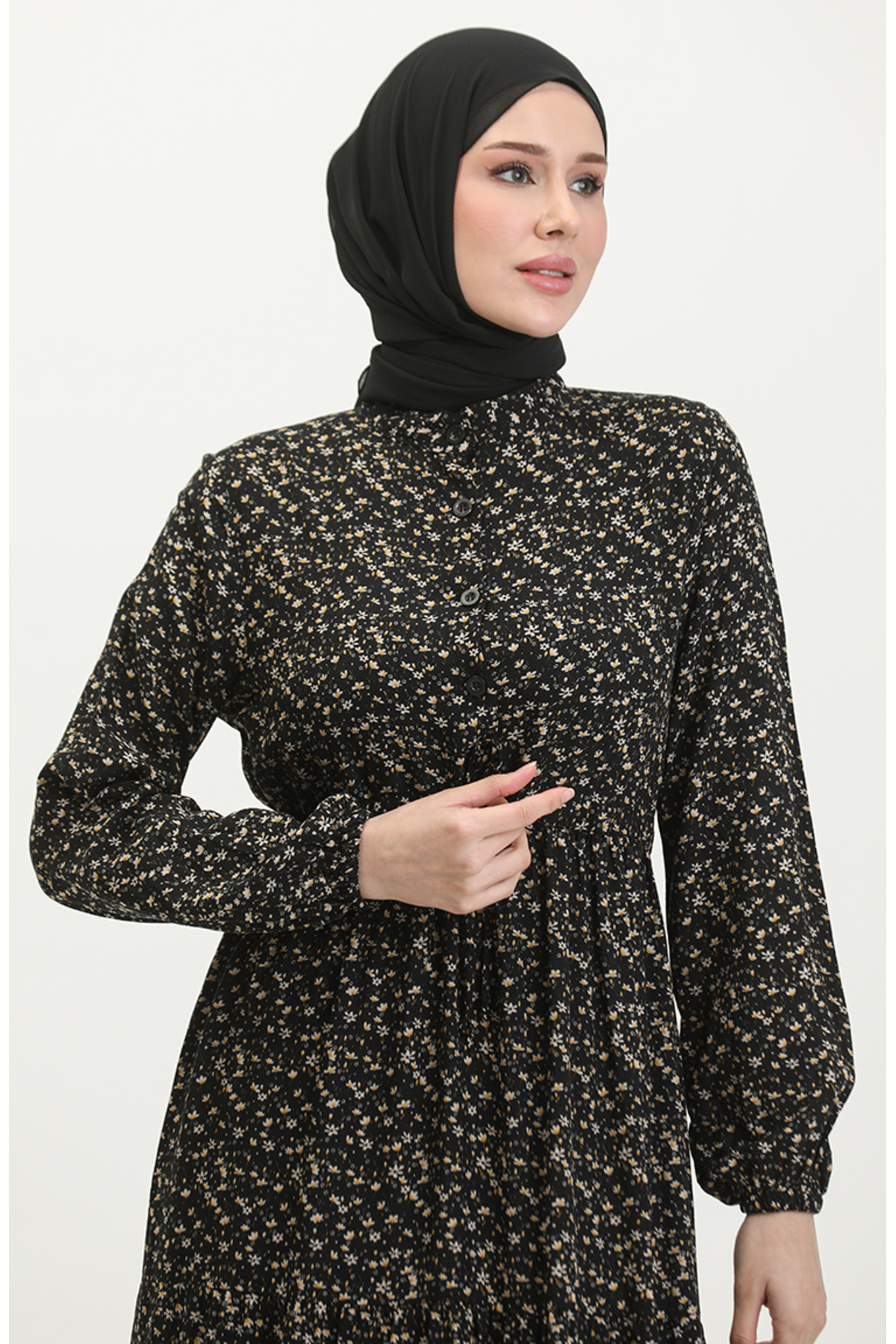 از ویژگیهای بارز این پیراهن، طراحی گلدار آن است که به شکلی دلنشین و جذاب، زیبایی را به آن افزوده است. طرح گلها به گونهای انتخاب شده که نه تنها به جلوه بصری پیراهن میافزاید بلکه باعث میشود شما در جمعها و مهمانیها به چشم بیایید. رنگ مشکی این پیراهن باعث میشود که به راحتی با سایر لباسها و اکسسوریها ترکیب شود و شما بتوانید یک استایل متناسب و هماهنگ ایجاد کنید.