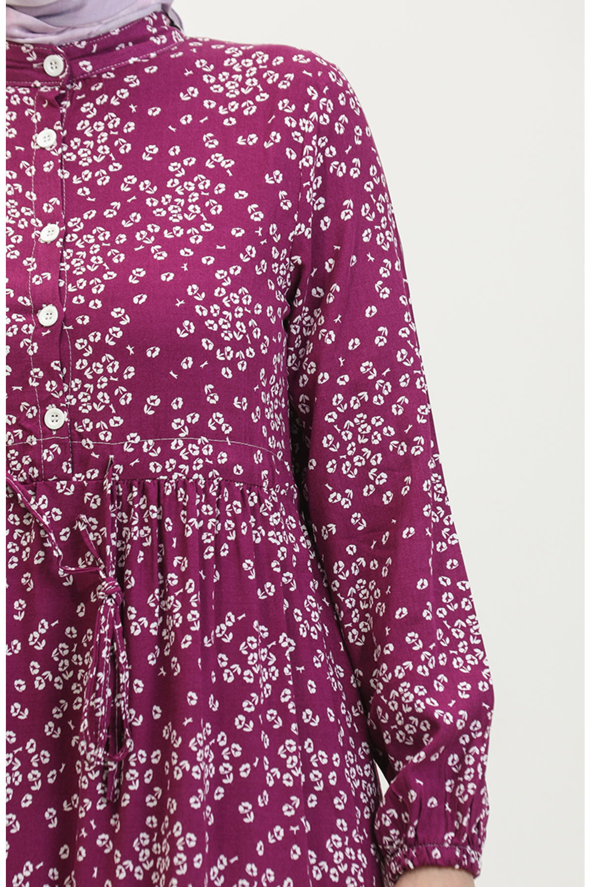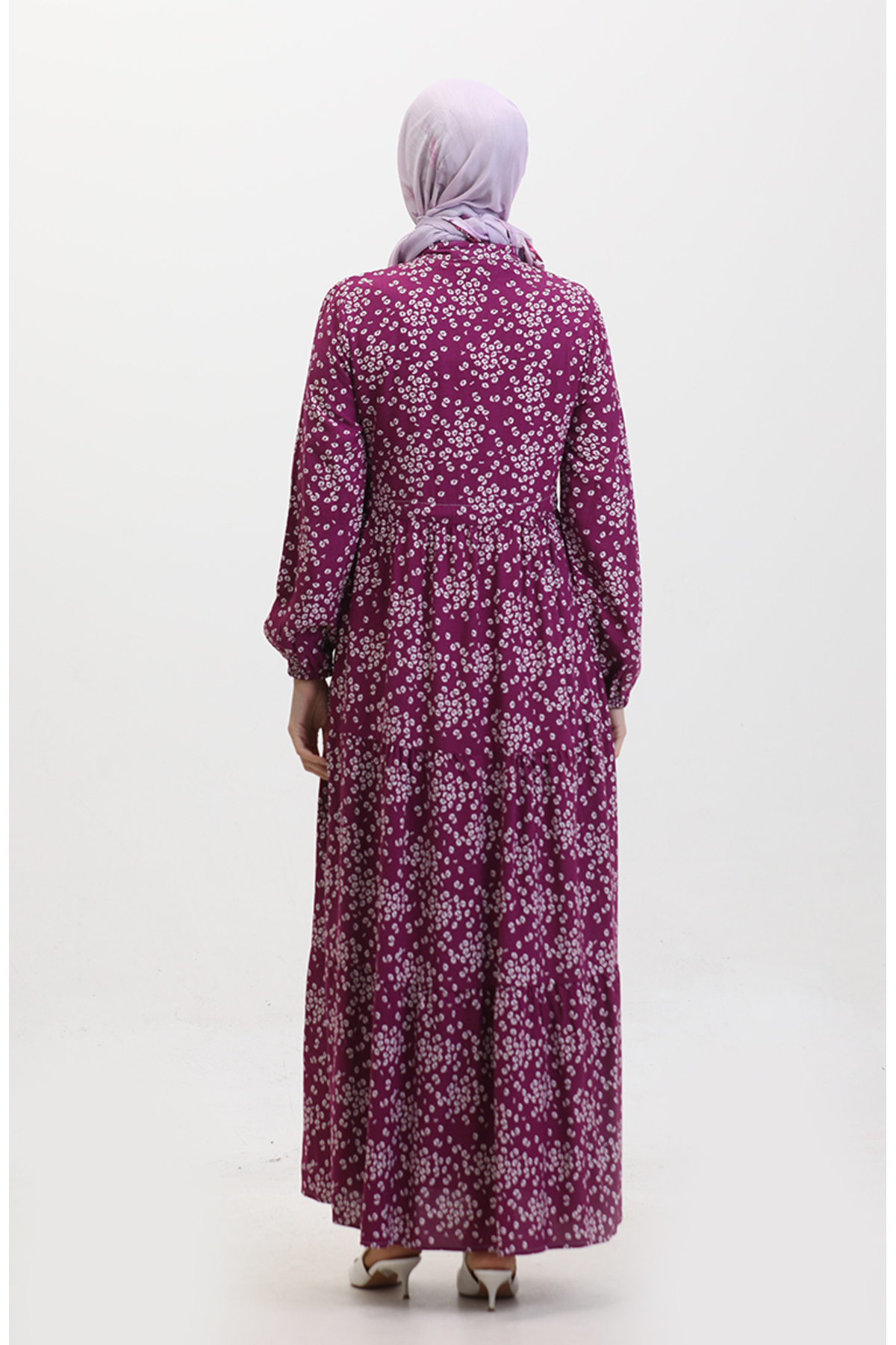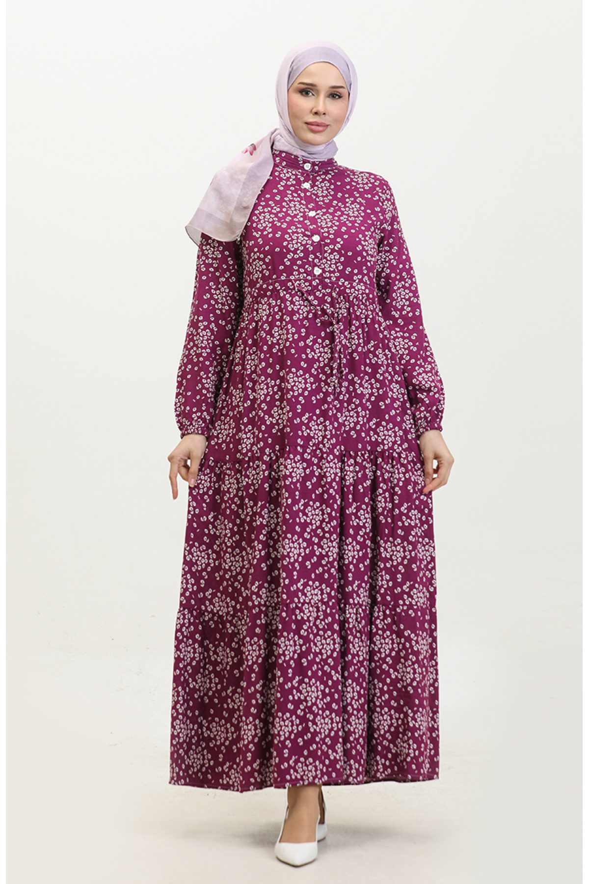 طراحی گلدار این لباس، به خوبی با رنگ موف تیره هماهنگ شده است و به شما این امکان را میدهد که در محیطهای مختلف، چه برای مهمانیها و چه برای استفاده روزمره، به راحتی از آن بهرهمند شوید. الگوهای گلدار نه تنها زیبایی چشمنوازی دارند، بلکه به فردی که آن را میپوشد، احساس شادابی و طراوت منتقل میکنند.
