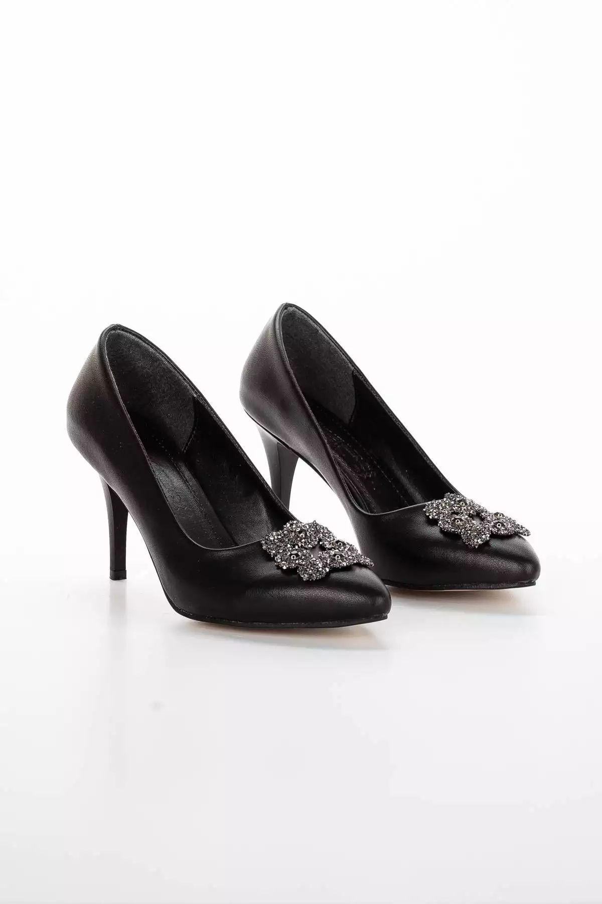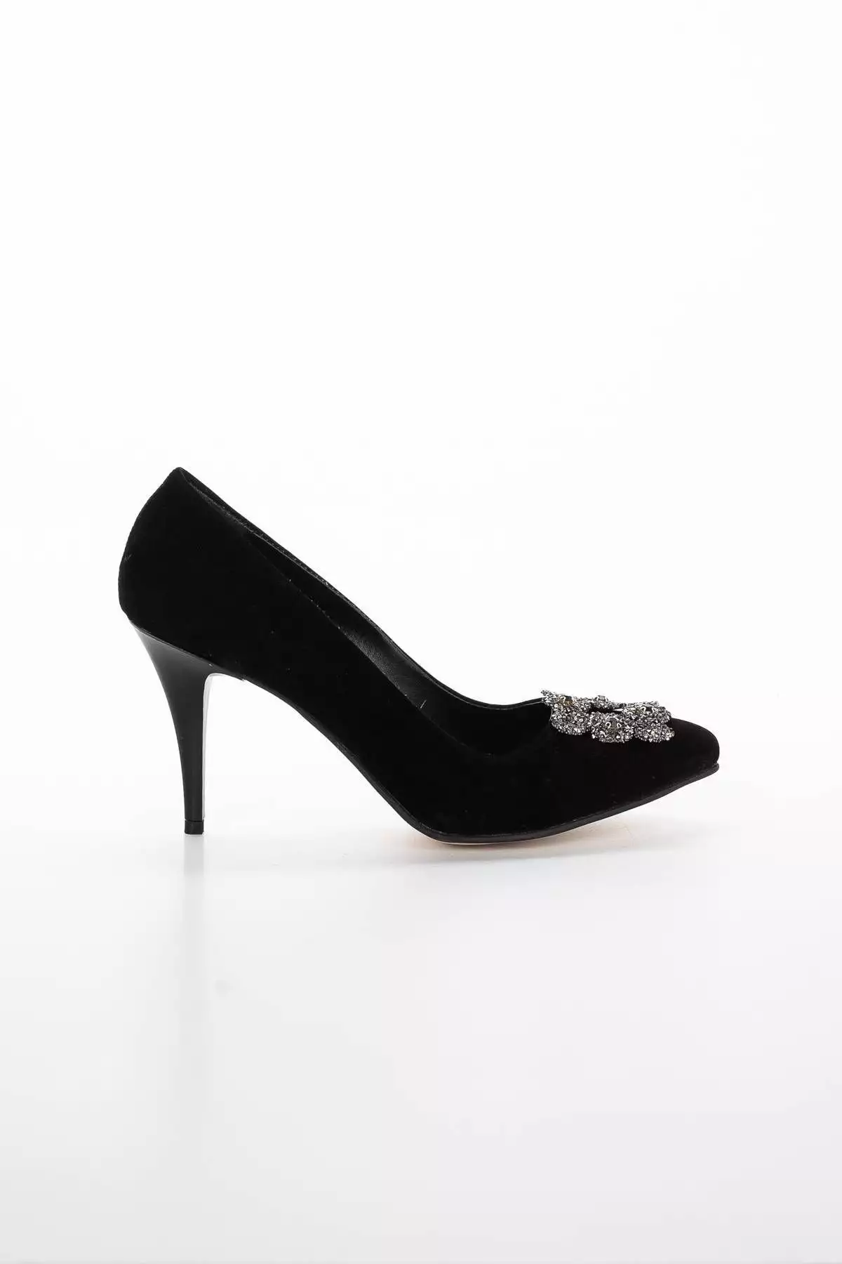 پیراهن زنانه با پاشنه 7 سانتی متر، مشکی مات و دارای جزئیات سنگی با ست کلاچ و کفش پاشنه بلند مدل استیلتو برند GULT - 359581040