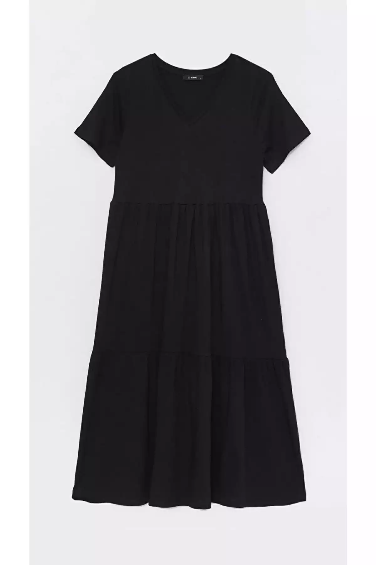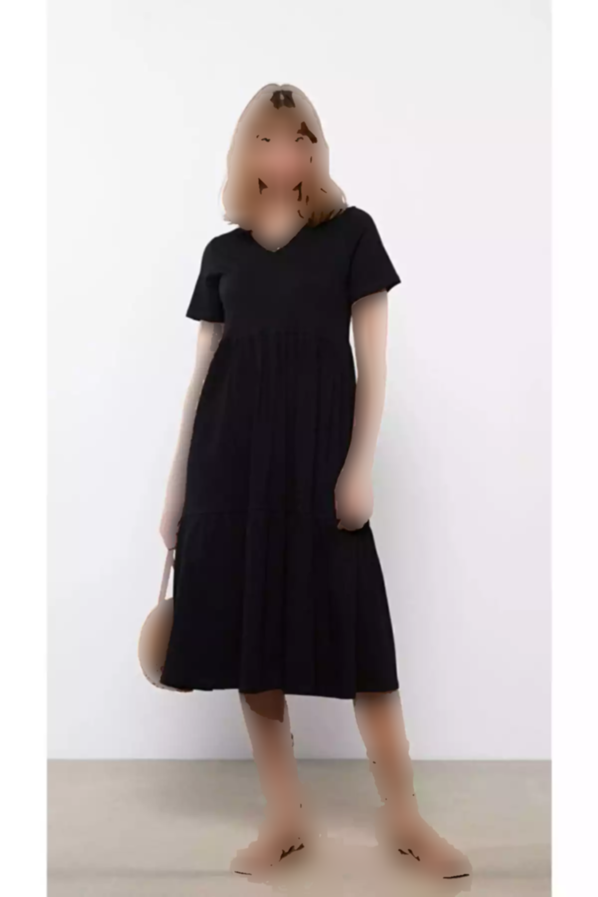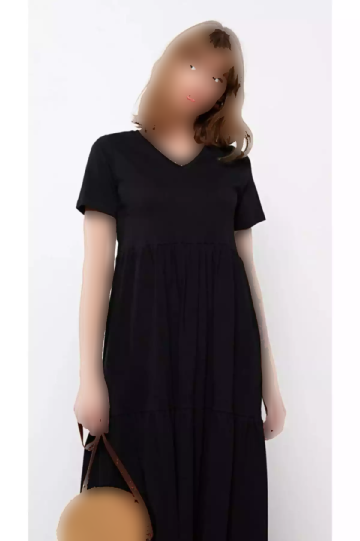 یکی از ویژگیهای بارز این لباس، یقه V شکل آن است که به زیبایی و جلوه ظاهری آن افزوده است. یقه V کمک میکند تا گردن و صورت شما بهتر نمایان شود و با ایجاد ظاهری کشیده و زیبا، شما را بیشتر از همیشه دلنشین نشان میدهد. همچنین، بلندی آستینها و طراحی کوتاه آن باعث راحتی بیشتر در پوشش میگردد و به شما امکان میدهد در فصول گرم سال از آن استفاده کنید.