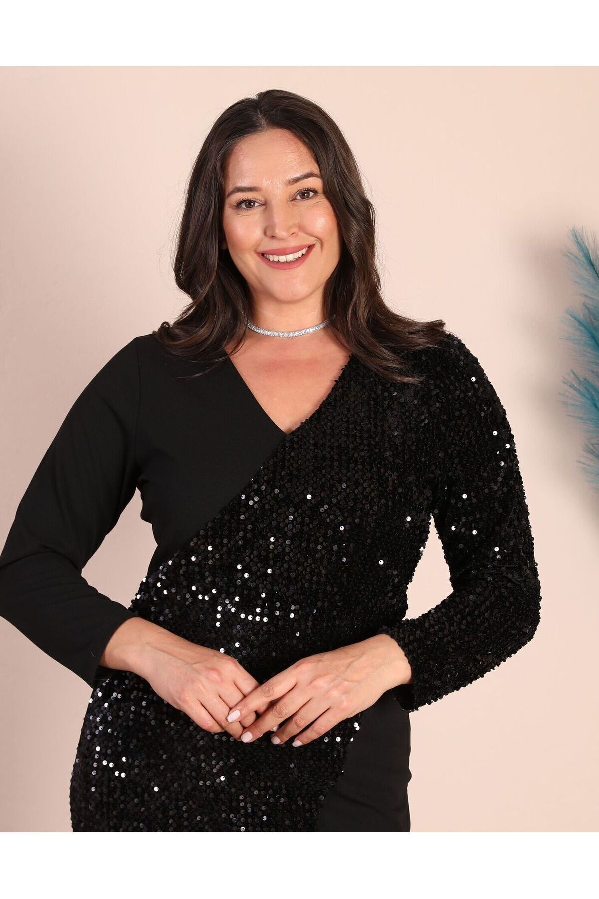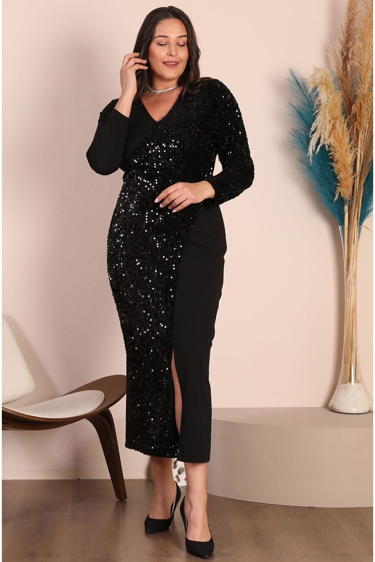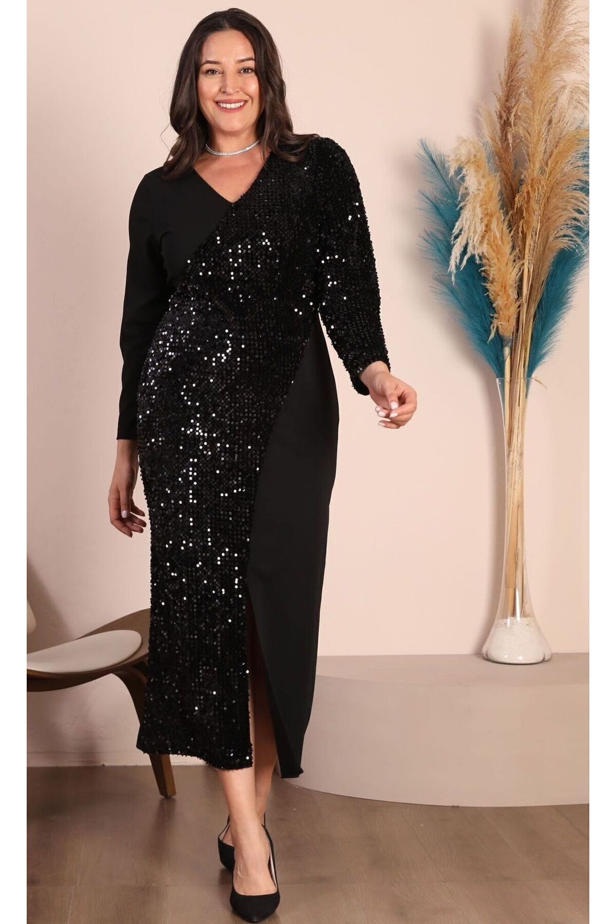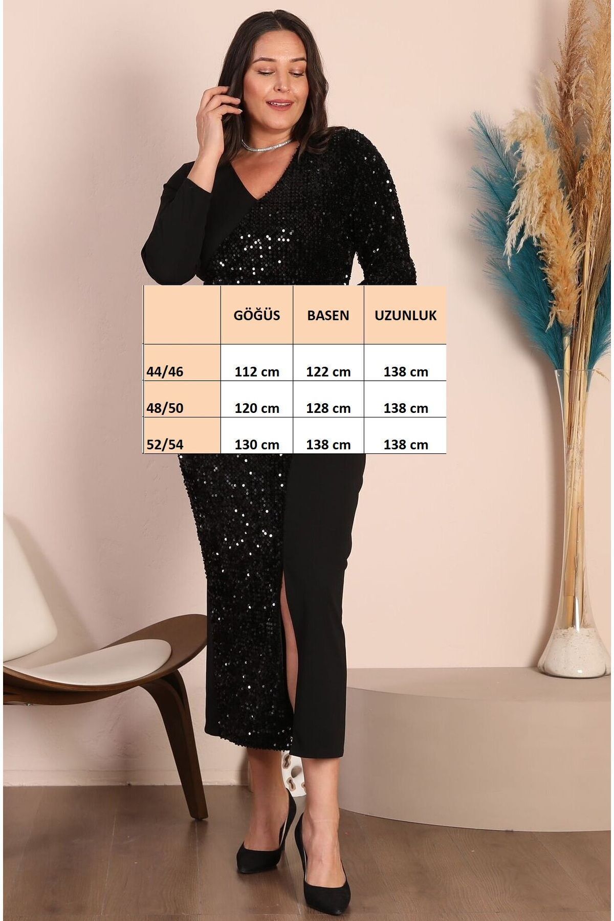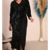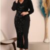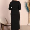 پیراهن ماکسی مجلسی با یقه کراواتی، آستری برجسته، برش جلو، انعطافپذیر و سایز بزرگ زنانه برند For Big Trend