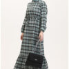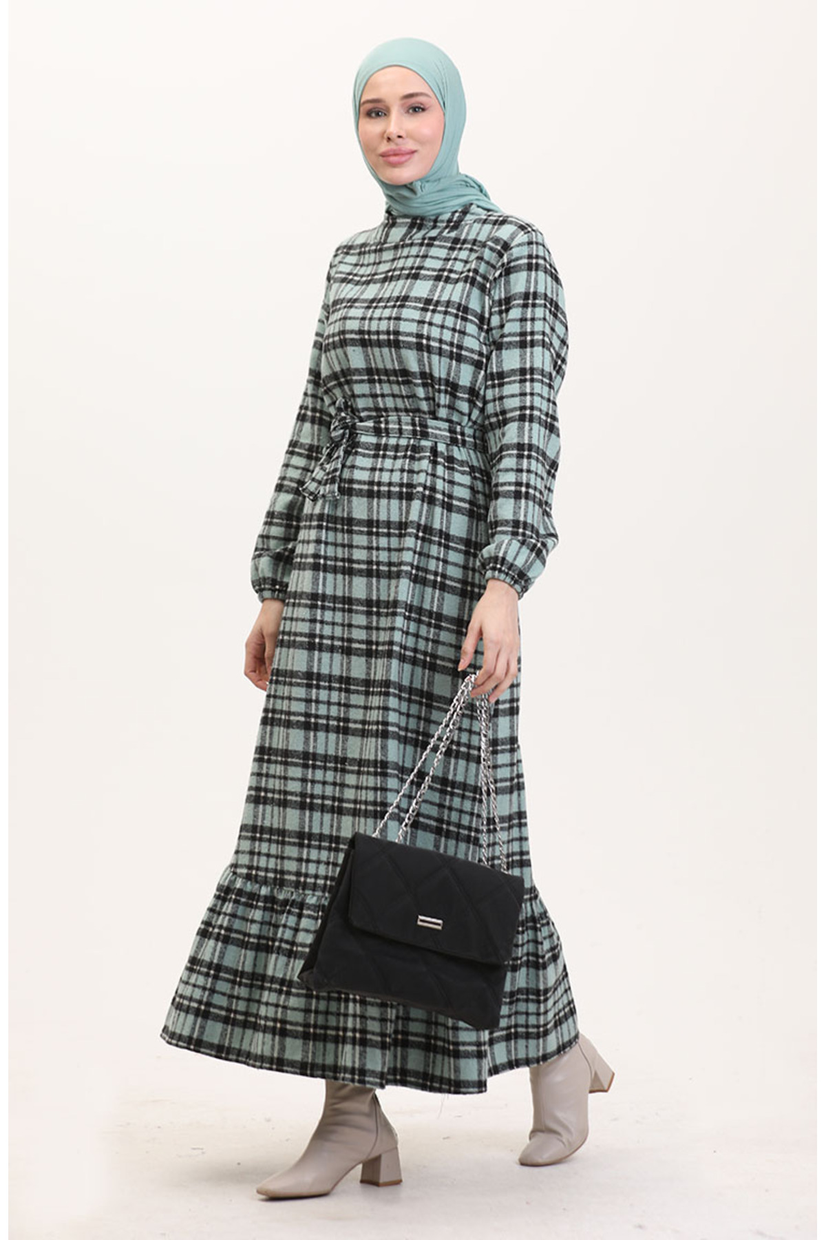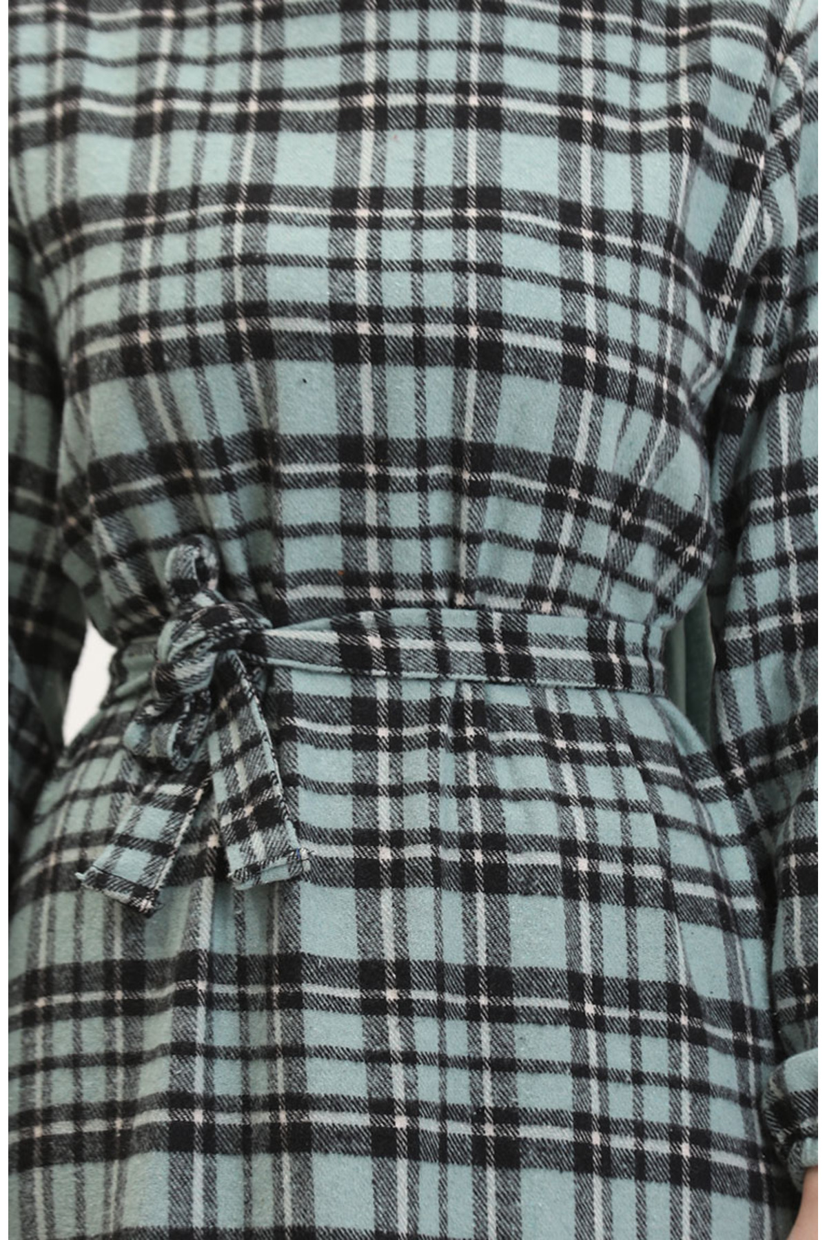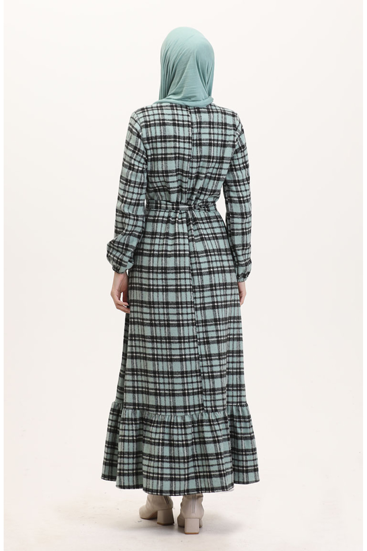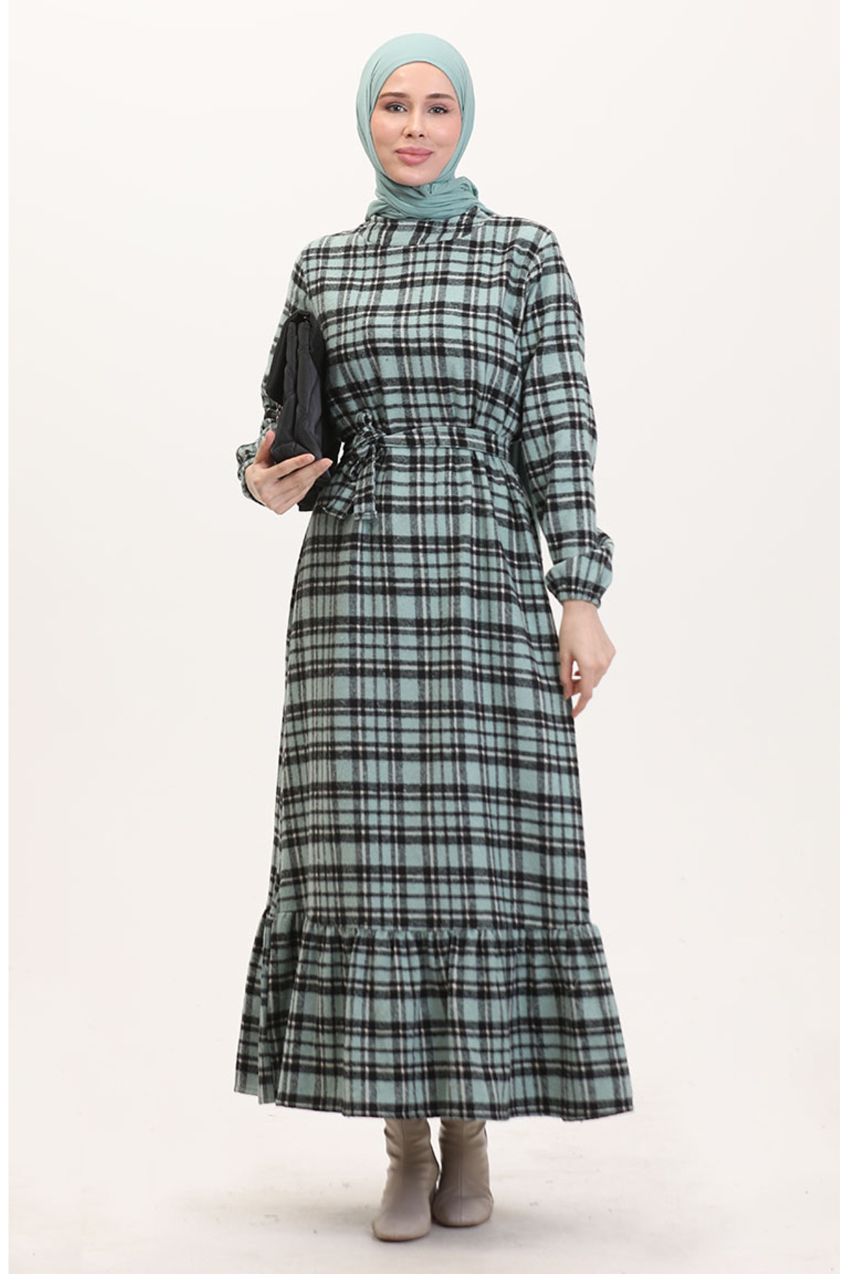 پیراهن سبز با کمربند از پارچه نازک 0561-01 کد 1743435614