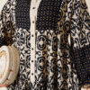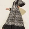 جزئیات طراحی این لباس به دقت بررسی شدهاند تا علاوه بر زیبایی، راحتی و استحکام نیز در آن لحاظ شود. نوارهای کشی و دوختهای محکم در این لباس به آن زیبا و پایدار بودن هر چه بیشتر یافته است. همچنین، طرح منحصر به فرد کرم روی زمینه مشکی نه تنها کسل کننده نیست، بلکه جلوهای هنری و منحصر بفرد ایجاد میکند.