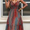 یقه V این پیراهن به زیبایی گردن را نمایان میکند و ظاهری زیبا و لطیف به تلاشهای شما در انتخاب لباس میبخشد. بندهای دار این پیراهن به شما این امکان را میدهند که آن را به راحتی بر اساس نیاز خود تنظیم کنید. این ویژگی نه تنها از نظر راحتی اهمیت دارد بلکه باعث میشود تا پیراهن بهتر به فرم بدن شما نشسته و جلوهای جذابتر پیدا کند.