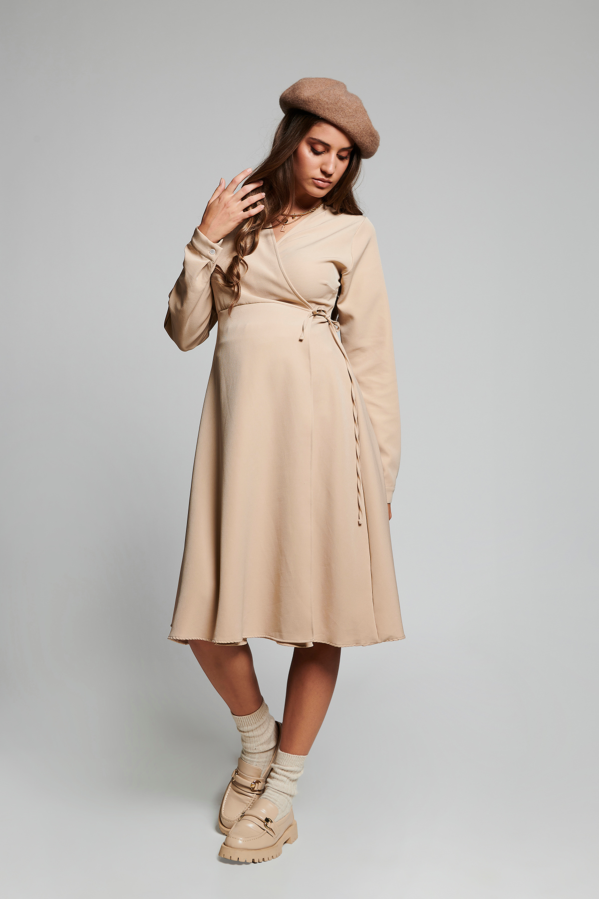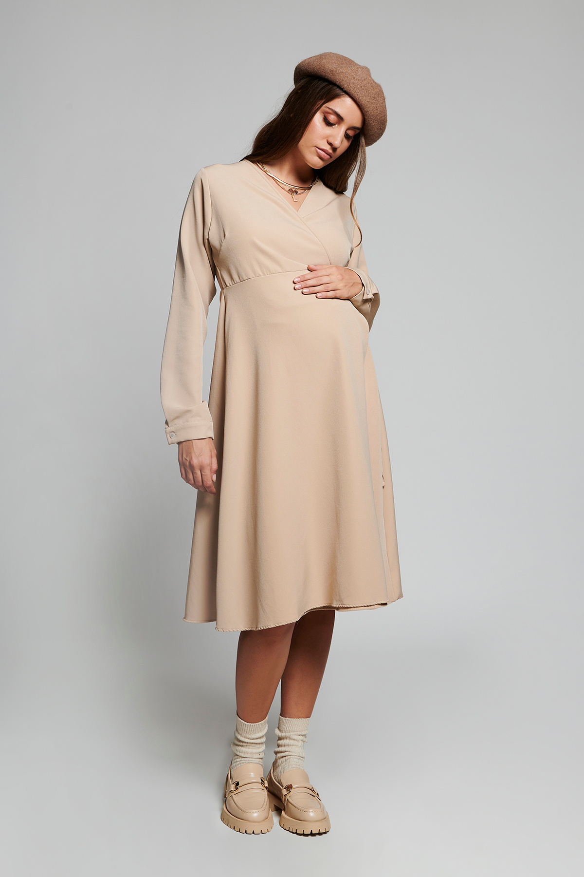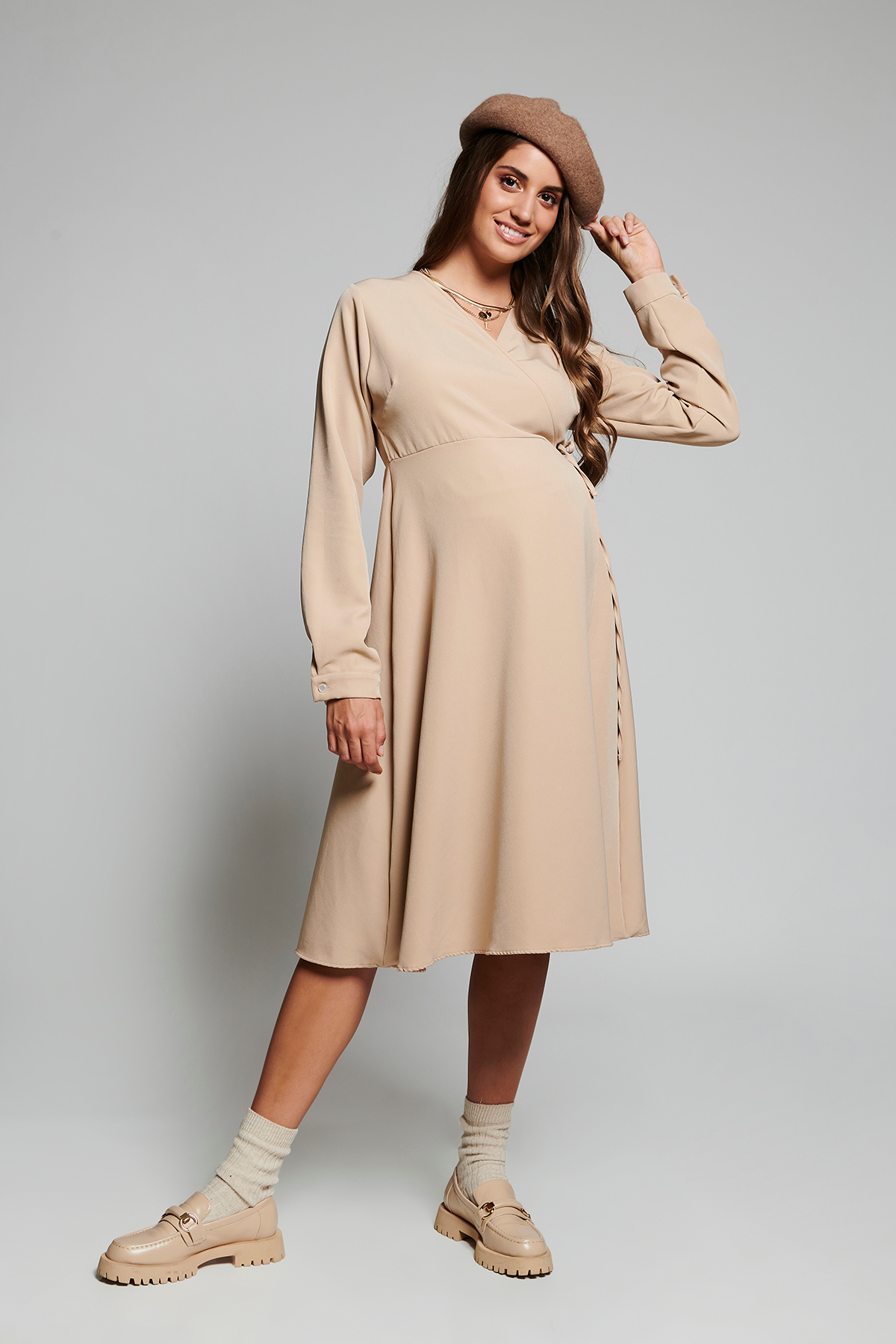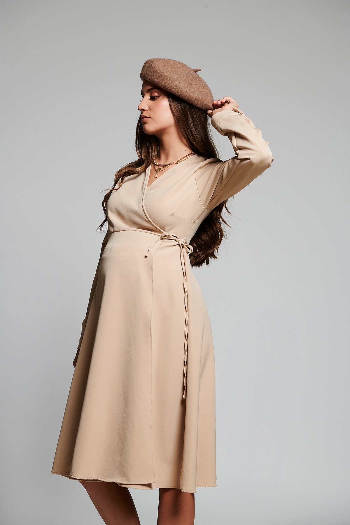 پیراهن گرهدار بژ بارداری با کیفیت عالی و رنگ زیبا و طرح شیک و قیمت باورنکردنی ساخت برند Lyn Mama را از فروشگاه اینترنتی فیزا خریداری کنید.