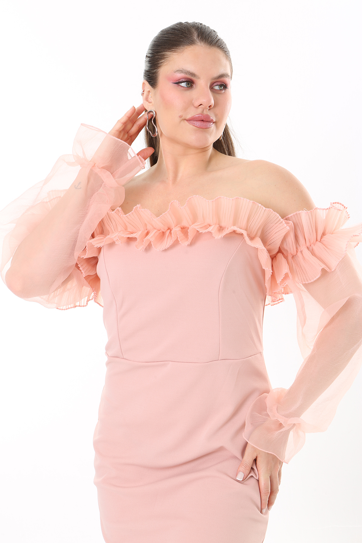 از ویژگیهای برجسته این لباس میتوان به یقه و آستینهای ارگانزا اشاره کرد. یقه این لباس به خوبی بر روی گردن نشسته و جلوهای خاص به تولید میدهد. آستینهای ارگانزا نیز با لطافت و ظرافت خود، احساس سبکی را به ارمغان میآورند و به لباس جلوهای شیک و مد روز میبخشند. این طراحی میتواند به راحتی با انواع آرایش و اکسسوریها هماهنگ شود و انتخابهای مختلفی را برای مشتریان فراهم آورد.