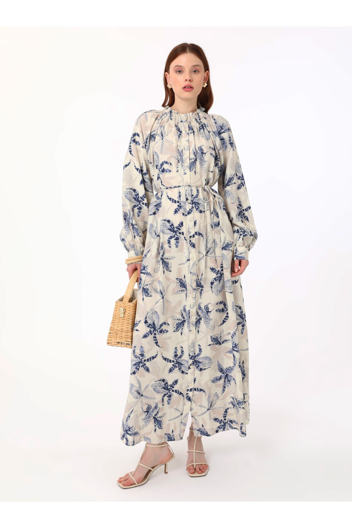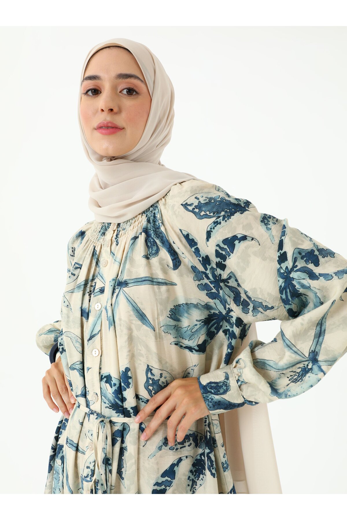 این لباس از پارچههای با کیفیت بالا طراحی شده است که علاوه بر زیبایی ظاهری، دوام و راحتی را نیز به ارمغان میآورد. پوشش این لباس به گونهای است که مناسب تمام فصول میباشد و میتوان آن را در انواع مختلف موقعیتها، از گردهماییهای رسمی تا استفاده روزمره پوشید. جزئیات طرح دار بر روی آن، جلوهای شیک و خاص به آن داده و هر خانمی را شگفتزده میکند.