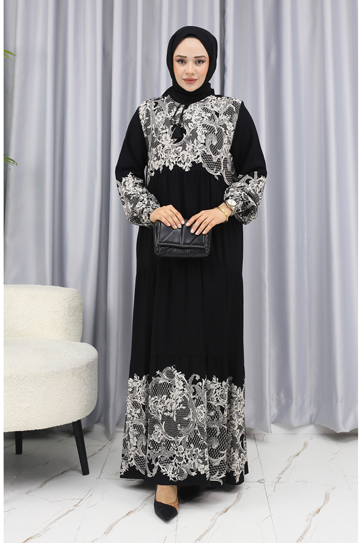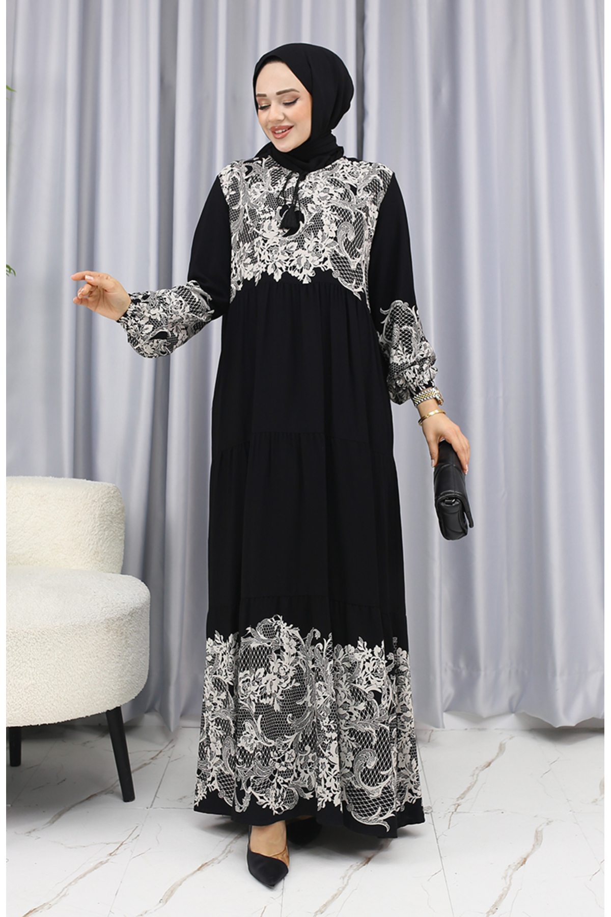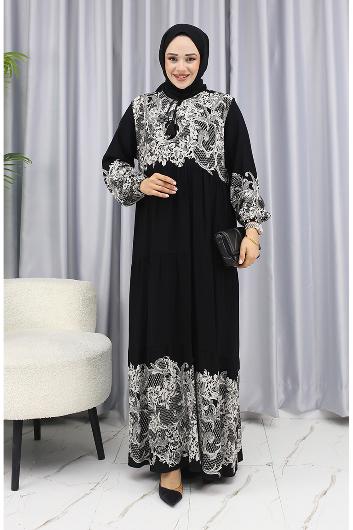 طراحی مدرن و خاص این لباس، آن را به یک انتخاب بینظیر برای افرادی که به دنبال منحصر به فرد بودن هستند، تبدیل کرده است. الگوهای هندسی و طرحهای خاص این لباس بهخوبی با رنگهای سیاه و سفید ترکیب شده، که این امر جلوهای شیک و مدرن به آن میدهد. این طراحی خاص باعث میشود شما در هر مکانی که حضور دارید، نظرها را به سوی خود جلب کنید.