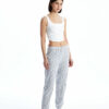 طراحی کمر کشی این شلوار، باعث میشود که شلوار به راحتی و با تناسب کامل بر روی بدن بنشیند. این ویژگی به شما این امکان را میدهد که در طول روز و شب به راحتی حرکت کنید و هیچ گونه احساس ناراحتی نداشته باشید. همچنین، طراحی نمایشی و زیبا بر روی پارچه، ظاهری شیک و مدرن به شلوار بخشیده که میتوانید با آن در خانه یا حتی به عنوان یک پوشش غیررسمی در بیرون از منزل نیز استفاده کنید.