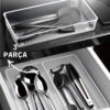 این سازماندهنده دارای سه بخش مجزا است که به شما امکان میدهد هر نوع وسیلهای را بهطور جداگانه و منظم درون کشو قرار دهید. این طراحی هوشمندانه باعث میشود که هر وسیله در دسترس باشد و شما بتوانید به راحتی و بدون سردرگمی آنها را پیدا کنید. همچنین، با جدا کردن قاشقها، چنگالها و چاقوها، احتمال بروز آسیب و خطا نیز کاهش مییابد.