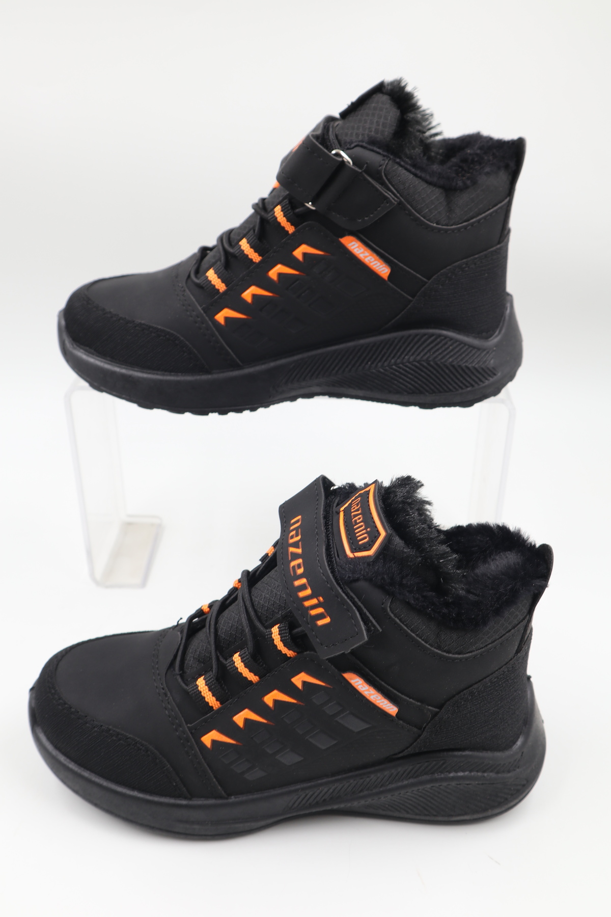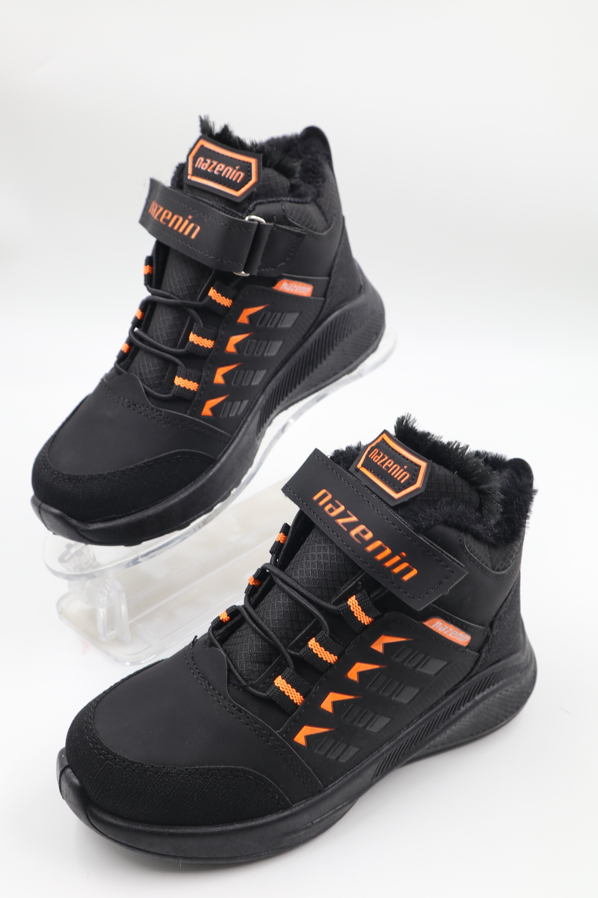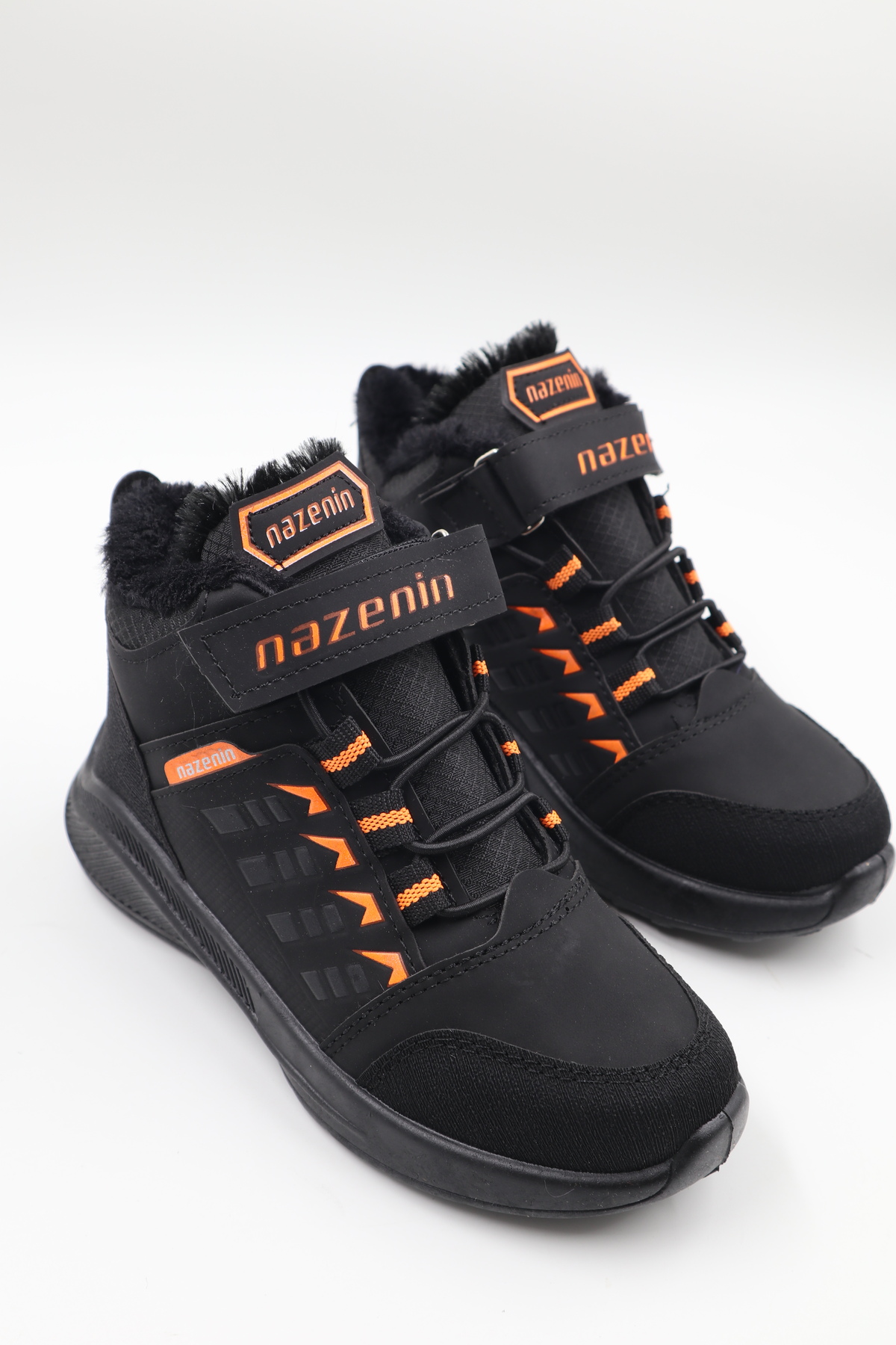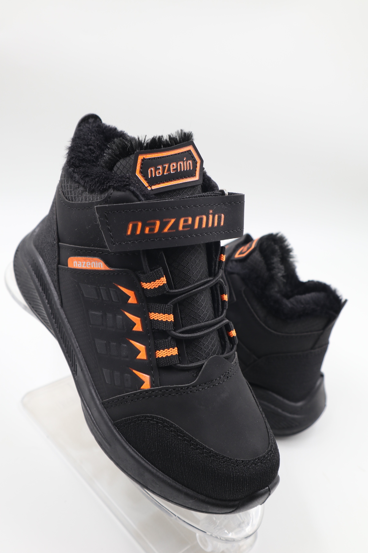 چکمه روزمره پسرانه پشمی نارنجی و مشکی برند nazenintasarımlar