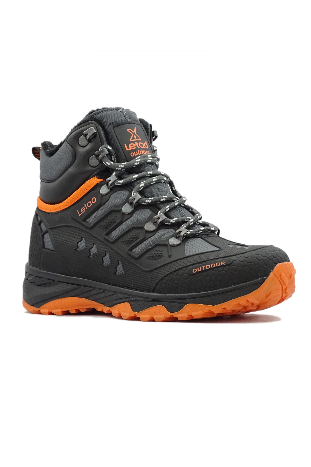 چکمه کوهنوردی مشکی نارنجی ضد آب با فریم خزدار و زیپ مردانه 8075 برند LETAO