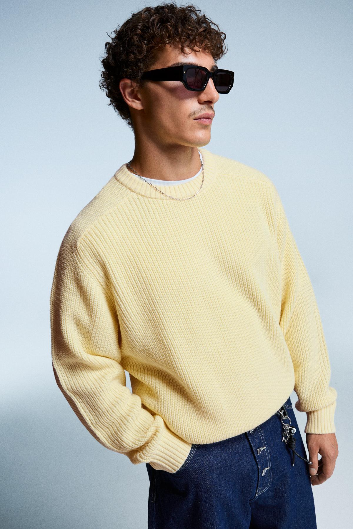 ژاکت بافتنی پشمی با نوار فیتیلهای برند Bershka