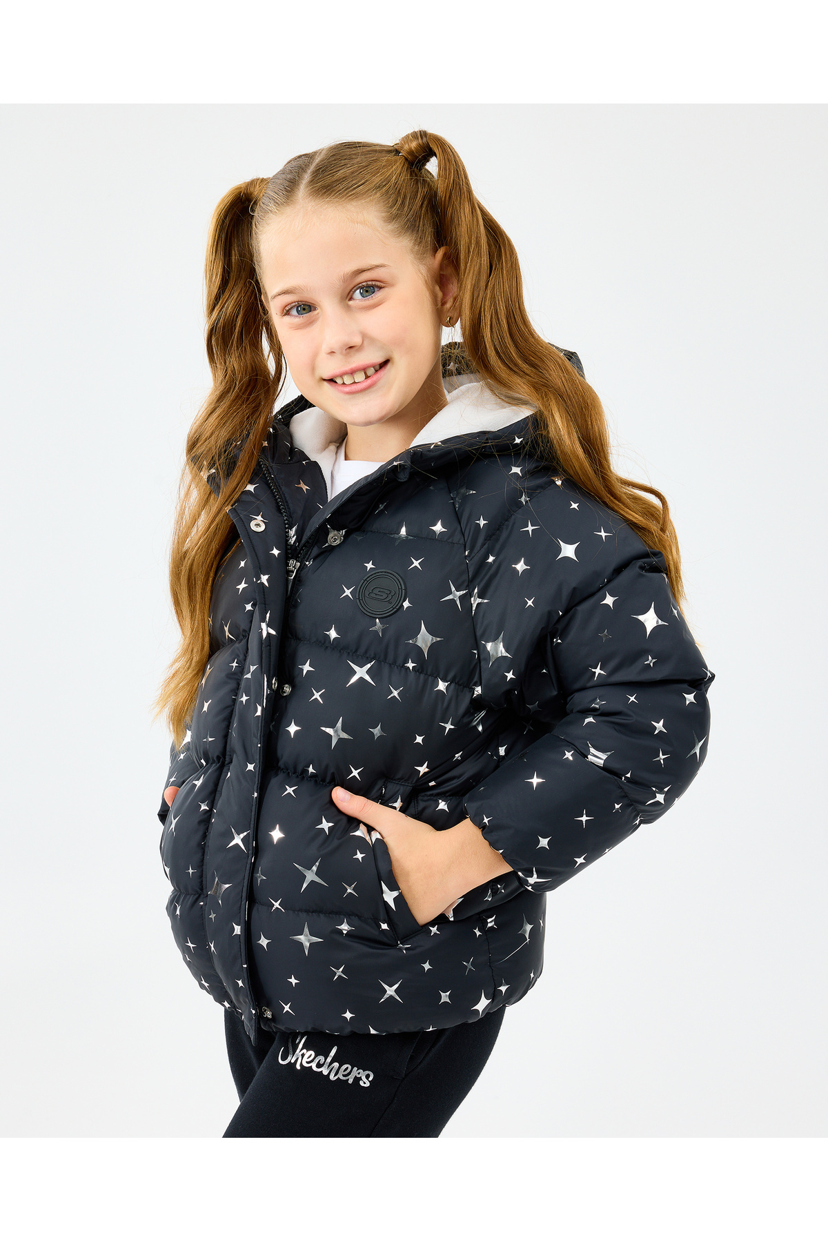 ژاکت پافر بزرگ دخترانه مشکی مدل SK2520052-1602 برند Skechers