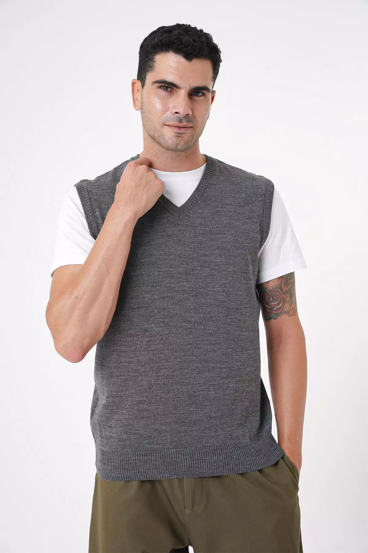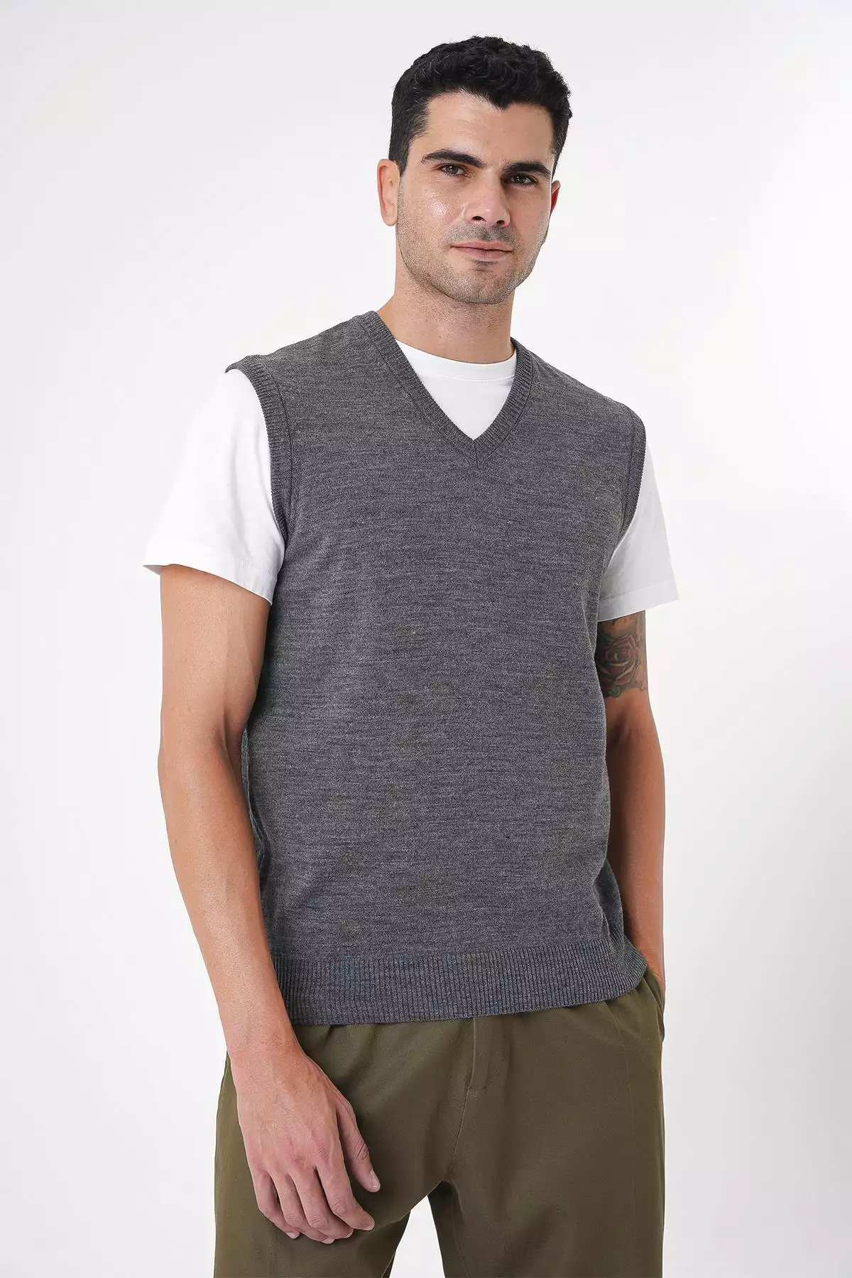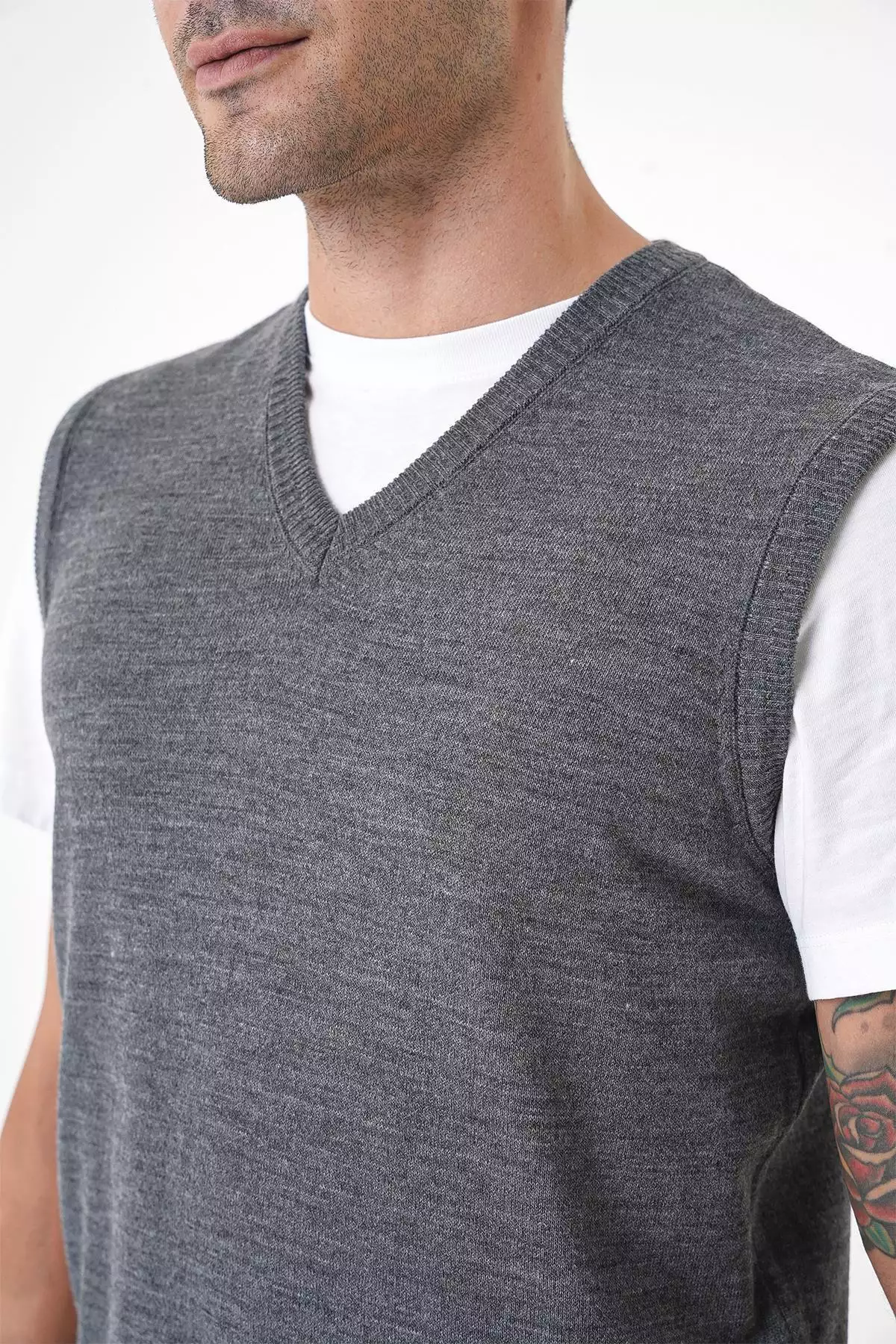 ژیله مردانه یقه V معمولی فیت رنگ آنتراسیت 25w2001 برند CHUBA