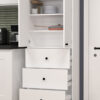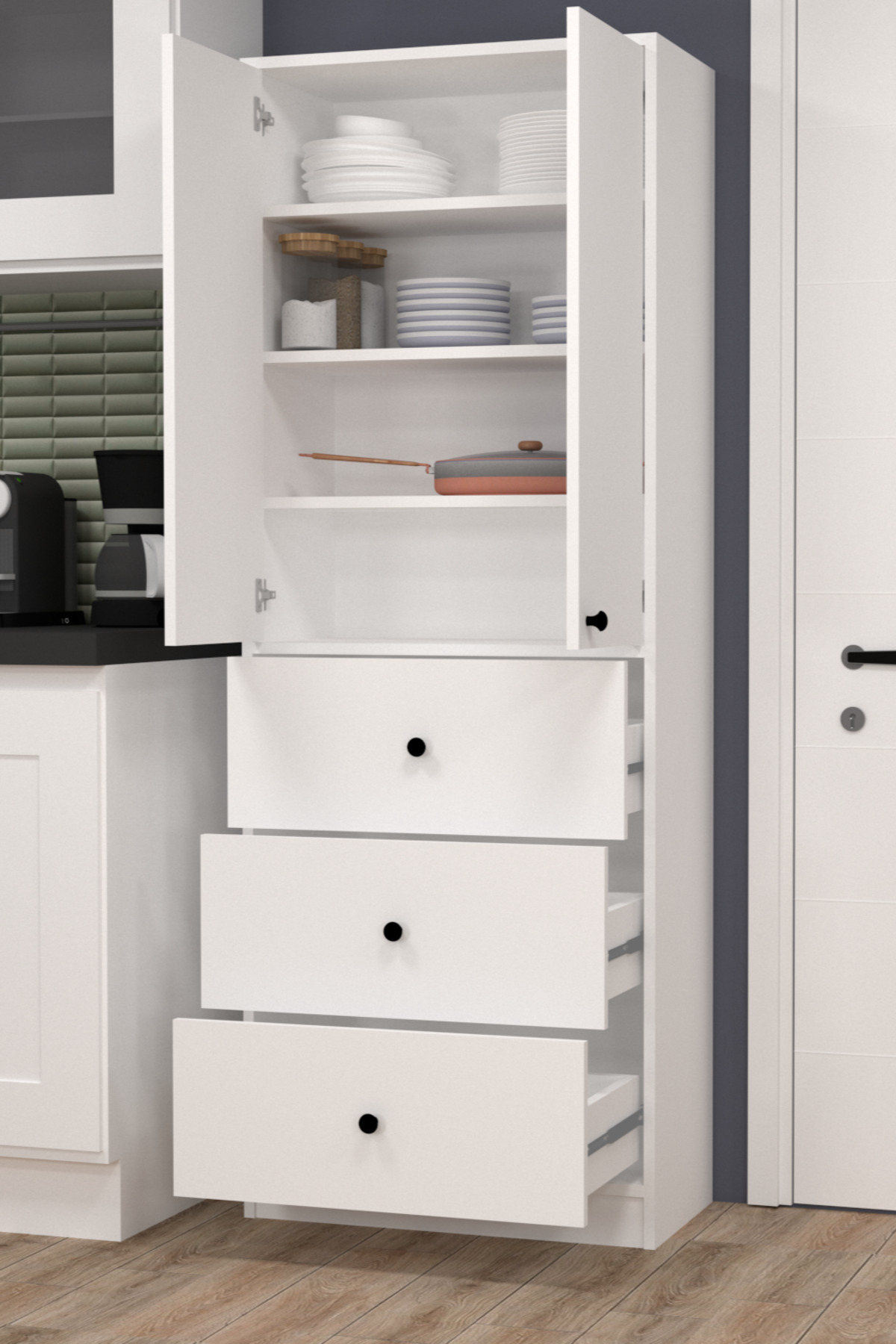 یکی از ویژگیهای برجسته کابینت گونش، طراحی دو درب آن است که امکان دسترسی آسان به فضای داخلی را فراهم میکند. دربهای این کابینت با مکانیزم نرمافزاری باز و بسته میشوند تا کاربر بتواند به راحتی و بدون زحمت به محتوای داخل کابینت دسترسی داشته باشد. همچنین، وجود سه کشو در این کابینت، فضای اضافی برای نگهداری لوازم کوچک آشپزخانه مانند قاشقوچنگال، ادویهجات و وسایل دیگر را فراهم میآورد.