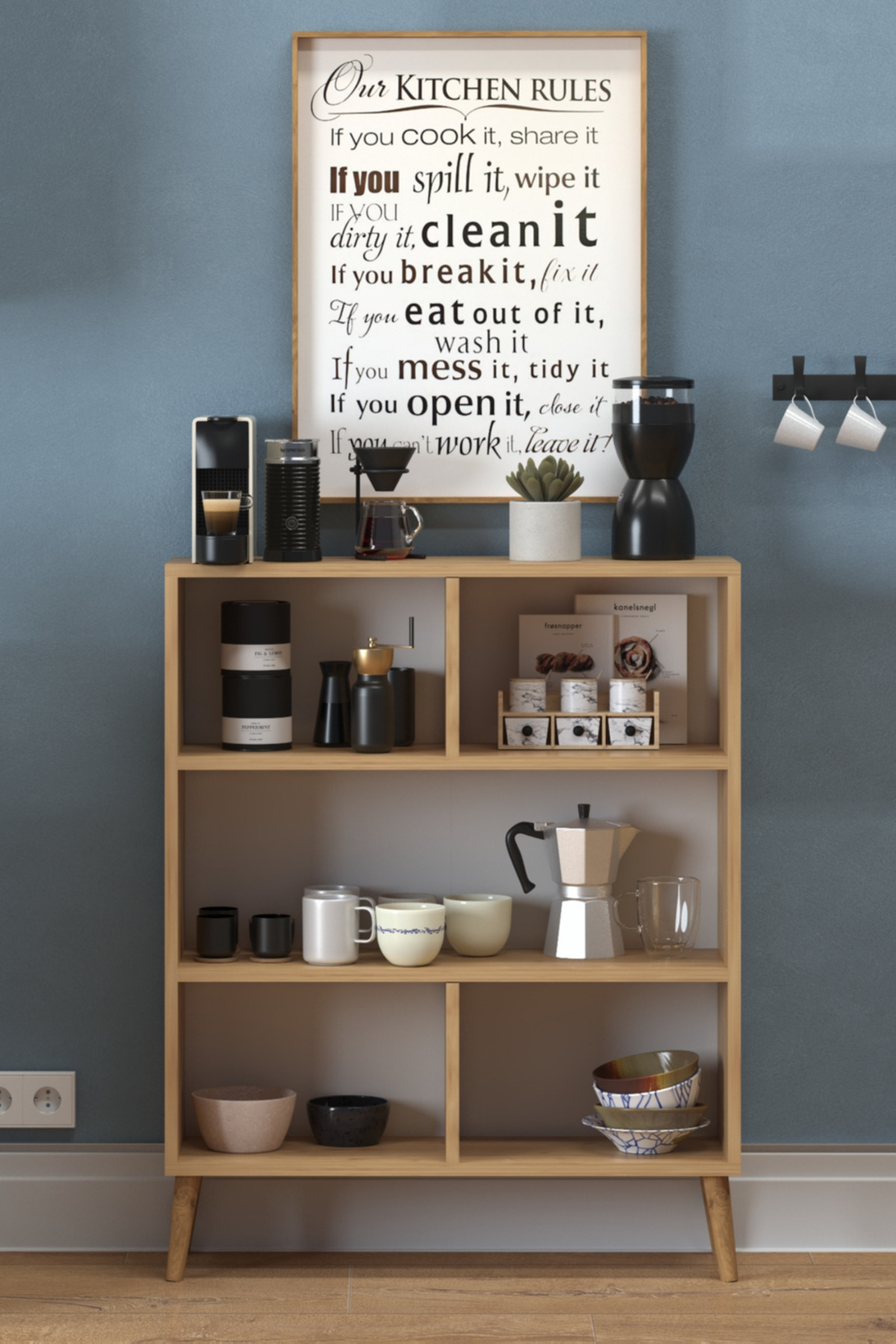 یکی از ویژگیهای بارز این کابینت، قفسههای قابل تنظیم آن است که امکان قرار دادن انواع وسایل با اندازههای مختلف را فراهم میآورد. این قابلیت، به کاربران این امکان را میدهد که از کابینت برای بسیاری از کاربریها از جمله ذخیرهسازی کتابها، لوازم تحریر، ظروف دکوری و حتی لباسها استفاده کنند. طراحی هوشمندانه قفسهها، فضای داخلی کابینت را به حداکثر میرساند و از فضای اتاق به بهترین نحو بهرهبرداری میکند.
