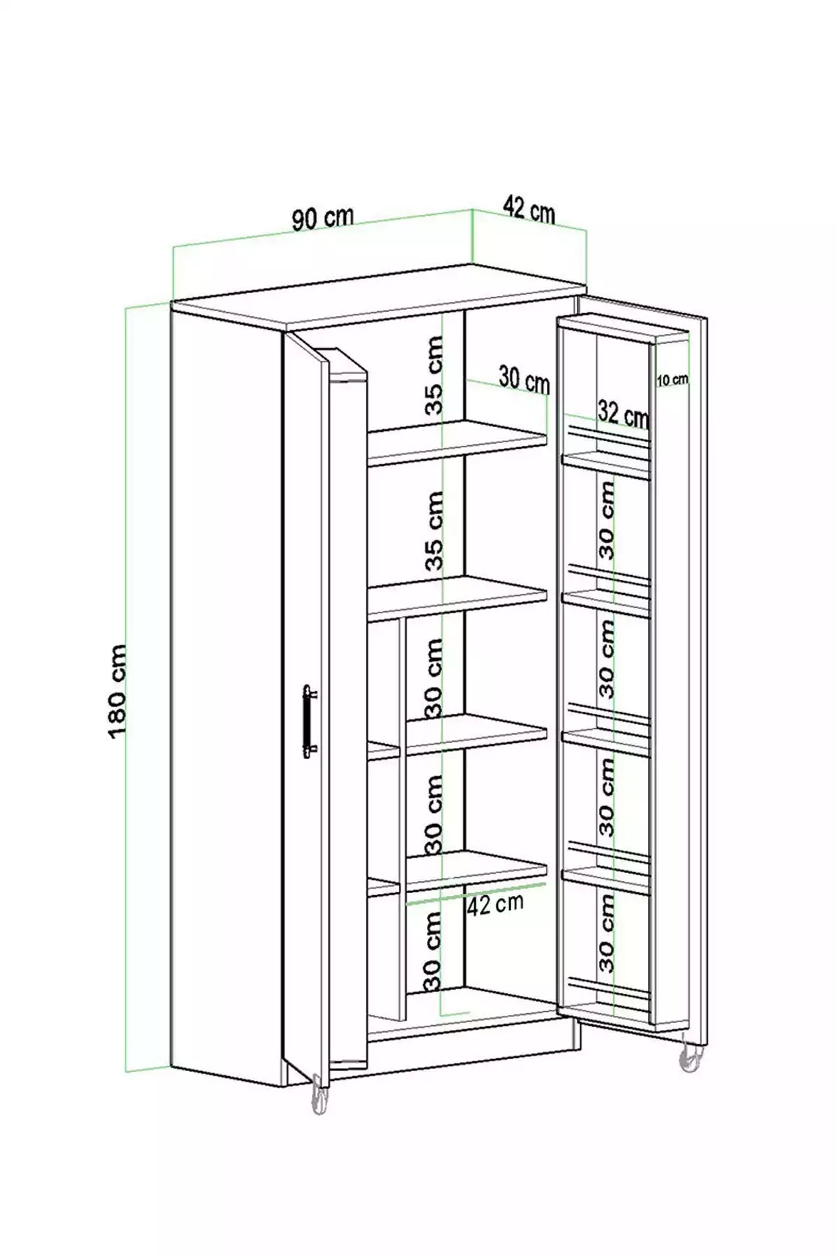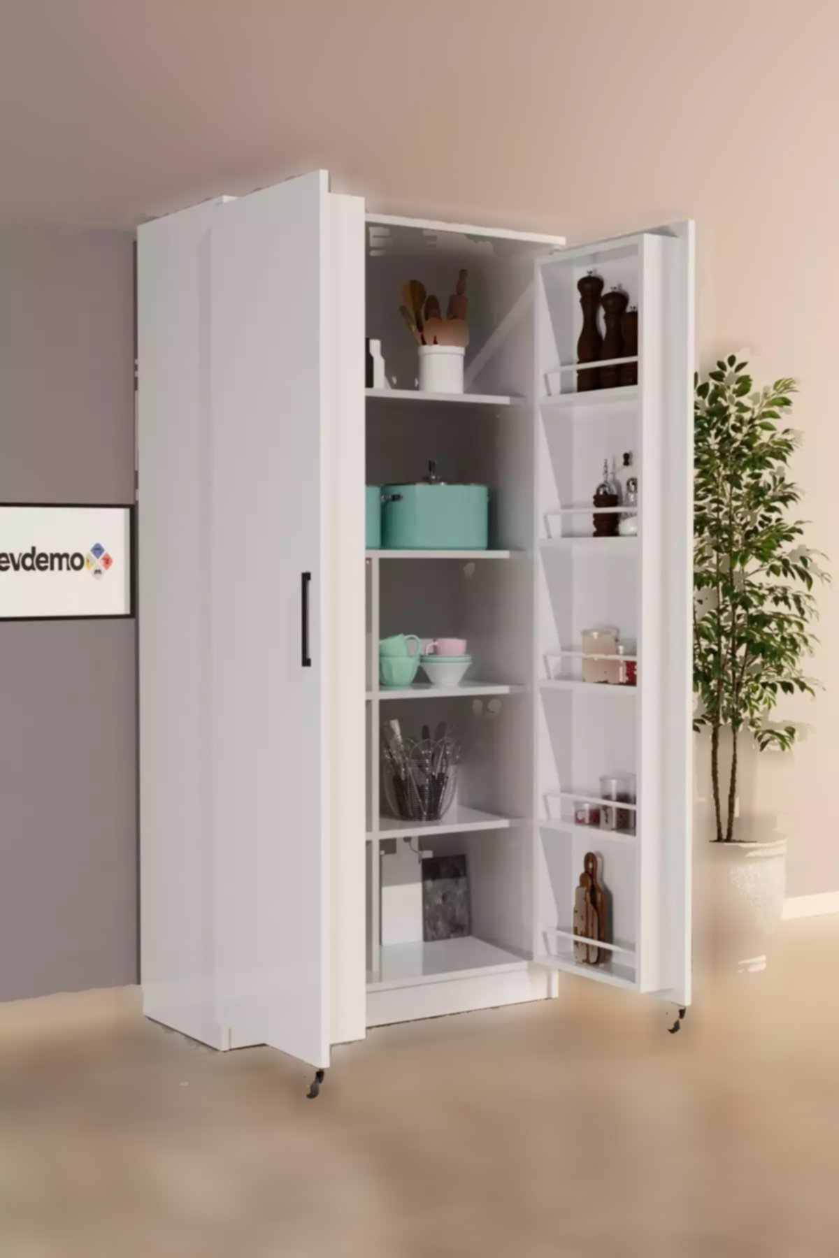 این کابینت دارای دو دره است که اجازه دسترسی آسان به مواد غذایی و اقلام آشپزخانه را فراهم میکند. با طراحی هوشمندانه و فضای داخلی مناسب، شما میتوانید همه چیز را به راحتی مرتب کنید و از جستجوی طولانیمدت برای پیدا کردن اقلام لازم خودداری کنید. علاوه بر این، فضای داخلی کابینت به گونهای طراحی شده است که میتوان از قفسهها و فضاهای مختلف برای قرار دادن ظروف، بستههای غذایی و سایر اقلام استفاده کرد.