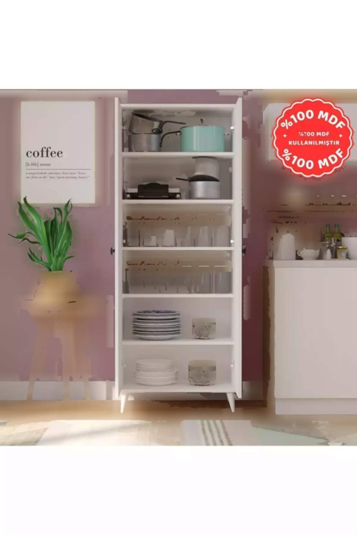 کابینت حمام آشپزخانه 100ام دی اف 5طبقه دار 2درب‎دار سفید چند کاربردی برند İMBAŞ کد 1757972531