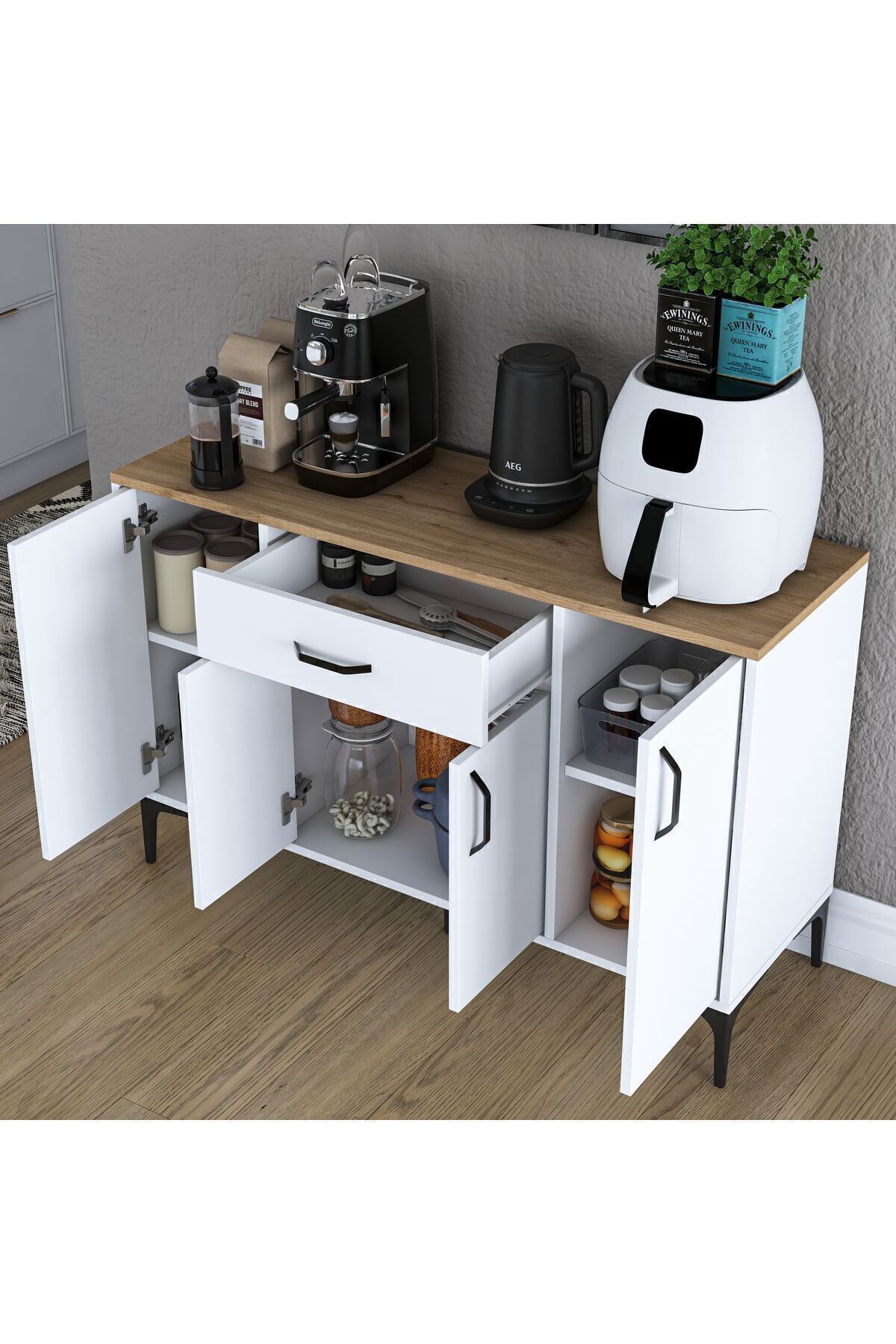 کابینت چندمنظوره ۴ درب و ۱ کشو مدل 1758361263، یک گزینه ایدهآل برای هر فضای داخلی است که به دنبال ترکیبی از زیبایی و کارایی میباشد. این کابینت با طراحی مدرن و شیک خود، به راحتی با تمام دکوراسیونهای داخلی هماهنگ میشود و قابلیت استفاده در مکانهای مختلفی همچون آشپزخانه، نشیمن، و حتی اتاق خواب را دارد. رنگ سفید و گردوی سیر این محصول، به فضای شما جلوهای تازه و دلانگیز میبخشد.