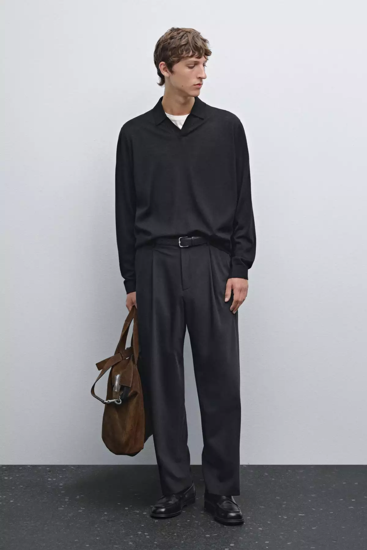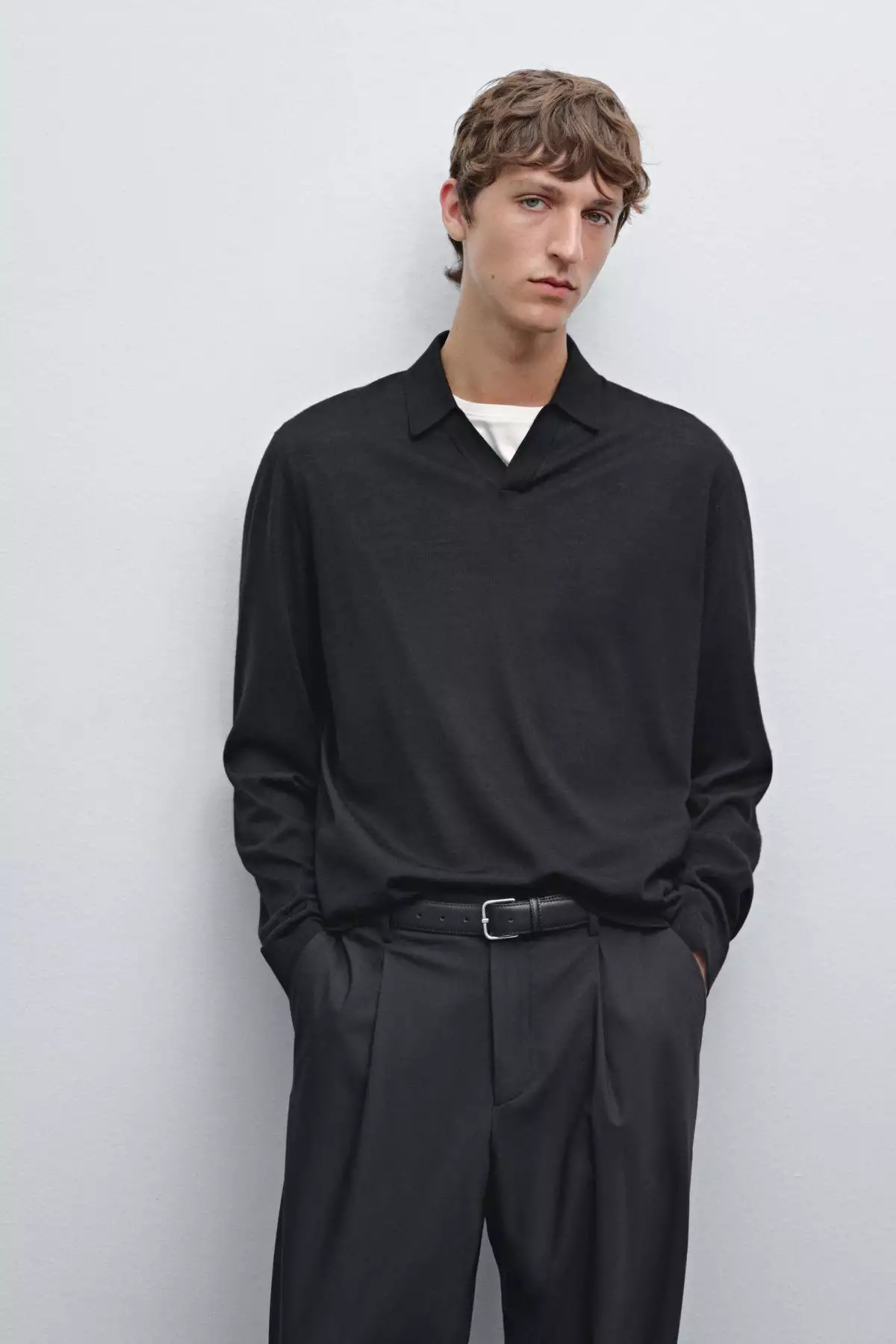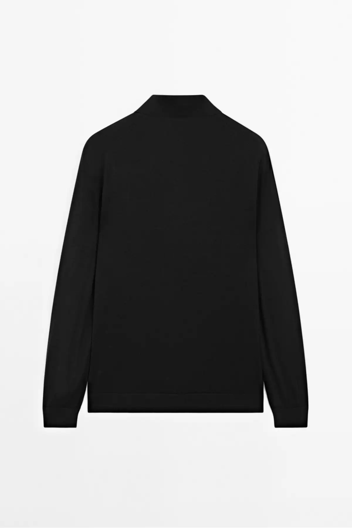 کاپشن با یقه پولویی از جنس پشم مرینوس ۱۰۰% برند Massimo Dutti