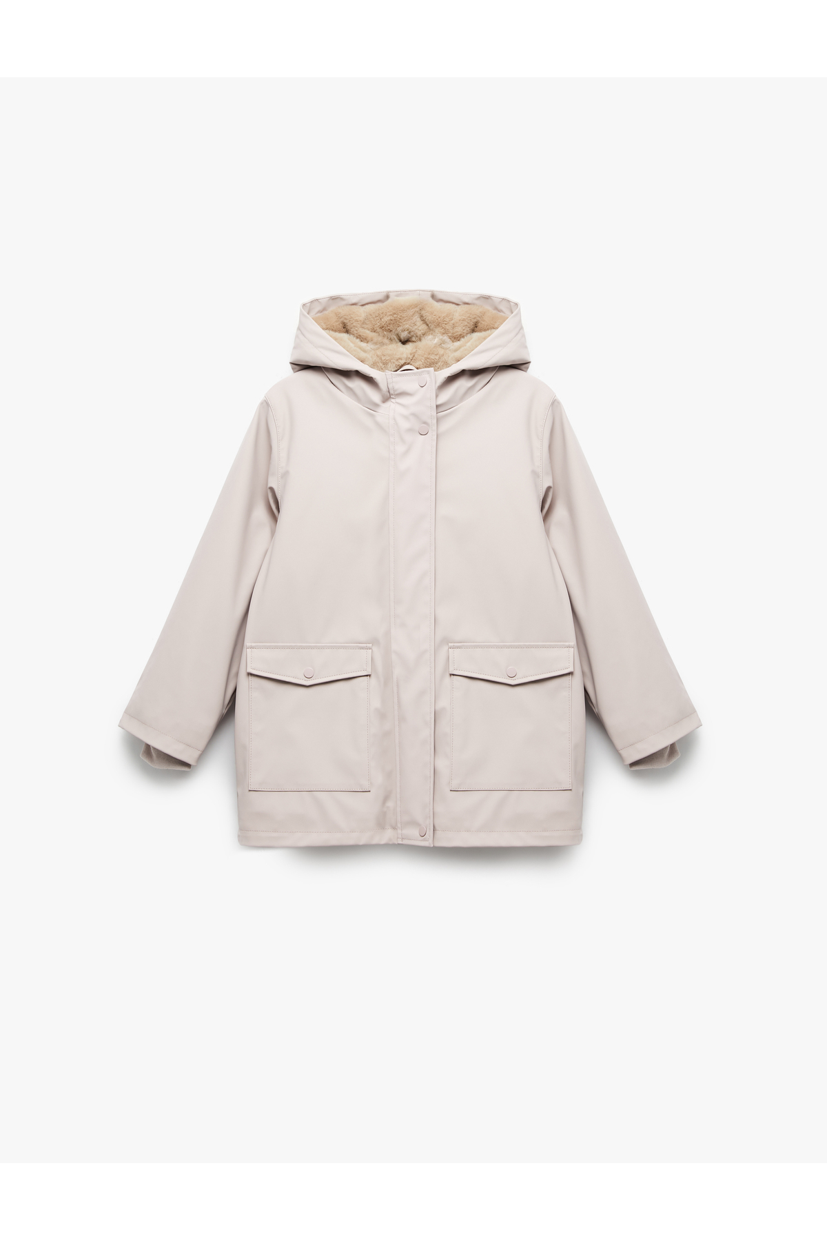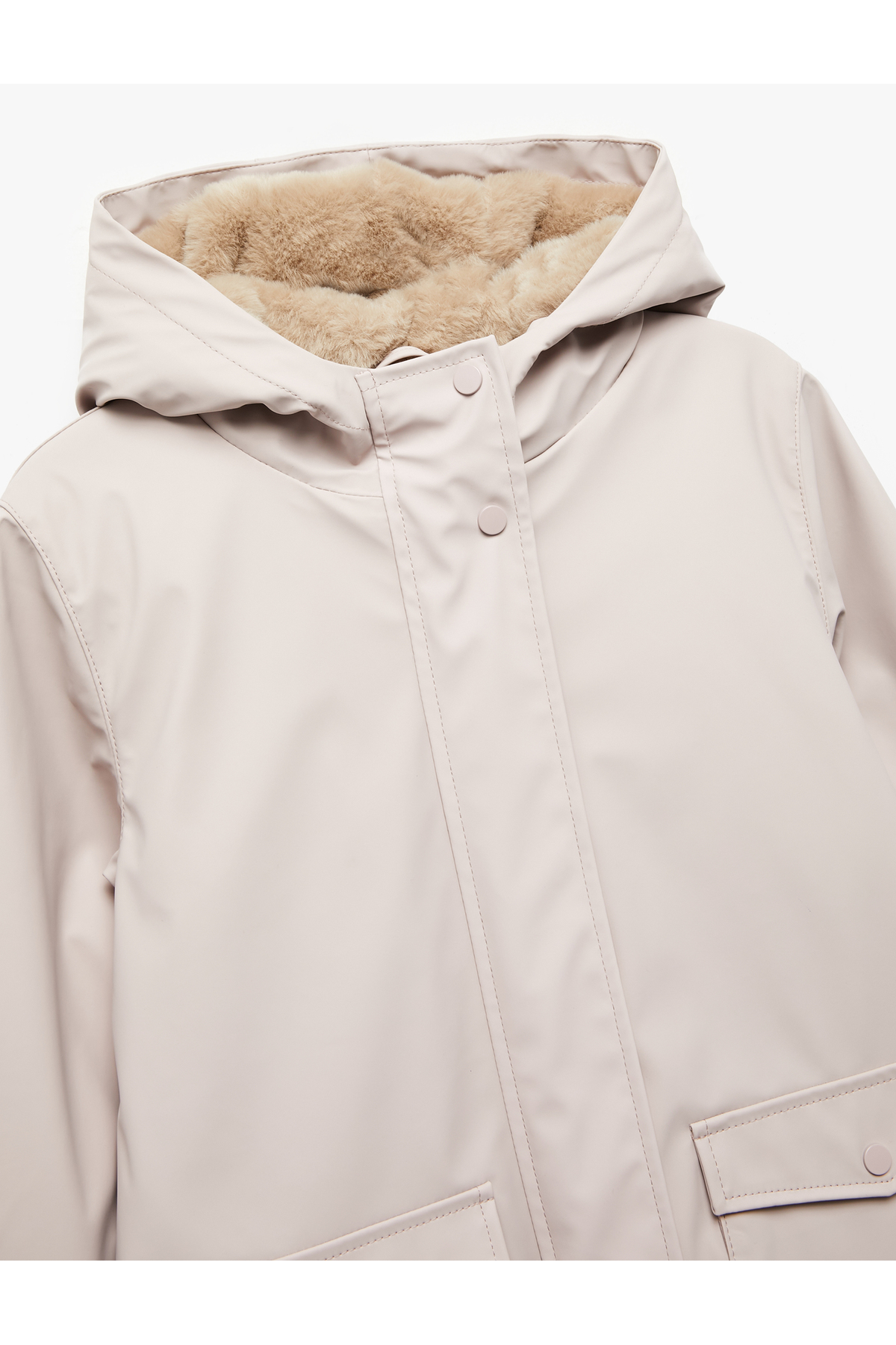 کاپشن بلند کلاهدار با جزئیات موهر و جیب دار برند Koton