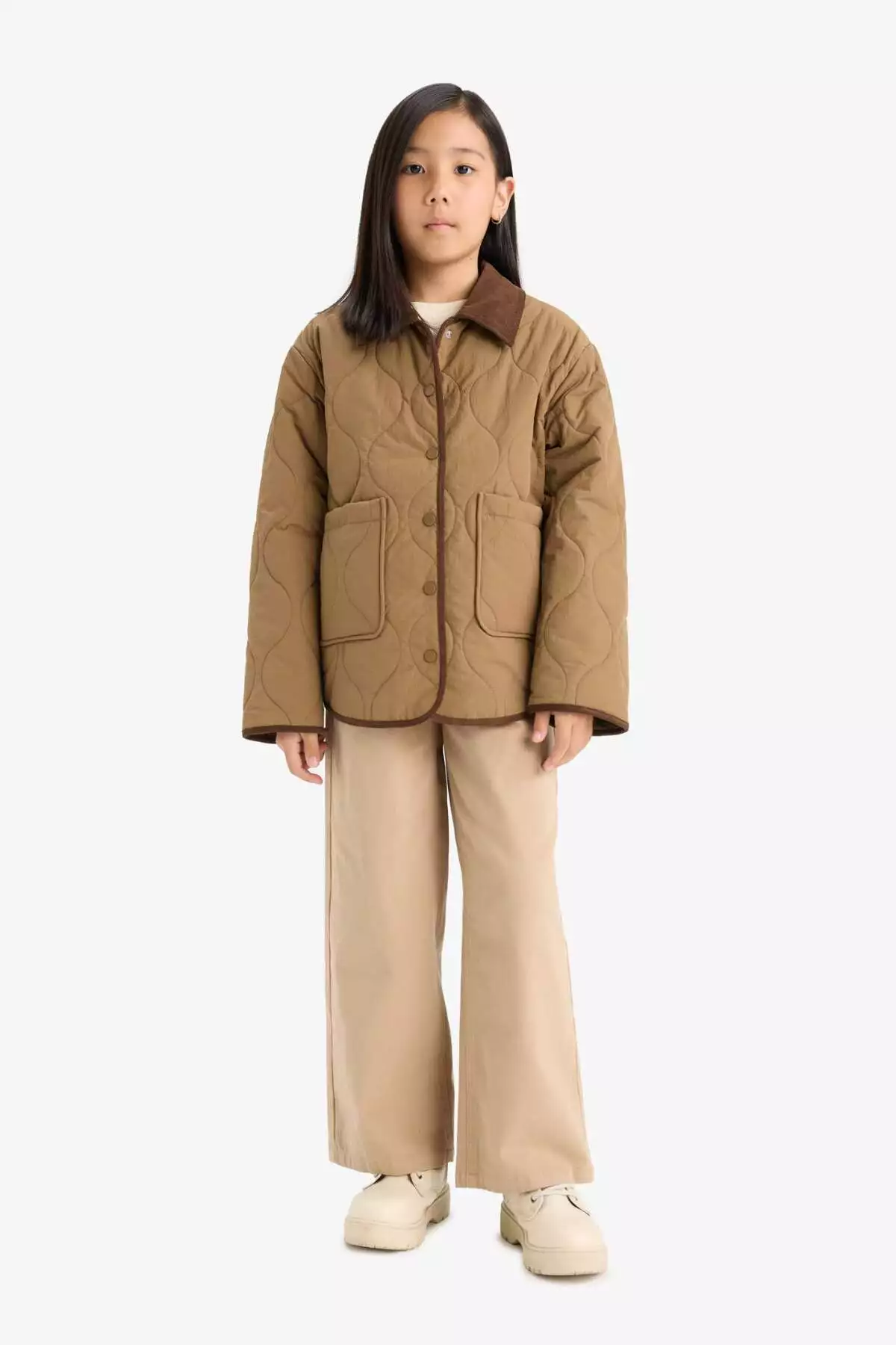 کاپشن دخترانه ضد باد با یقه متضاد و دکمهدار و دارای جیب، مدل کاپیتونه F0051A825AU برند Defacto