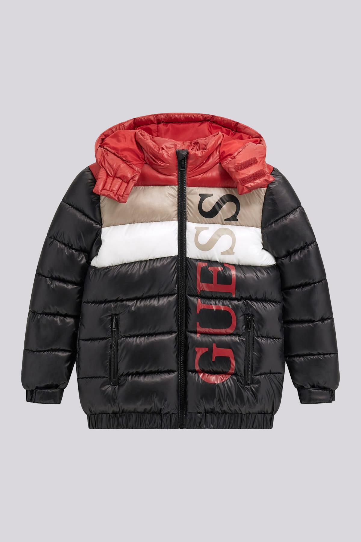 کاپشن مشکی پسرانه برند Guess با طراحی جذاب و کیفیت فوقالعاده بالا، مناسب برای فصل زمستان است.