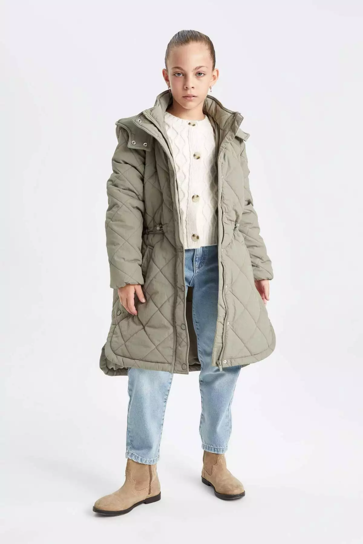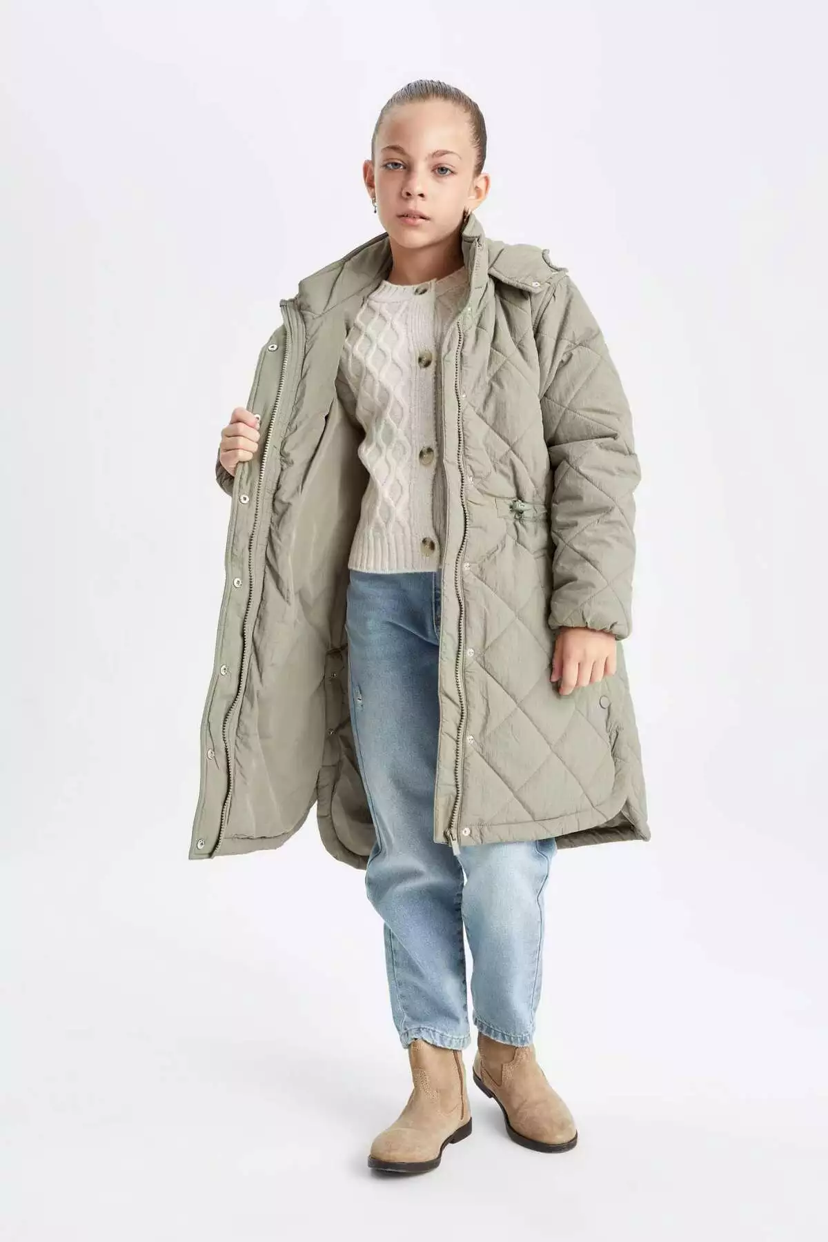 کاپشن پارکا دخترانه ضد آب با کلاه و زیپ و دکمهدار و جیبدار مدل C8974A824AU برند Defacto